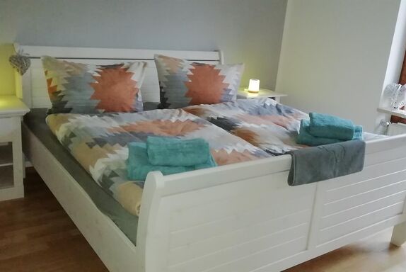 Im zentralgelegenen Wohnhaus mit 11 Parteien sind Badezimmer mit Duschgelegenheit und WC vorhanden. Ein gemütlicher Wohn- und Essraum bietet Platz für 4 Personen, die Couch gegenüber eines großen TV bietet auch Schlaffläche für 2 Erwachsene oder Kinder. Von hier sowie vom Schlafzimmer kommen Sie auf einen großen Balkon. Die nagelneue Kochküche ist ausgestattet mit allerneusten Geräten wie Spülmaschine, Kühlschrank mit Eisfach, Spüle, Kaffeemaschine, Wasser- & Eierkocher, allerlei Geschirr, Gläser und Kochutensilien. Direkt neben der Küche finden Sie ein Schlafzimmer mit Doppelbetten, großem Spiegelkleiderschrank und zwei Nachtkästchen.