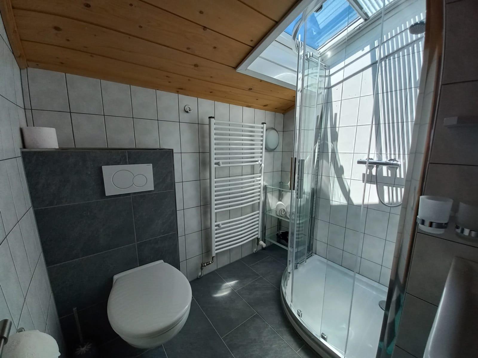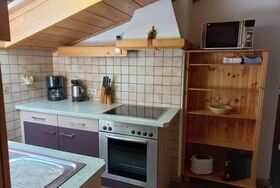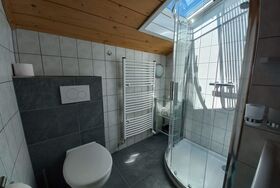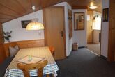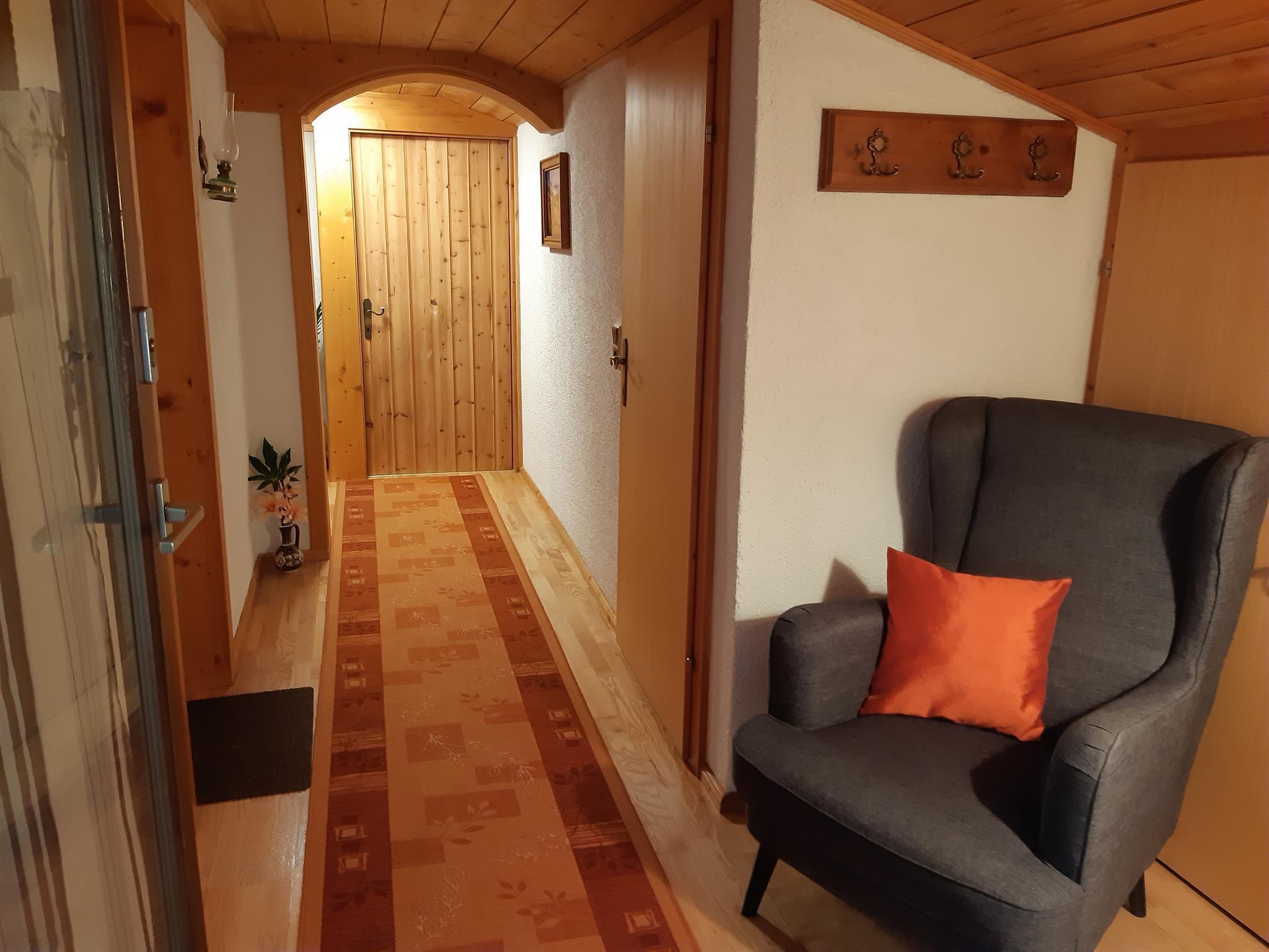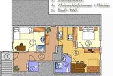 Das Appartment mit ca. 70 m² und eigenem Eingang über eine Außentreppe, liegt im ersten Stock und verfügt über: 1 Doppelzimmer mit DU/WC, 1 Zweibettzimmer mit eigener Dusche und Schlafmöglichkeit für 3. Person, 1 seperates WC, 1 Wohn-Schlafraum mit ausziehbarer Couch für 1 Person, Sat-TV und eine voll ausgestattete Küchenzeile mit gemütlicher Essecke. Zur Wohnung gehört eine Diele, ein Vorraum mit Garderobe und eine überdachte Sitzecke mit Grillmöglichkeit im Freien.