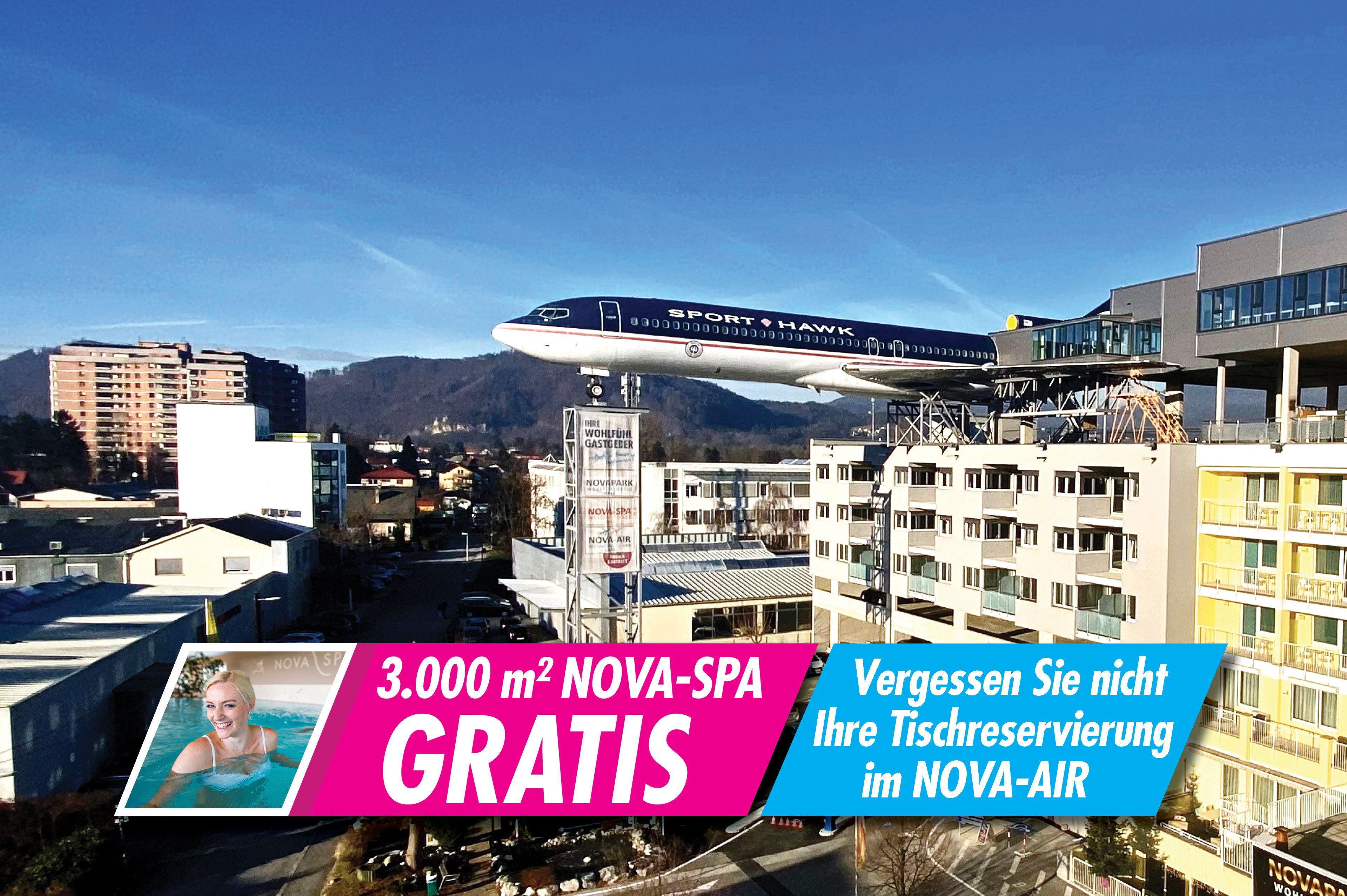 Das familiengeführte NOVAPARK Flugzeughotel - 4 km vom Grazer Hauptplatz entfernt - erwartet Sie mit der weltweit einzigartigen NOVA-AIR, großem Spabereich und 3 verschiedenen Zimmerkategorien.
