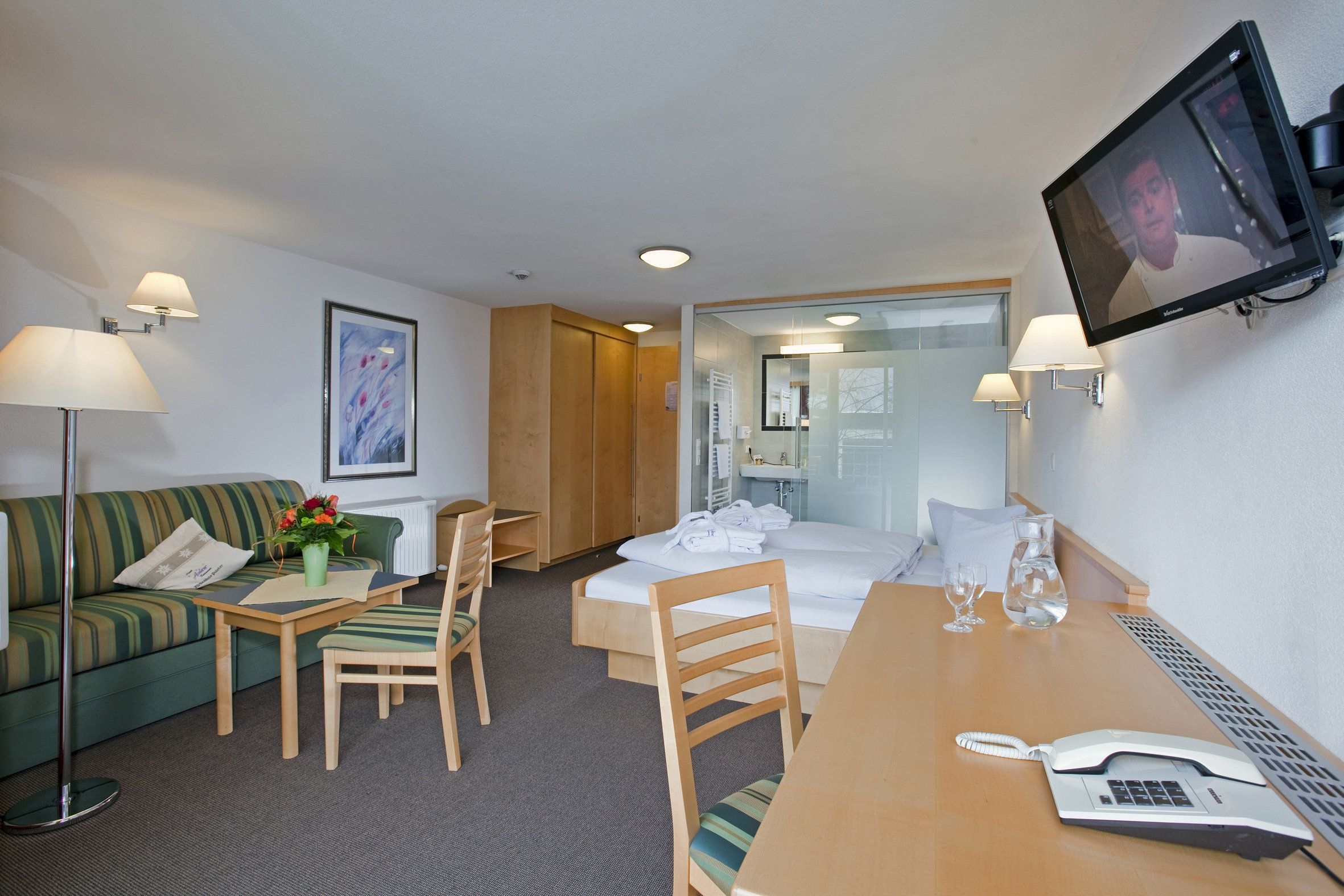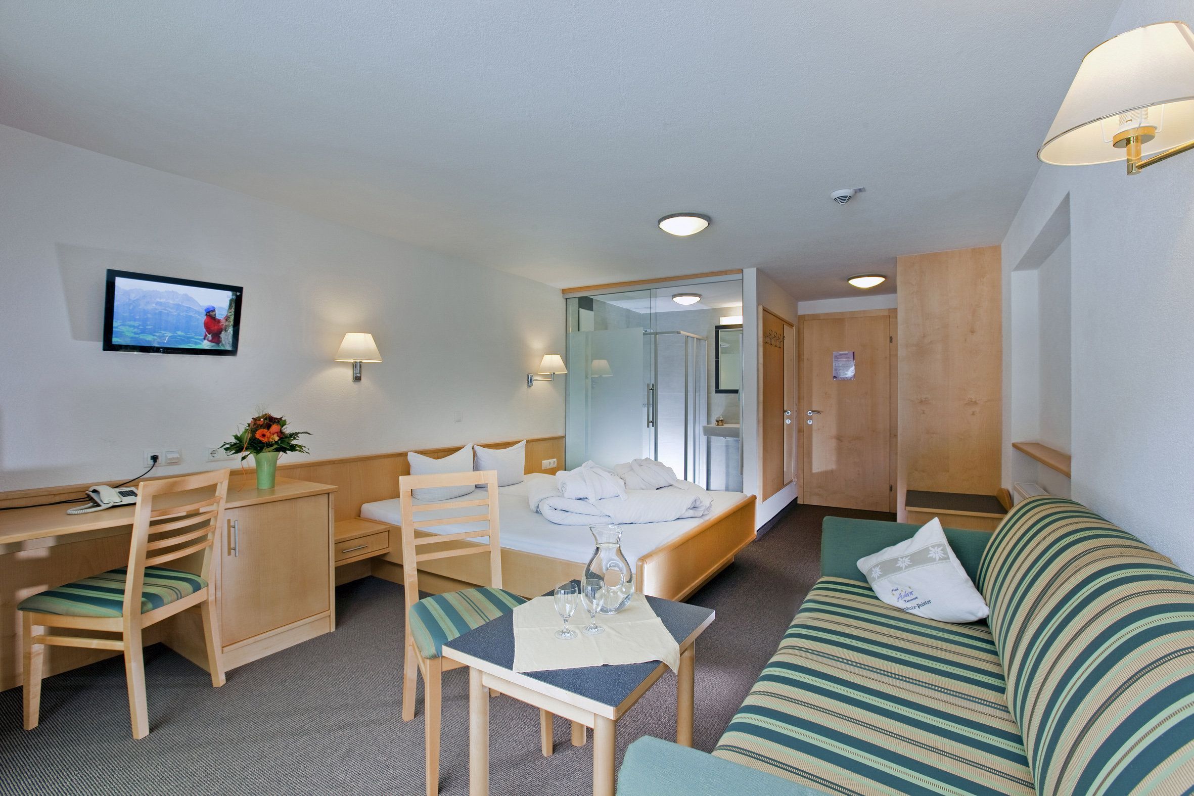 Die Gemütlichkeit des Hotels wird Sie begeistern. Rustikale Holzmöbel, knisterndes Kaminfeuer und eine schöne Saunalandschaft gestalten Ihren Aufenthalt zu einem schönen Erlebnis. Die Zimmer bieten viel Platz und die bequemen Betten laden zum Kuscheln ein. Eine warme Dusche im modernen Badezimmer weckt morgens die Lebensgeister.
