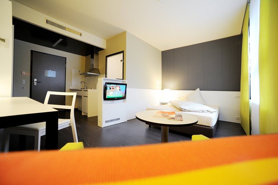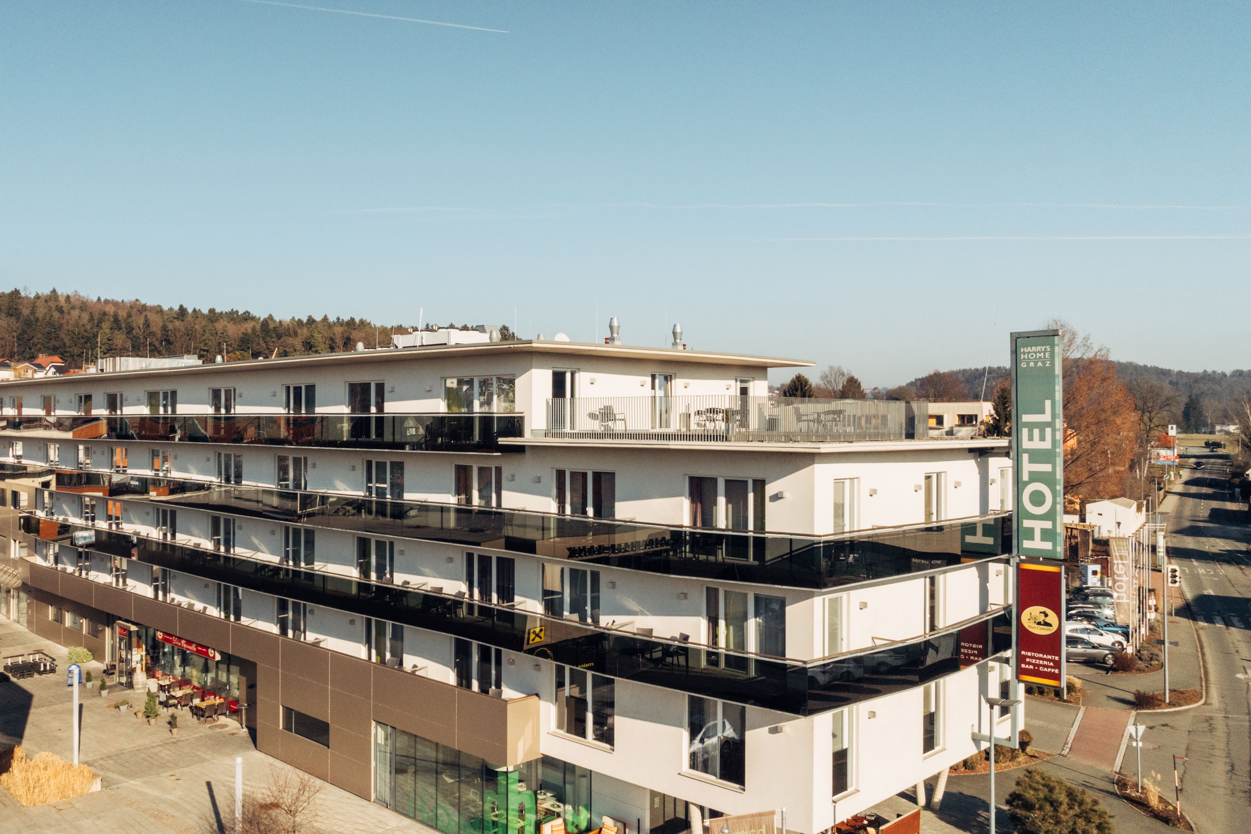 Gäste finden im harry's home Graz ihr Zuhause auf Zeit. Neben zahlreichen zubuchbaren Modulen und großen Zimmern steht ihnen ein service point mit Snackautomaten und Waschmöglichkeiten zur Verfügung.