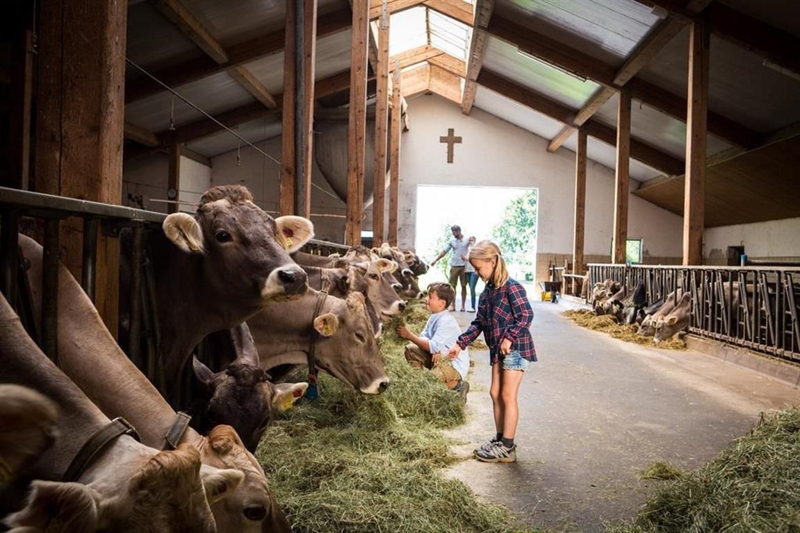 Kinder finden auf dem Hof viel platz zum spielen, Tiere streicheln und füttern.