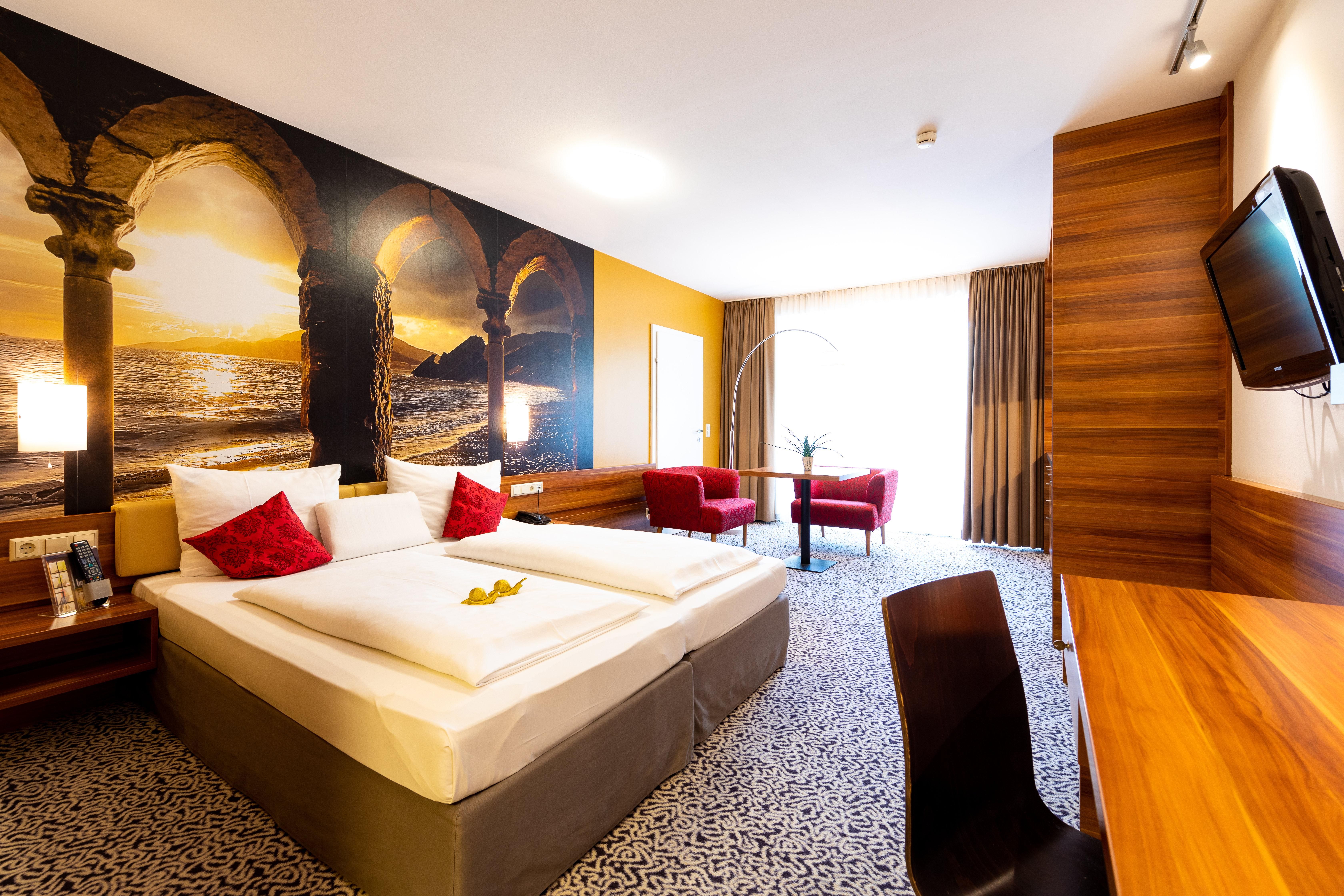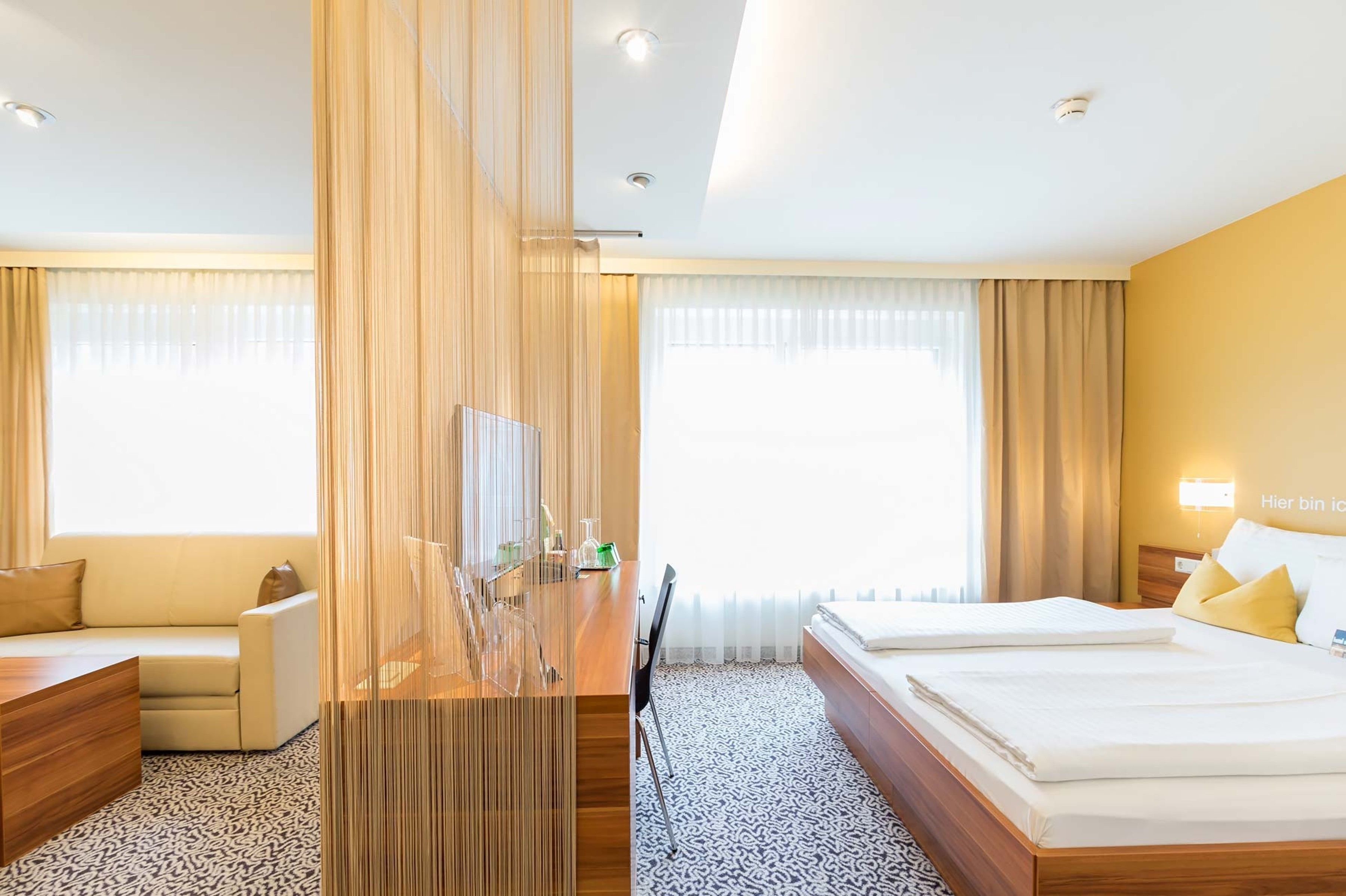 Parkplätze, günstige Hotelgarage inkl. einer Ladestation für Elektroautos, Indoor-Pool, Sauna, kostenfreies W-LAN und High-Speed BB-Internet im gesamten Hotelbereich, Klimaanlage, Laptop-Safe und Kaffee-und-Tee-Zubereiter in unseren Businesszimmern , Frühstückspaket für Early Check-Outs (vor 06.00 Uhr morgens - bitte wenden Sie sich diesbezüglich an unsere Rezeption), Coffee to go! Unsere Junior-Suiten (Gartenstudios) befinden sich im Nebengebäude, welches nur 50 m entfernt liegt.
