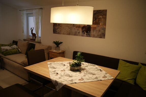 Unser Appartement im Haus Elena mit ca. 72 m² verfügt über 3 Doppelzimmer (1 davon mit Zusatzbett , 1 Badezimmer mit Dusche, 1 seperates WC, Wohnküche mit Essecke, Mikrowelle, Herd mit Ceranfeld, Kaffeemaschine, Wasserkocher, Toaster und eine Couch für eine weitere Person und Balkon. Flat-TVs in allen Zimmern