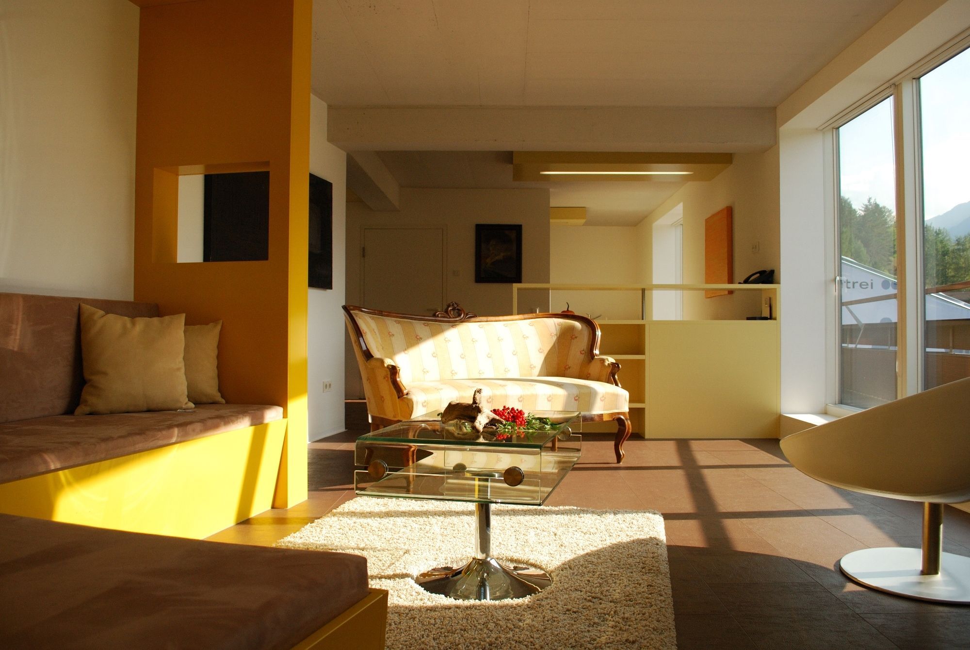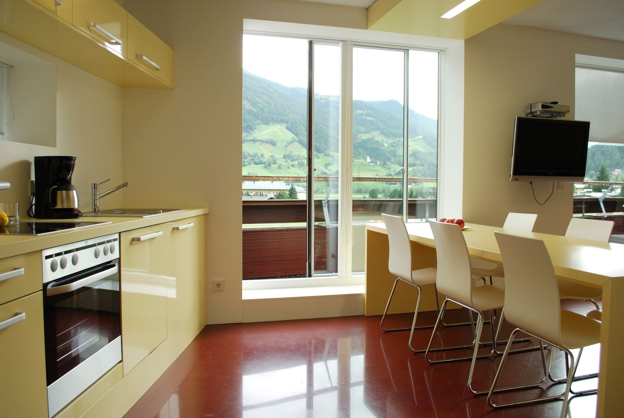 Neben den Apartments finden Sie im Gebäude noch überdachte Parkplätze, einen Glaslift (mit Zugang zu den Parkplätzen), einen Skikeller und modern ausgestattete Räume für Seminare und Veranstaltungen