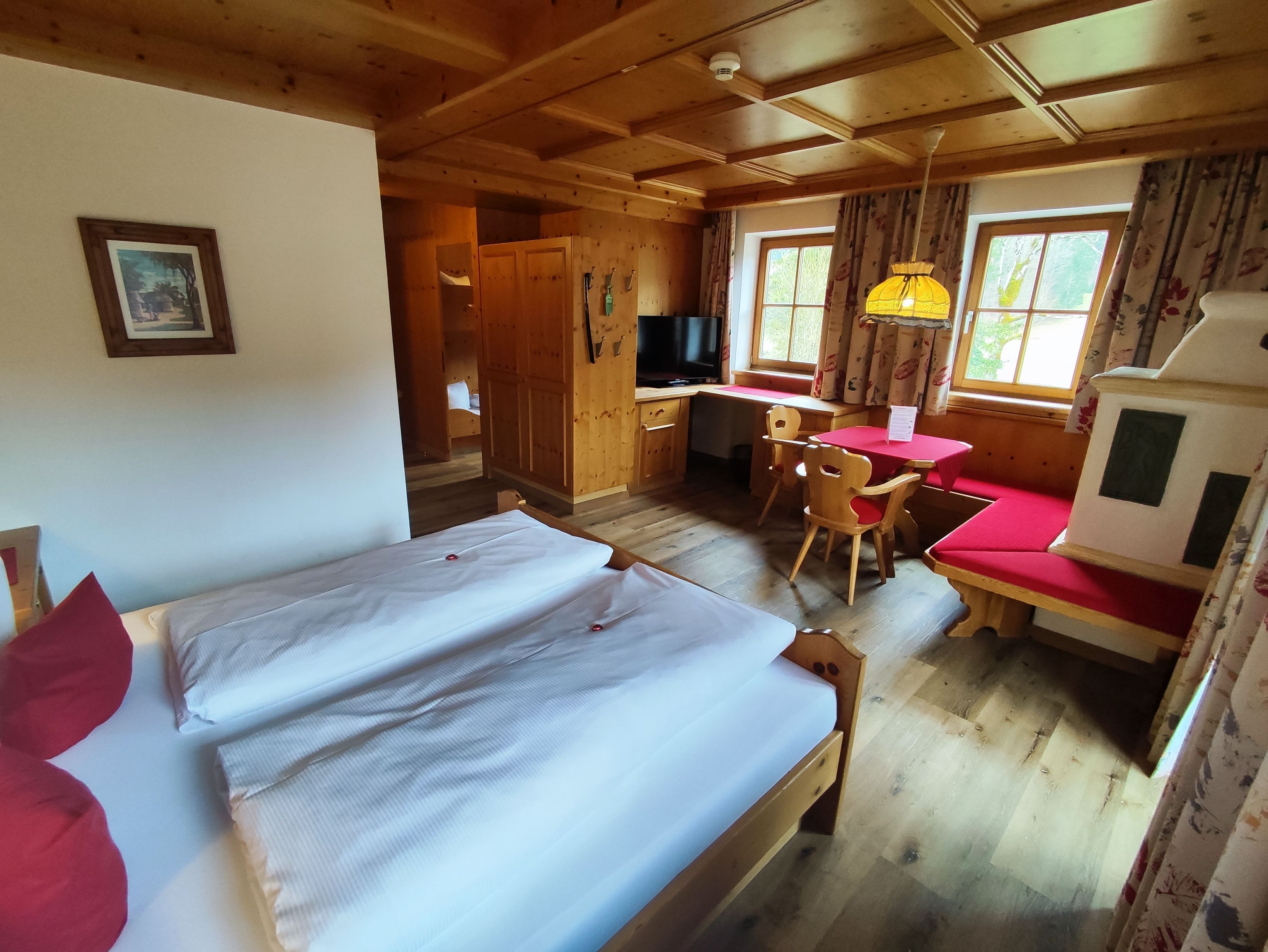Die familiengeführte Ferienanlage bietet Ihnen vier verschiedene Destinationen in zehn Kategorien, die Sie nach Lust & Laune individuell wählen können! Ob im Haupthaus im Tirolerstil, in unseren Kaisersuiten am Bauernhof oder in einer unserer Selbstversorgerhütten - behagliche Atmosphäre und Urlaubsgenuss pur wird garantiert! Unsere Komfortdoppelzimmer bieten alle zumindest ein Zusatzbett für 1 Kind. Kinderermäßigung: 2 - 5 Jahre € 20,00, 6 - 12 Jahre 50 %, 13 - 15 Jahre 30% Ermäßigung. Kleinkinder unter 2 Jahren laden wir ein, auf Anfrage können wir auch ein Gitterbett zur Verfügung stellen. Bitte kontaktieren Sie das Hotel bei einer Anreise nach 19:00.