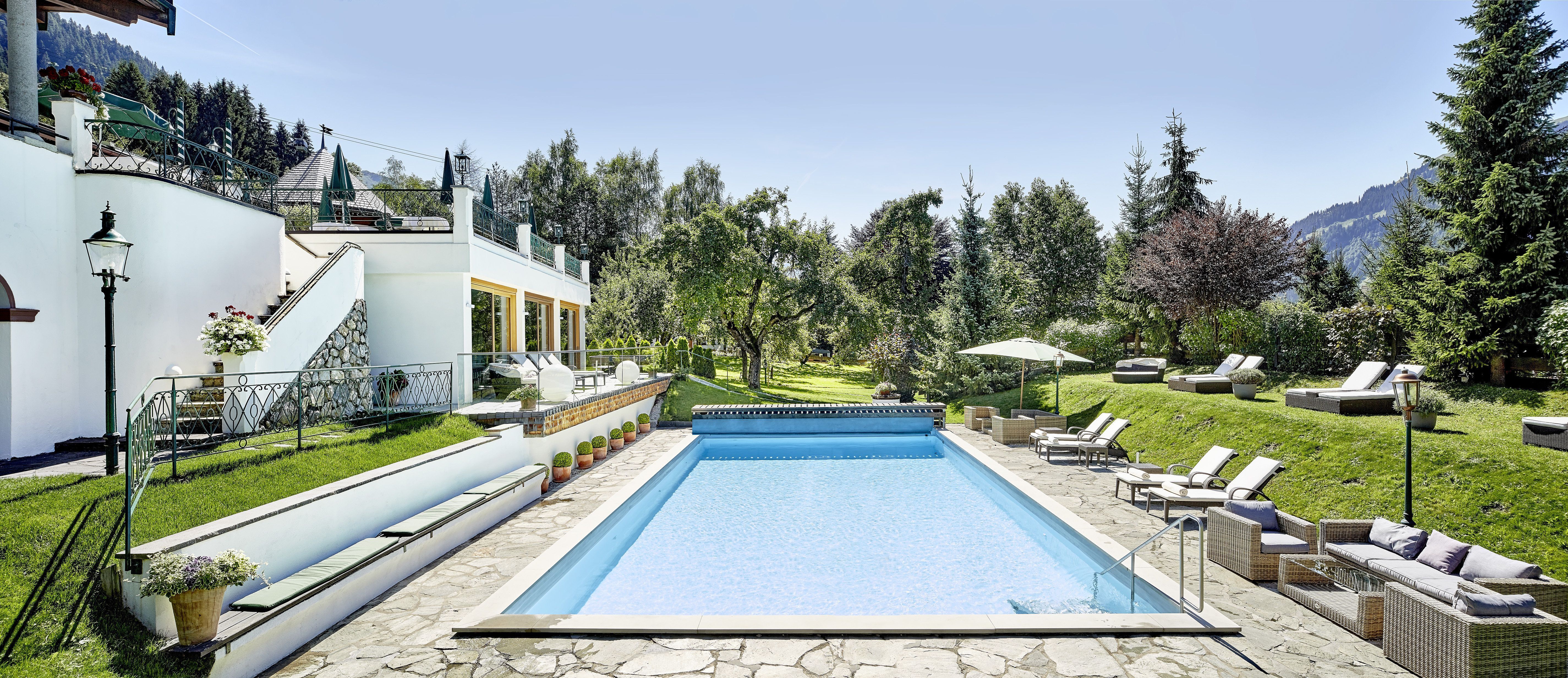 Der Spa de Charme mit Sauna, Dampfbad, Jaccuzzi, Innenpool, Außenpool (im Sommer) des Relais & Chateaux Hotel Tennerhof steht Ihnen zu den Hauptsaisonen kostenfrei zur Verfügung.