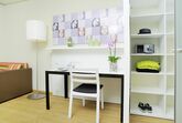 Die Zimmer im harry’s home Dornbirn sind modern und freundlich eingerichtet und bieten vor allem eins: viel Platz. Gäste finden große Zimmer mit Schreibtisch und begehbarem Kleiderschrank, die auf Wunsch sogar mit einer Kitchenette, Balkon oder Terrasse ausgestattet und so auch ideal für Familien und Langzeitreisende sind. Im service point stehen neben einem Snackautomaten auch Waschmaschine, Trockner und Bügelstation zur Verfügung. In harry’s Wohnzimmer erleben Gäste getreu dem Motto „Coming home“ die gemütliche Atmosphäre und finden neben einer Bar auch Bücher und Spiele zum Verleih. Auch die hoteleigenen E-Bikes können für Ausflüge rund ums Hotel gegen Gebühr ausgeliehen werden. Die Garage kann für € 10 pro Tag hinzu gebucht werden. Achtung:Langpromo -5 % 14 Tage, nur 1 Reinigung/Woche
