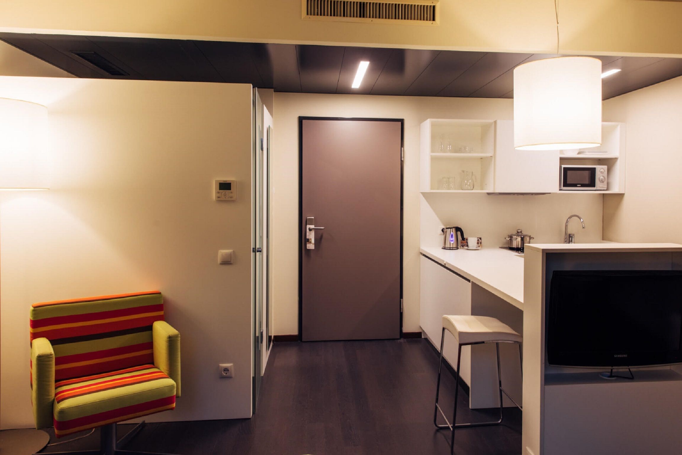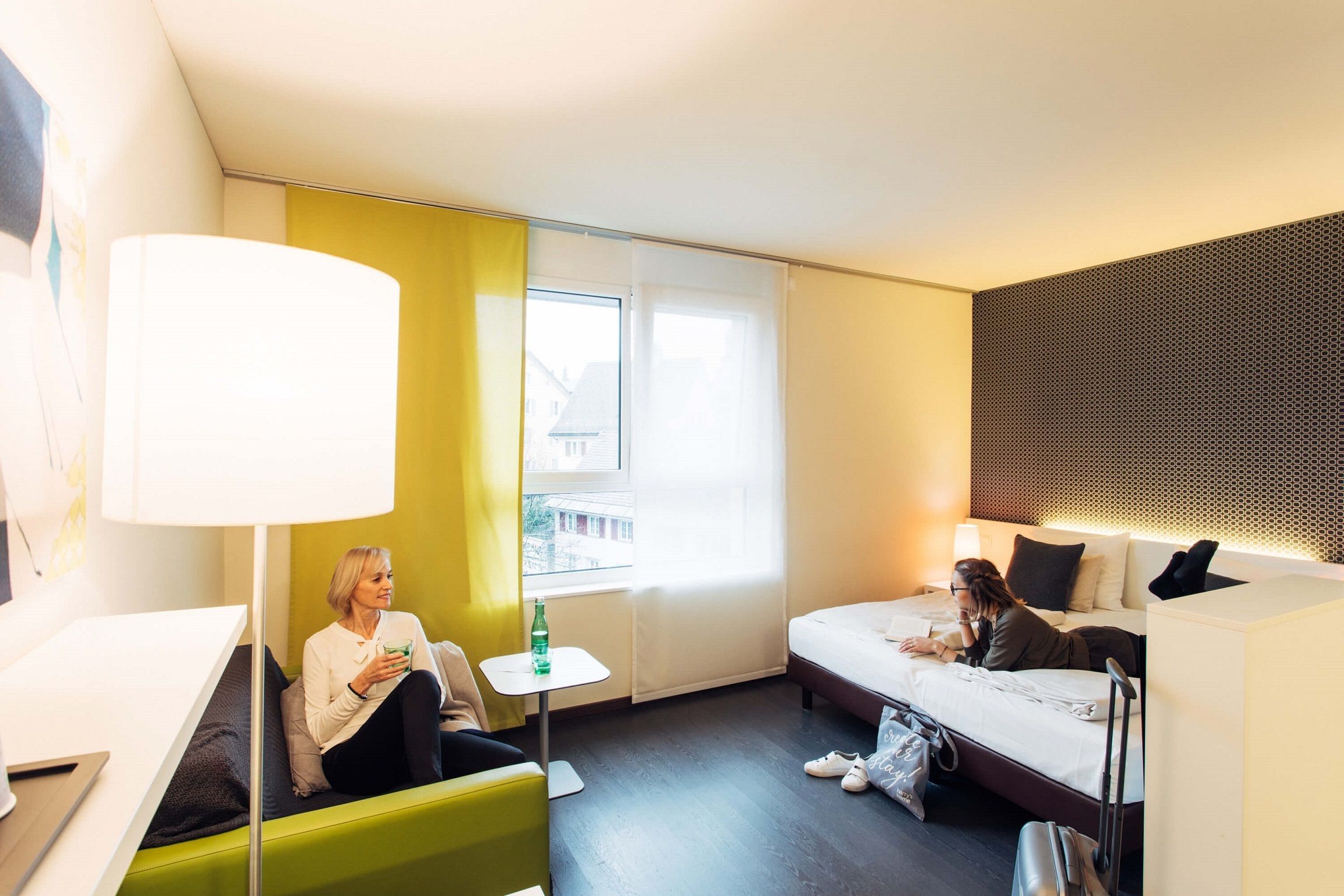 Gäste finden im harry's home Dornbirn ihr Zuhause auf Zeit. Neben zahlreichen zubuchbaren Modulen stehen große Zimmer und ein service point mit Snackautomaten und Waschmöglichkeiten zur Verfügung.