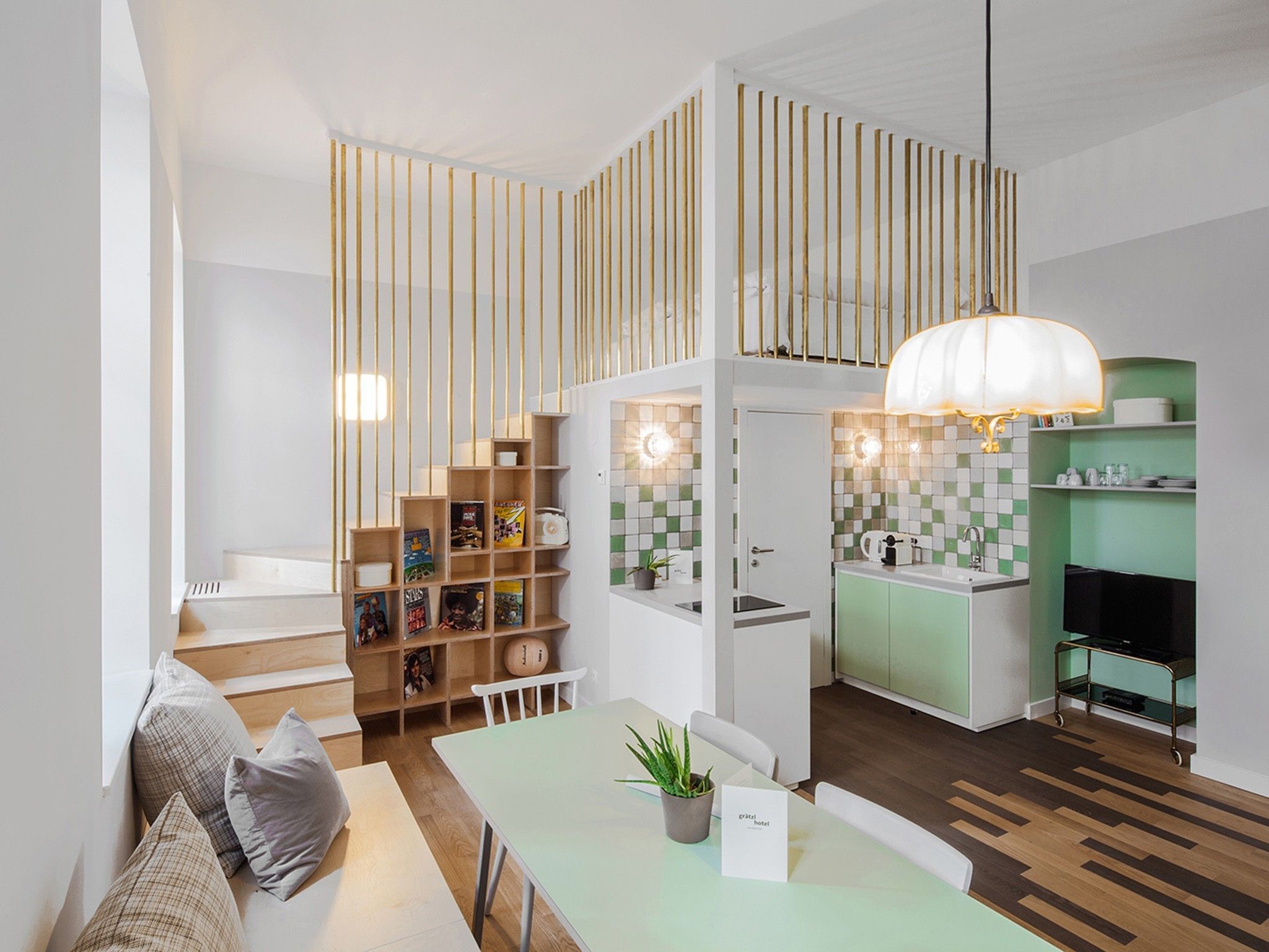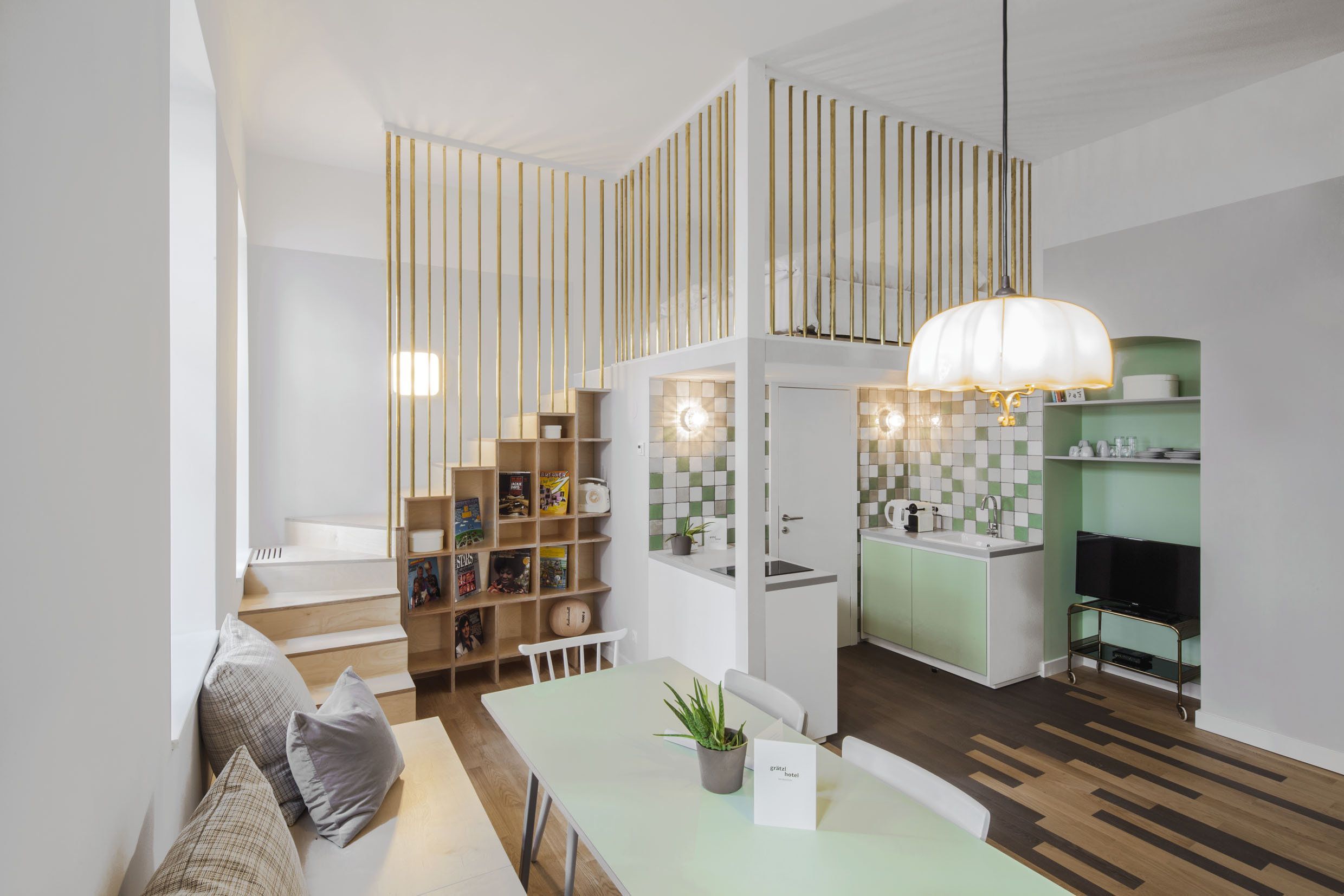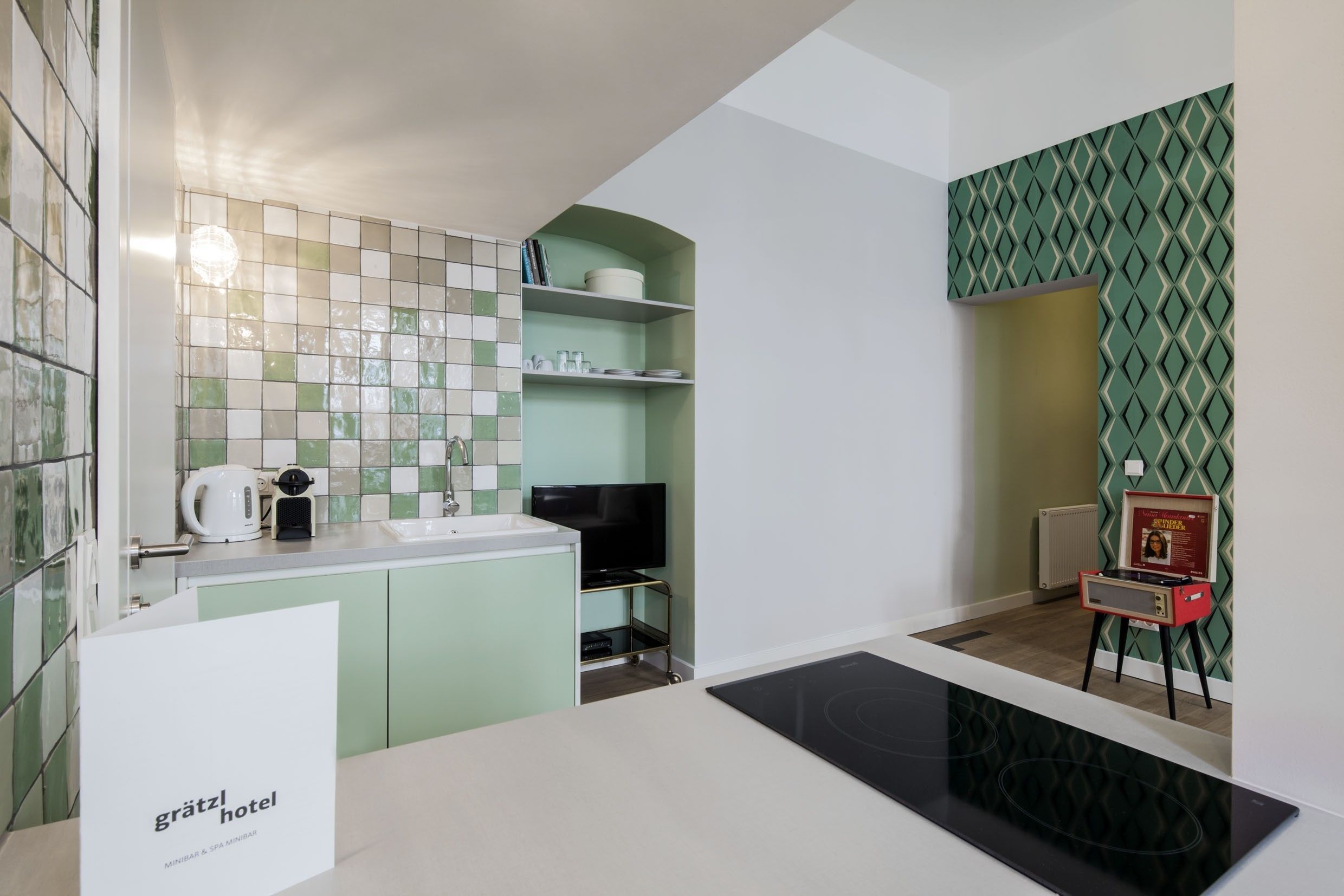 Das grätzlhotel Schönbrunn ist weit mehr als ein Hotel. Die individuellen Suiten befinden sich in ehemaligen Geschäftslokalen und Lagerflächen, mit direktem Blick auf den Markt.