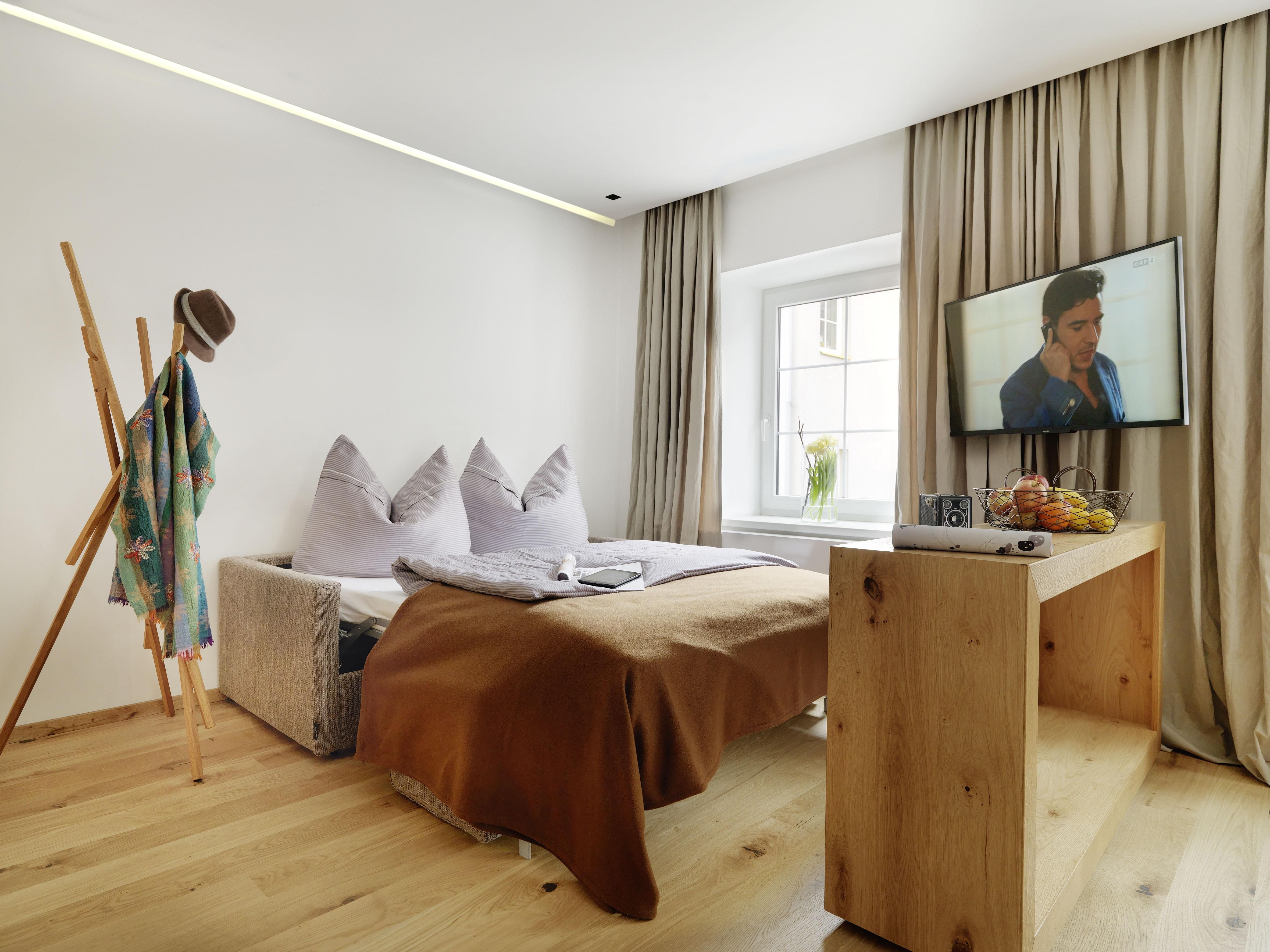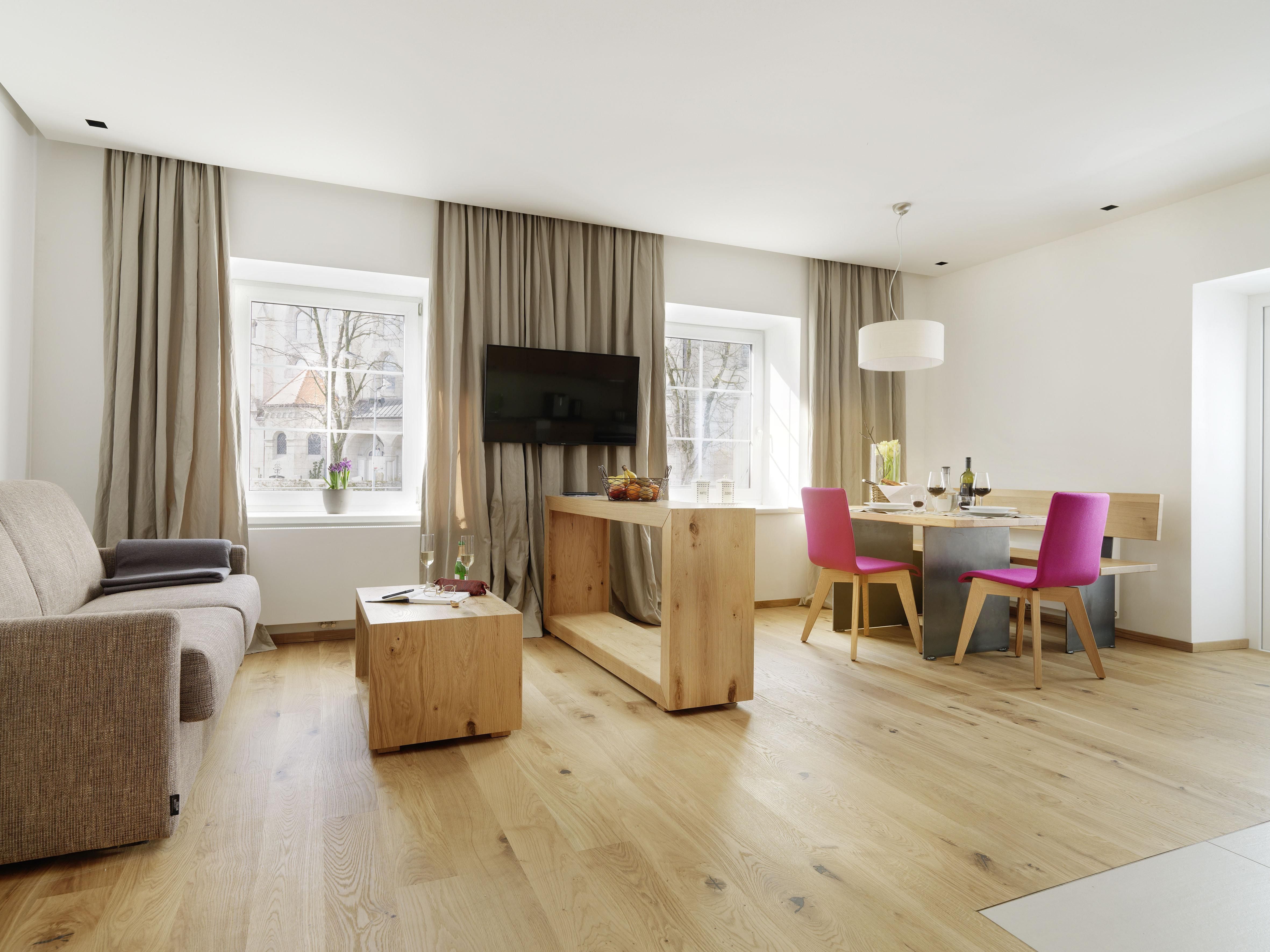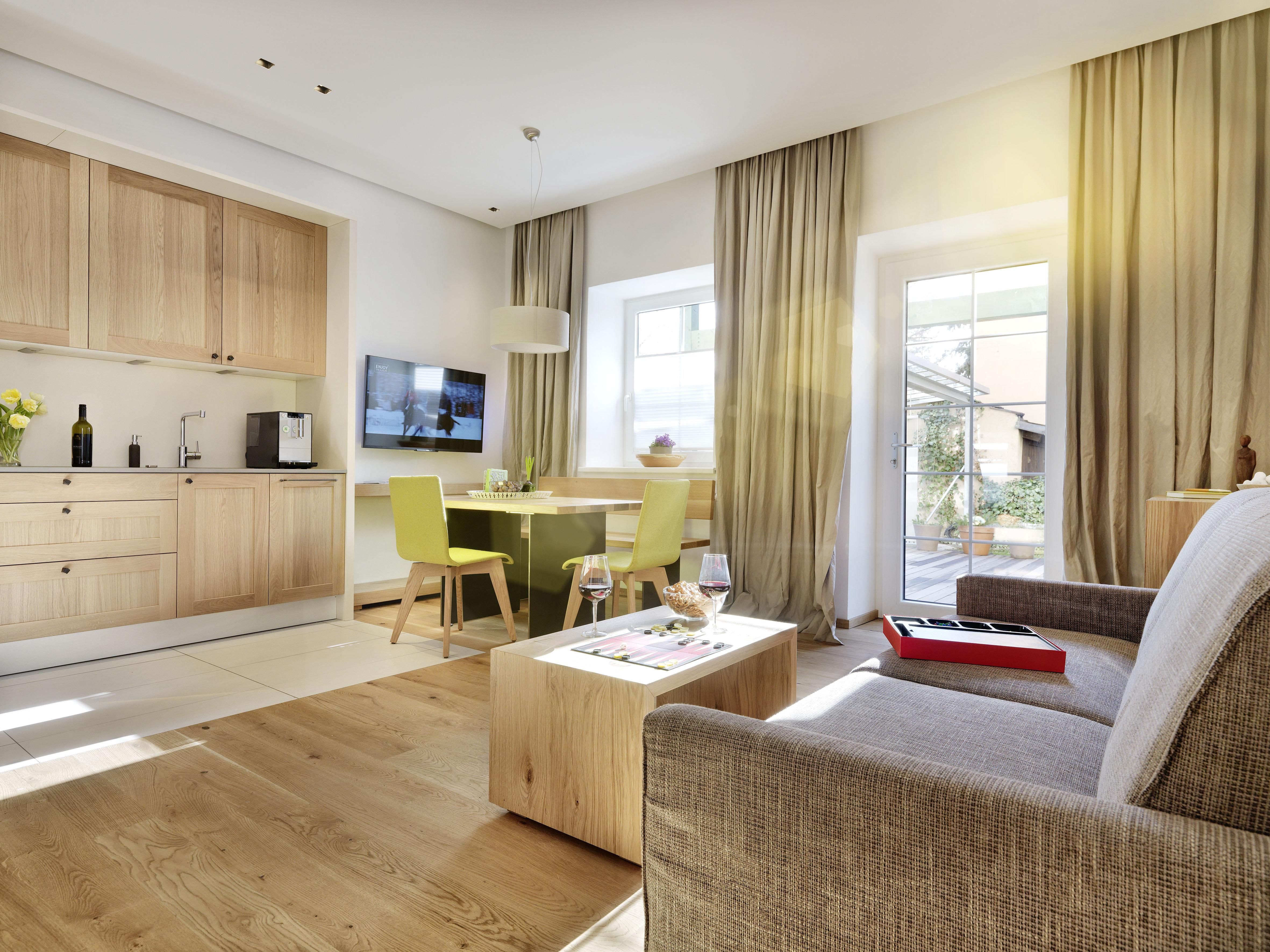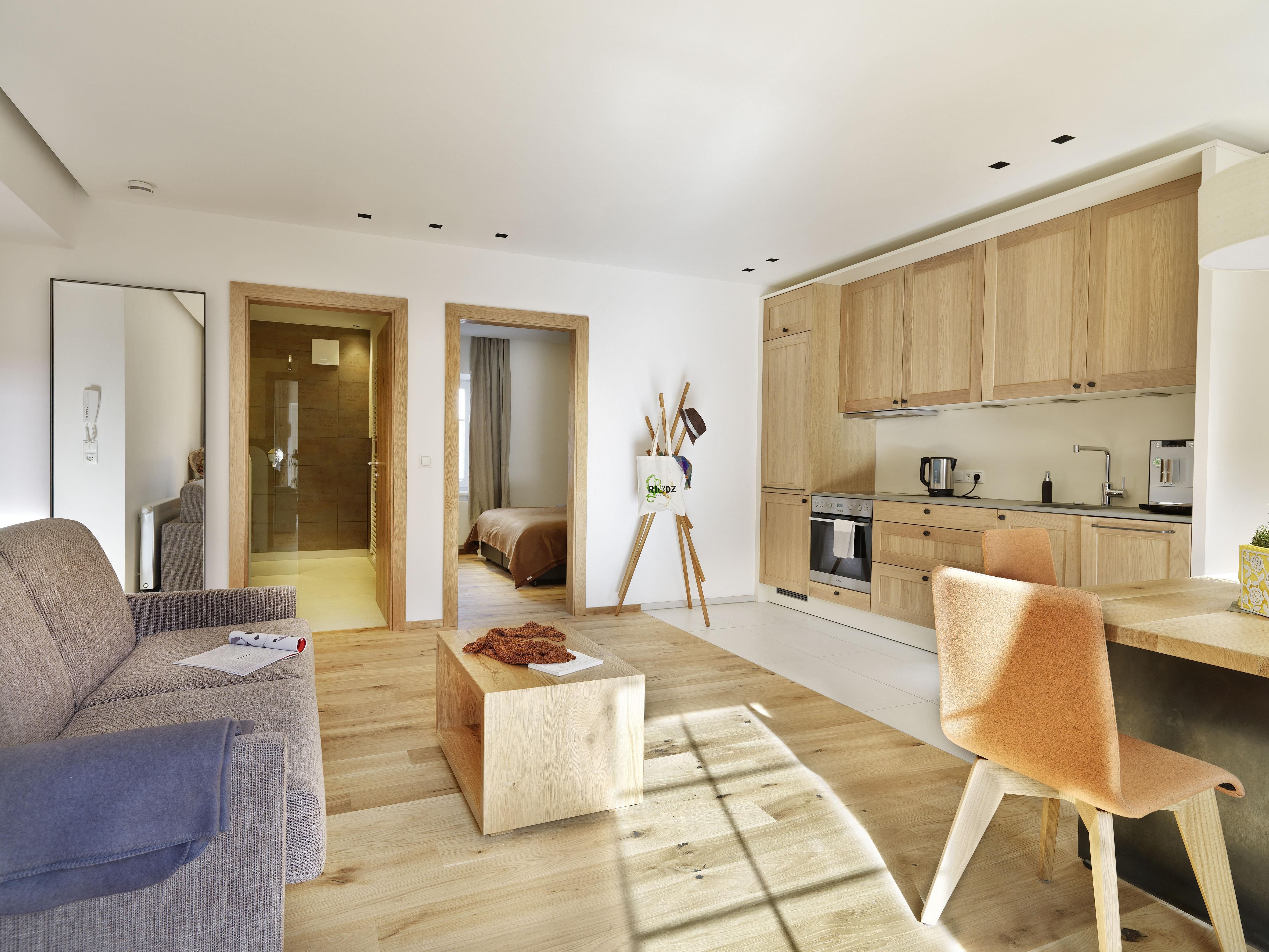 Das Riedz ist wie ein Zuhause, nur schöner, da man sich nicht um die Kleinigkeiten kümmern muss. Die großzügigen, voll ausgestatteten Apartments bieten wunderbar viel Platz zum entspannen und sich wie zu Hause zu fühlen: 'home away from home! eben! Zu jedem Apartment gibt es einen privaten Parkplatz, der für einen Aufpreis und nach Anfrage dazu gebucht werden kann. Ein Supermarkt befindet sich innerhalb weniger Gehminuten, der außer Sonn-und Feiertags täglich geöffnet ist und alles anbietet, um genüssliche Momente zu erleben! Alle Sehenswürdigkeiten der Stadt sind auch in wenigen Gehminuten zu erreichen! Solltest du einen gemütlichen Aufenthalt mit viel Privatsphäre ohne zusätzlichen Service bevorzugen, bist du bei uns genau richtig!