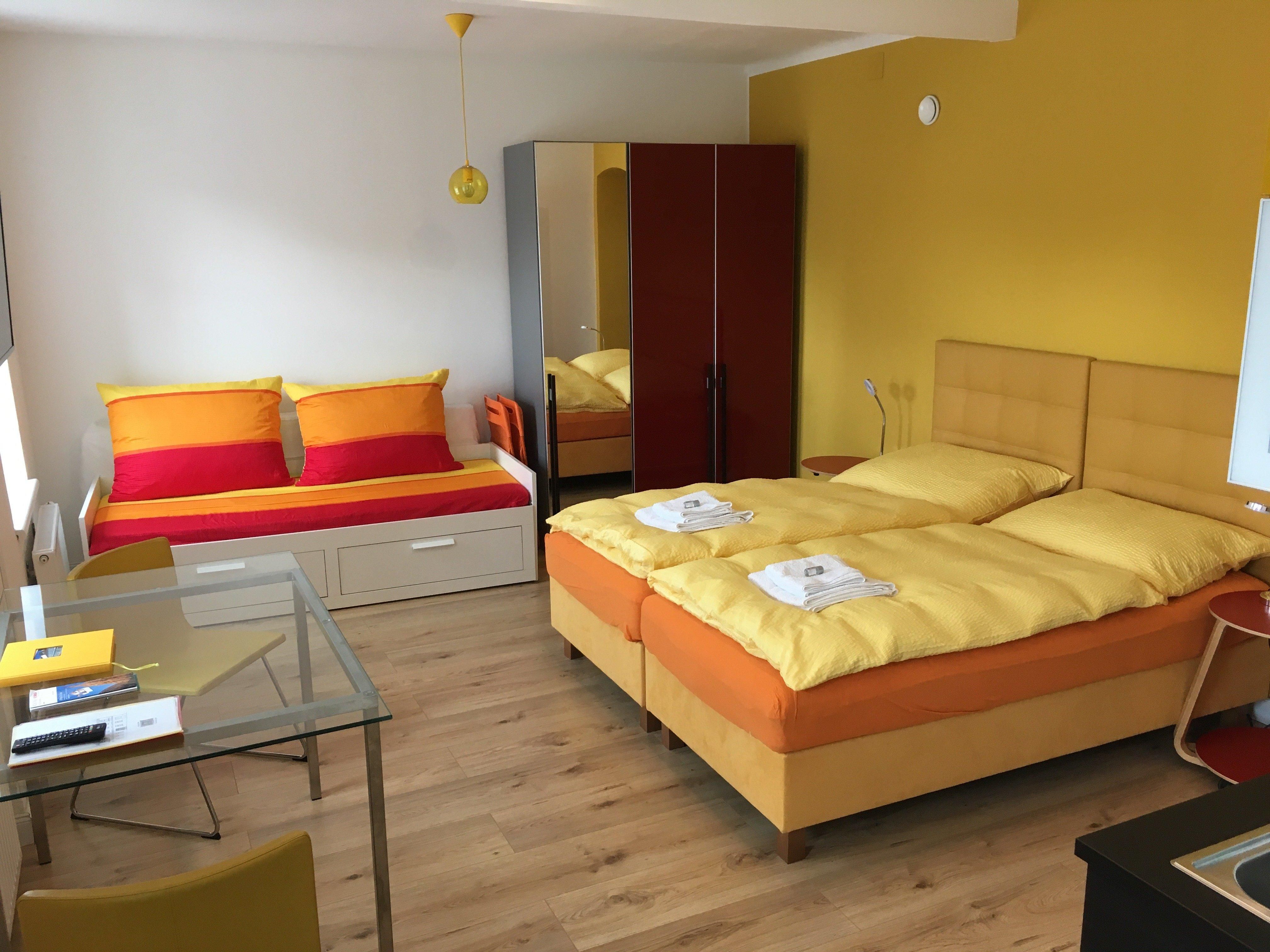 Frisch renovierte Privatunterkunft mit zwei modernen Zimmern in Jahrhundertwendehaus. Die Zimmer sind auf dem neusten Stand der Technik und verfügen u. a. über eine Küche, Dusche/WC und schnelles Wlan