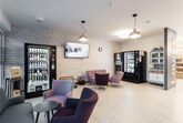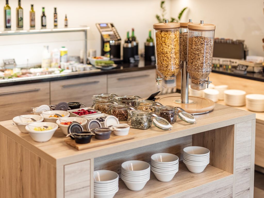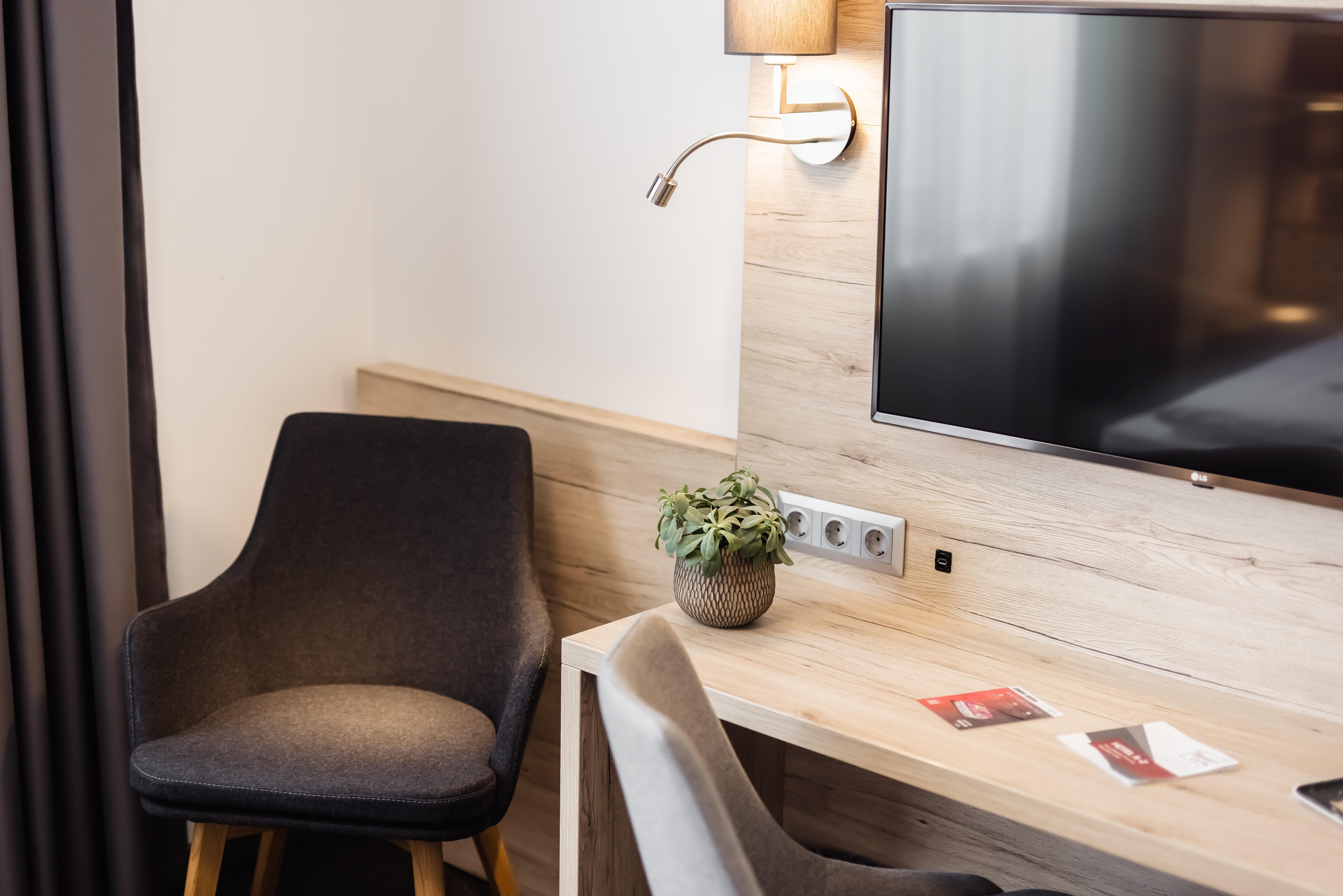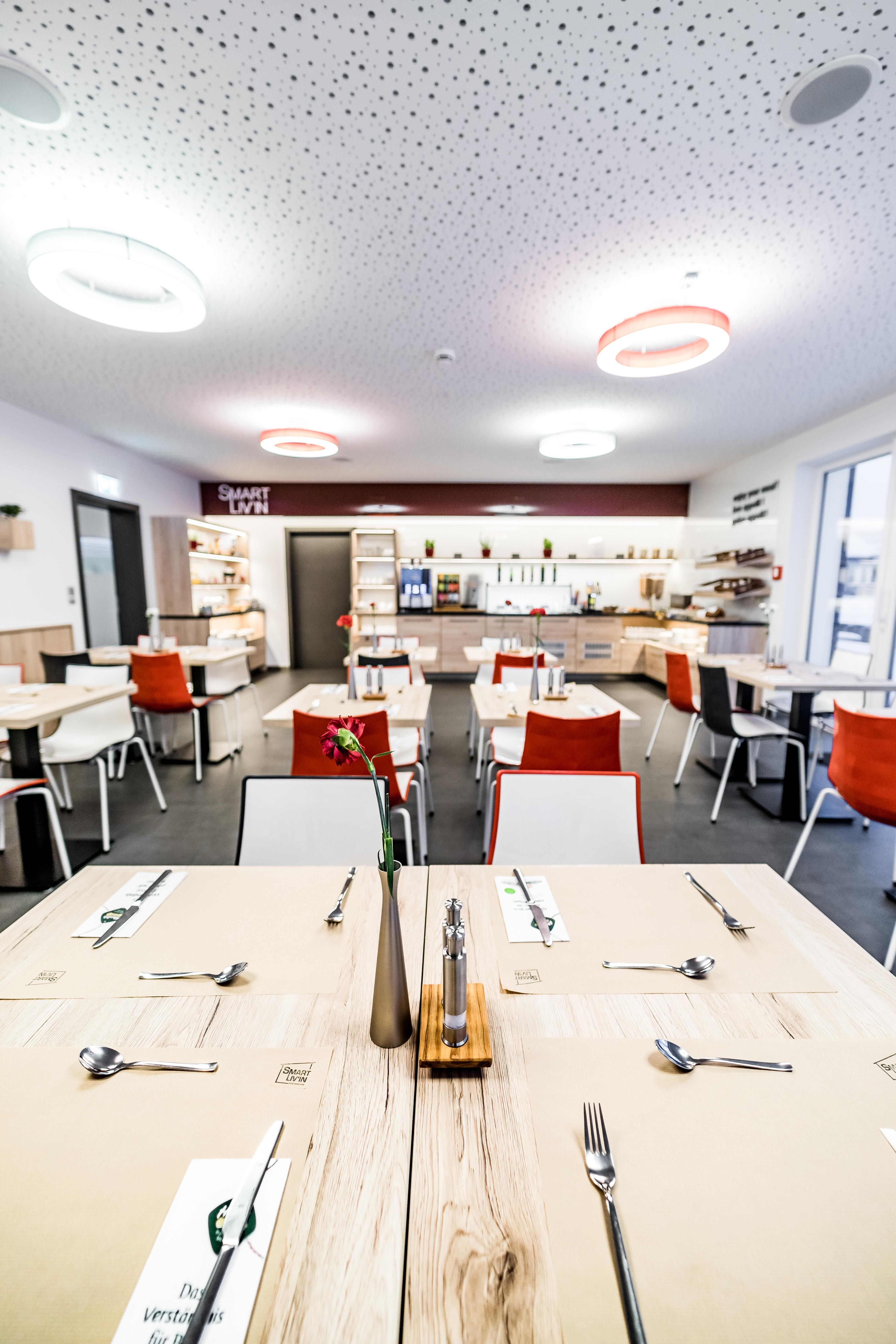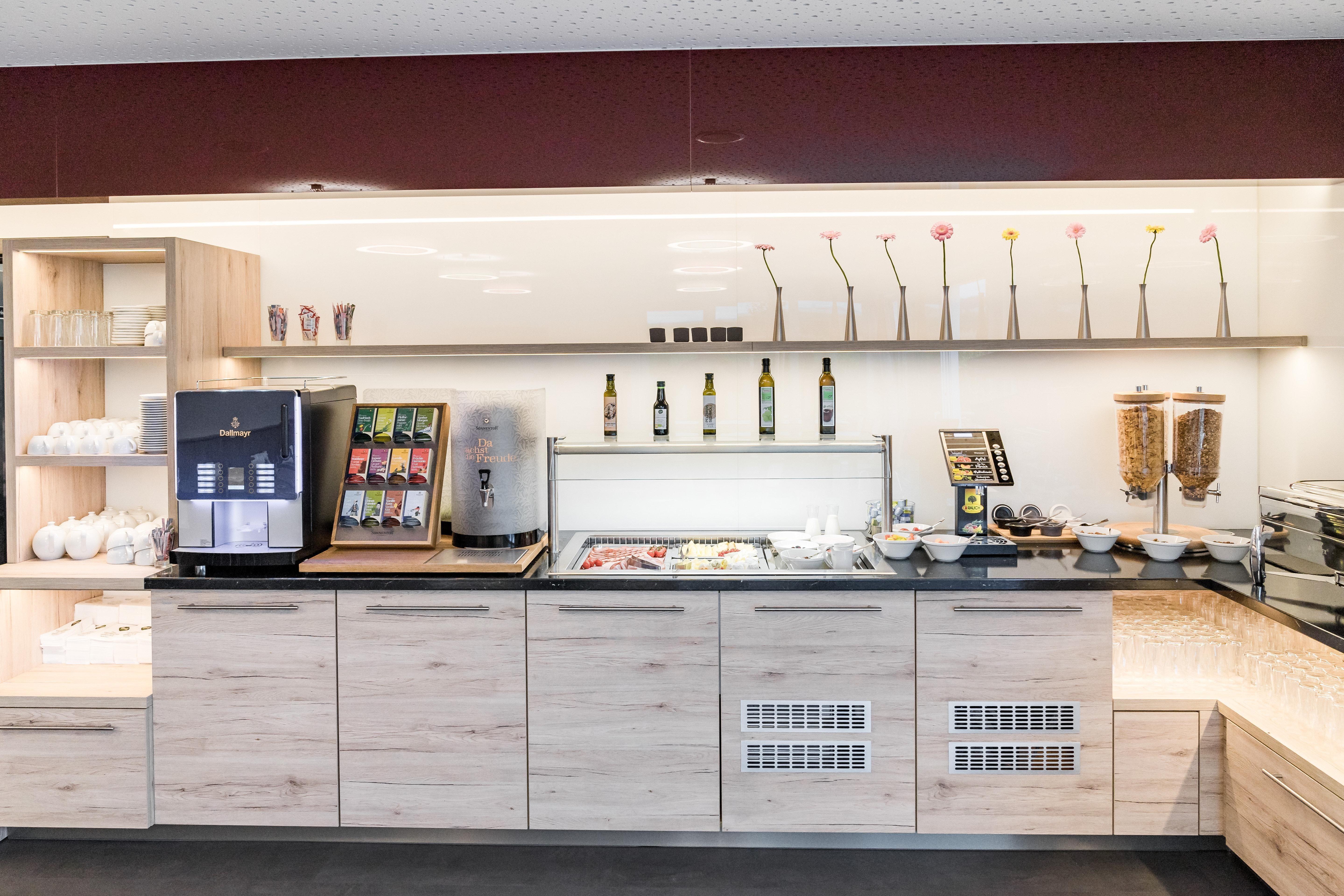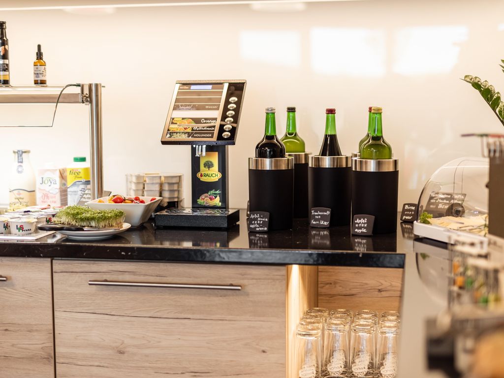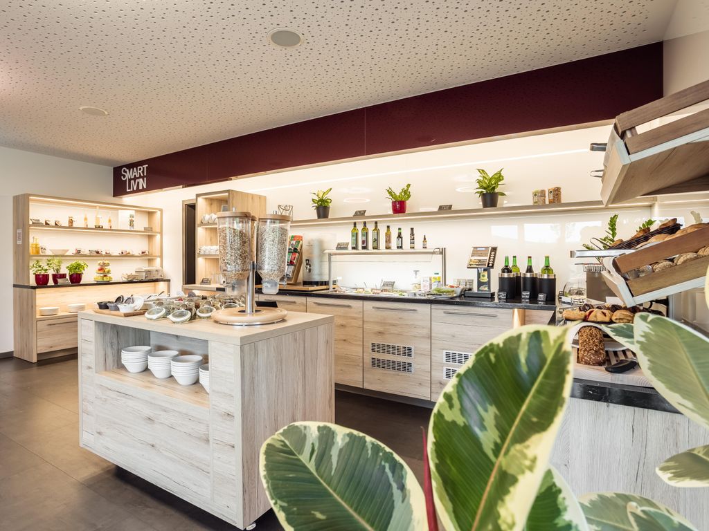 Beim reichhaltigen Frühstücksbuffet mit regionalen Produkten aus der direkten Umgebung kannst du dich für den Tag verwöhnen und stärken. Eine stylische Retro - Lounge mit Getränke- und Snackautomat ist für Dich rund um die Uhr verfügbar. Deine geschäftlichen Besprechungen kannst Du in unserem modernen Meetingraum abhalten. Schnelles kostenfreies WLAN, 58 Zoll LED Monitor, Flip-Chart, Whiteboard, Moderationskoffer und Parkplätze mit E-Tankstellen stehen Dir ebenfalls zu Verfügung. Check-ins nach 21Uhr erfolgen über ein Check-in Automat.