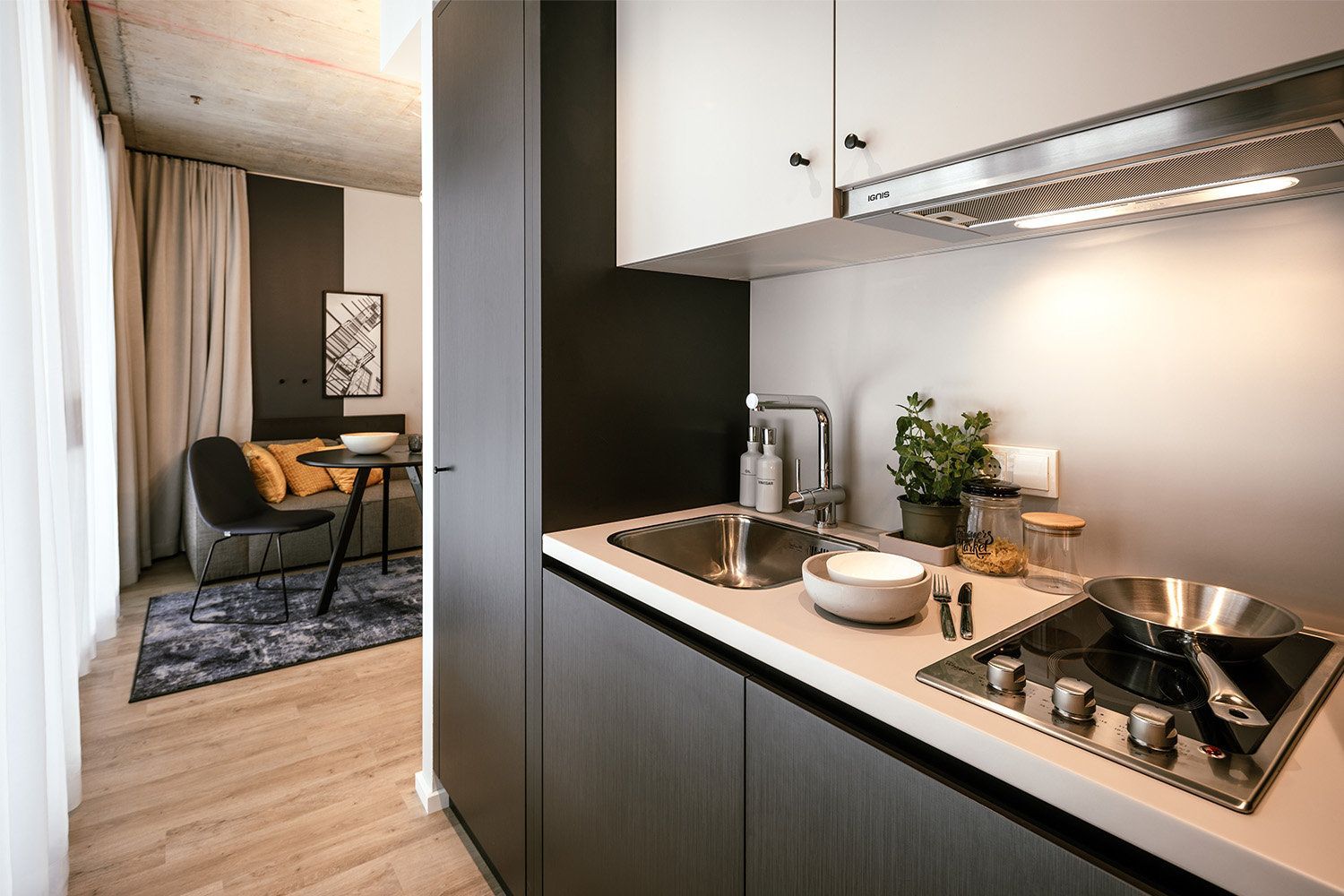 Dein Serviced Apartment ist nicht wie ein unpersönliches Hotelzimmer, sondern deine Wohnung auf Zeit in Wien. Dafür sorgt vor allem unsere Einrichtung. Modern, stylisch und urban – hier kannst du gar nicht anders, als dich von der ersten Sekunde an wohlzufühlen. Alle unserer 131 Serviced Apartments im Adina Serviced Apartments Vienna sind sowohl vollmöbliert als auch hochwertig und umfassend ausgestattet. Dazu gehört alles, was du in deiner Kitchenette zum Kochen brauchst.