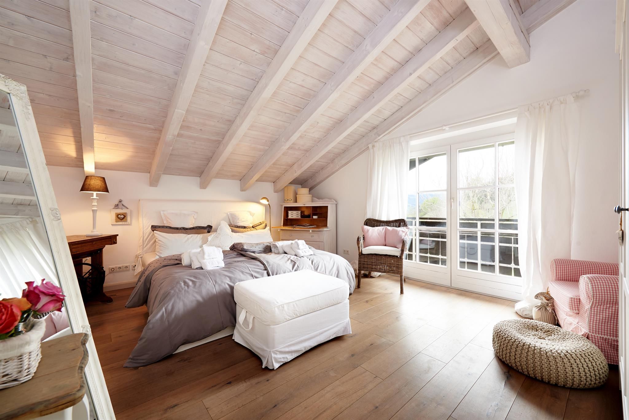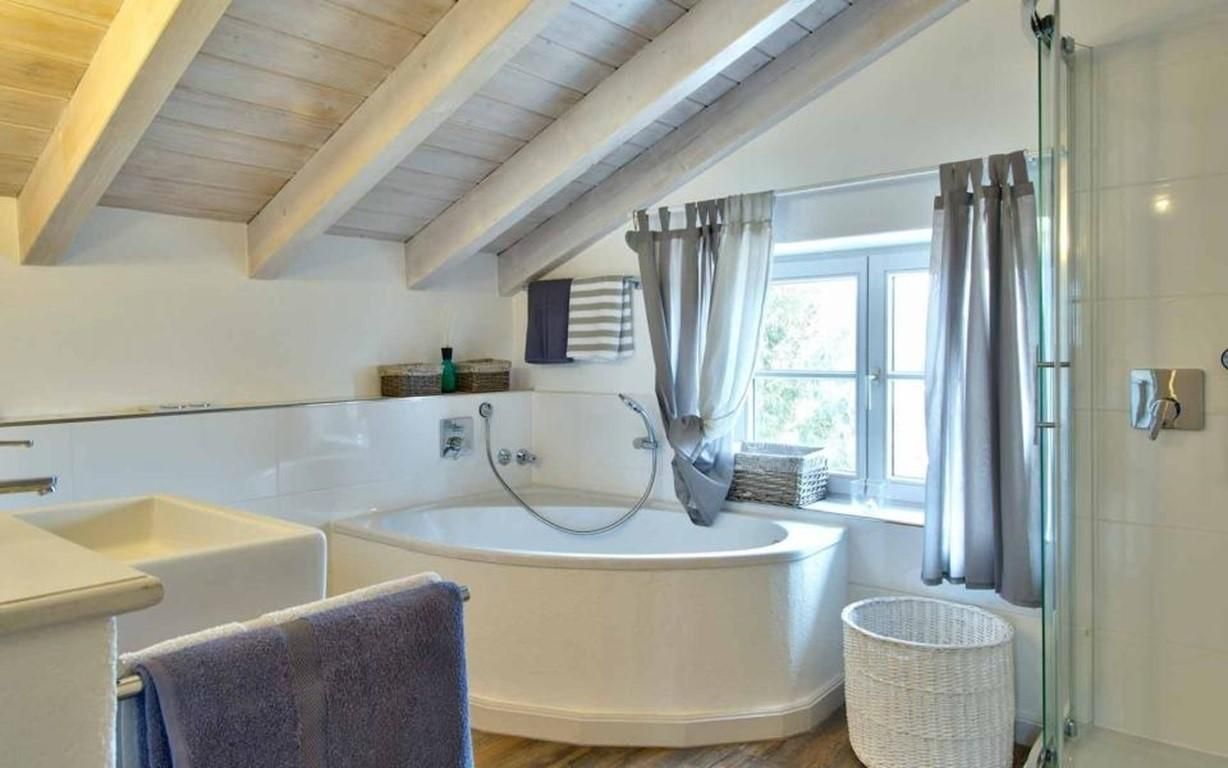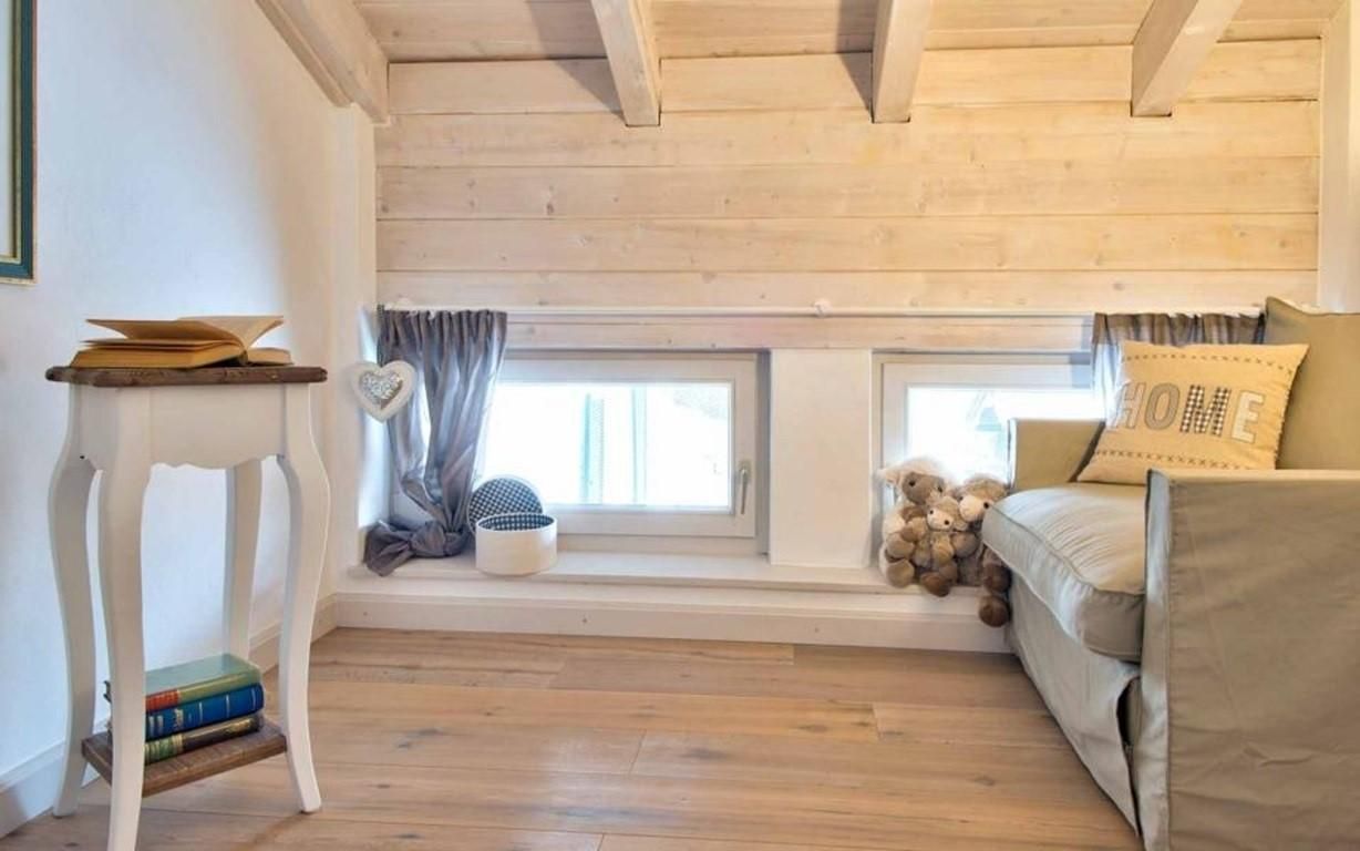 Die offene Bauweise mit zentral gelegener Wendeltreppe verbindet die einzelnen Räume. Die verwinkelten Bereiche bieten individuelle Rückzugsmöglichkeiten in romantischem Ambiente.