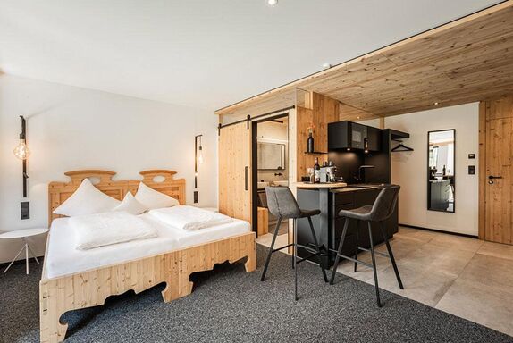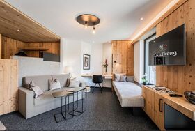 Die Wohnung verfügt über 1 Doppelbett und bietet zusätzlich auf der Ausziehcouch Platz für 2 weitere Personen. Unser Hoamatl Bergwiese hat eine Terrasse mit direktem Zugang auf die großzügige Liegewiese oder einen Balkon.