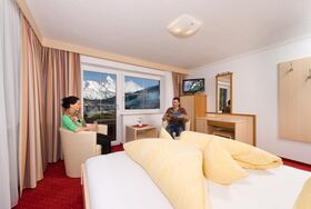 Gemütliches, Konfortzimmer mit Kabel-TV und Flachbildschirm, Radio, kosstenloses W-Lan, Safe und Balkon. WC mit Dusche und Fön. Größe: ca. 20m².
