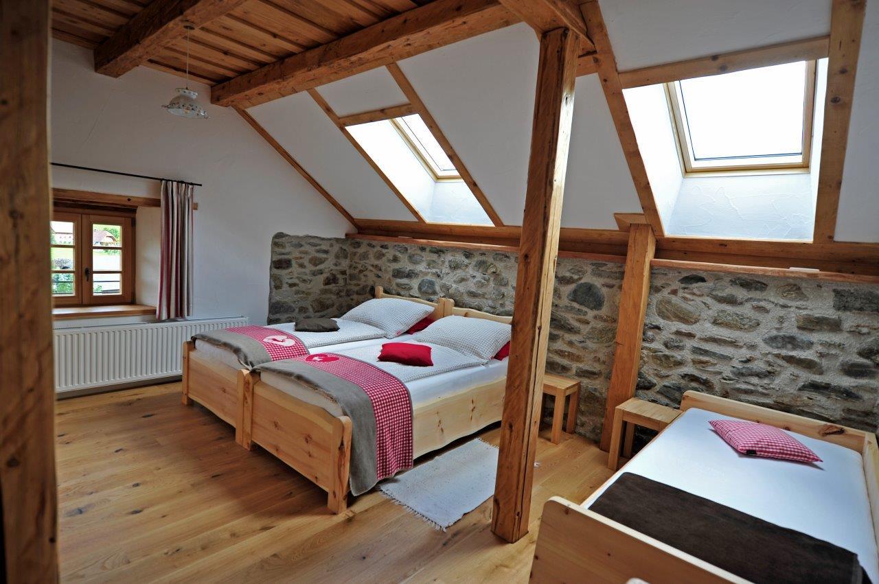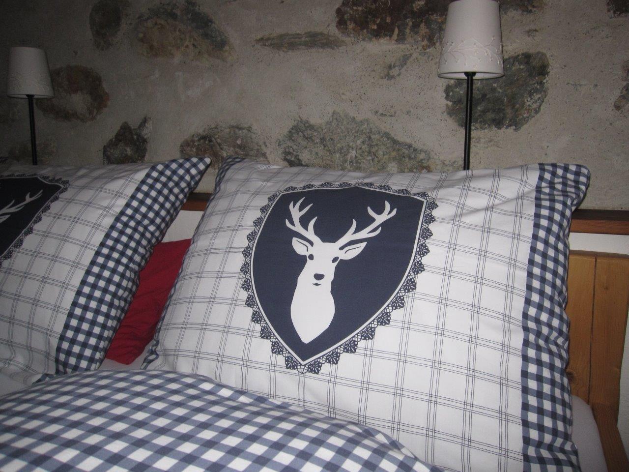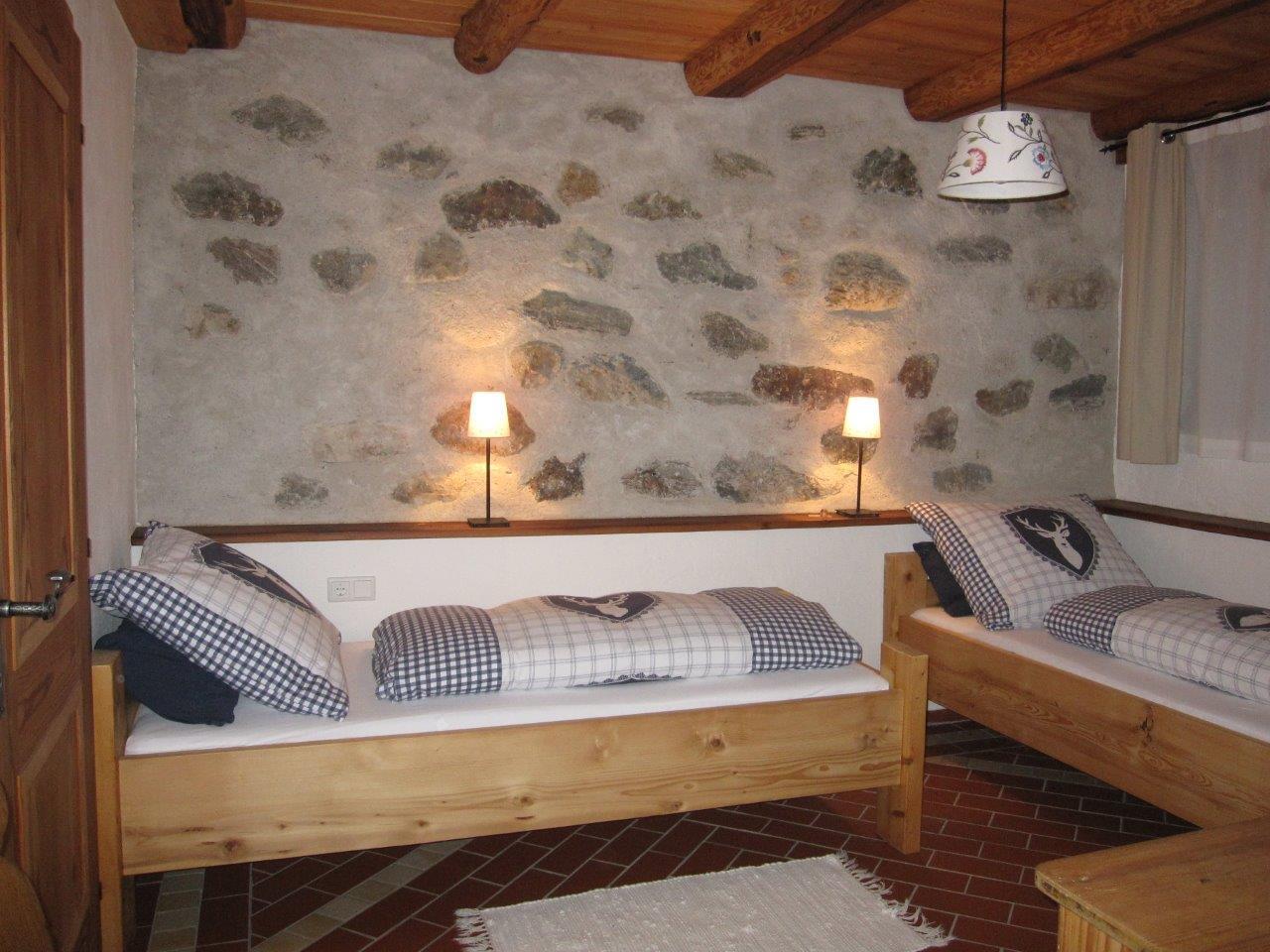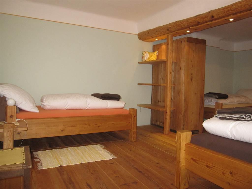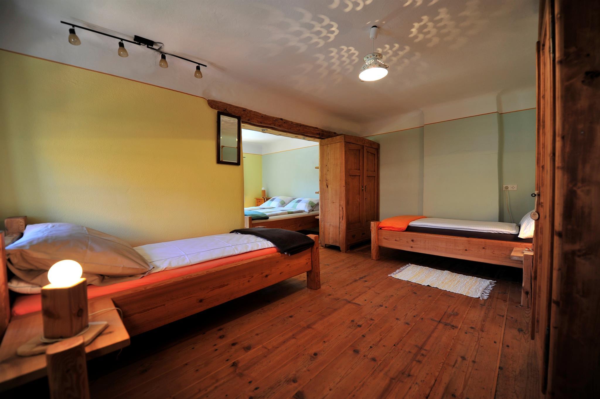- 1 Schlafzimmer mit Doppelbett (Zimmer Knecht), 1 Schlafzimmer mit 3 Einzelbetten (Zimmer Onkel), 1 Schlafzimmer mit 4 Einzelbetten (Familienzimmer Buben).