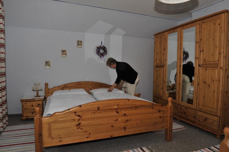 Die Ausstattung des Hauses entspricht der eines 3-Sterne-Betriebes Neue TV-Geräte (Flachbildschirm) u. gratis W-LAN in allen Zimmern! 1208 m über dem Meeresspiegel und umringt von den Bergen der Niederen Tauern. Mit dem größten Metall Edelweiß der Welt - im Wandergebiet Hinteres Lessachtal In der Stille zu sich selbst zu finden und mit allen Sinnen genießen zu können - das wünschen wir Ihnen! 7 hübsche, frisch renovierte Zimmer; heller, gemütlicher Frühstücksraum, der am Abend gerne zum geselligen Beisammensitzen genutzt wird. Getränke im Haus erhältlich. 50m² Ferienwohnung für 2-8 Personen mit geräumigem Schlafzimmer (3-Bett) + Morgensonnebalkon. Bequeme Doppelschlafcouch in der Wohnküche, SAT-TV, Badezimmer (Dusche/WC)