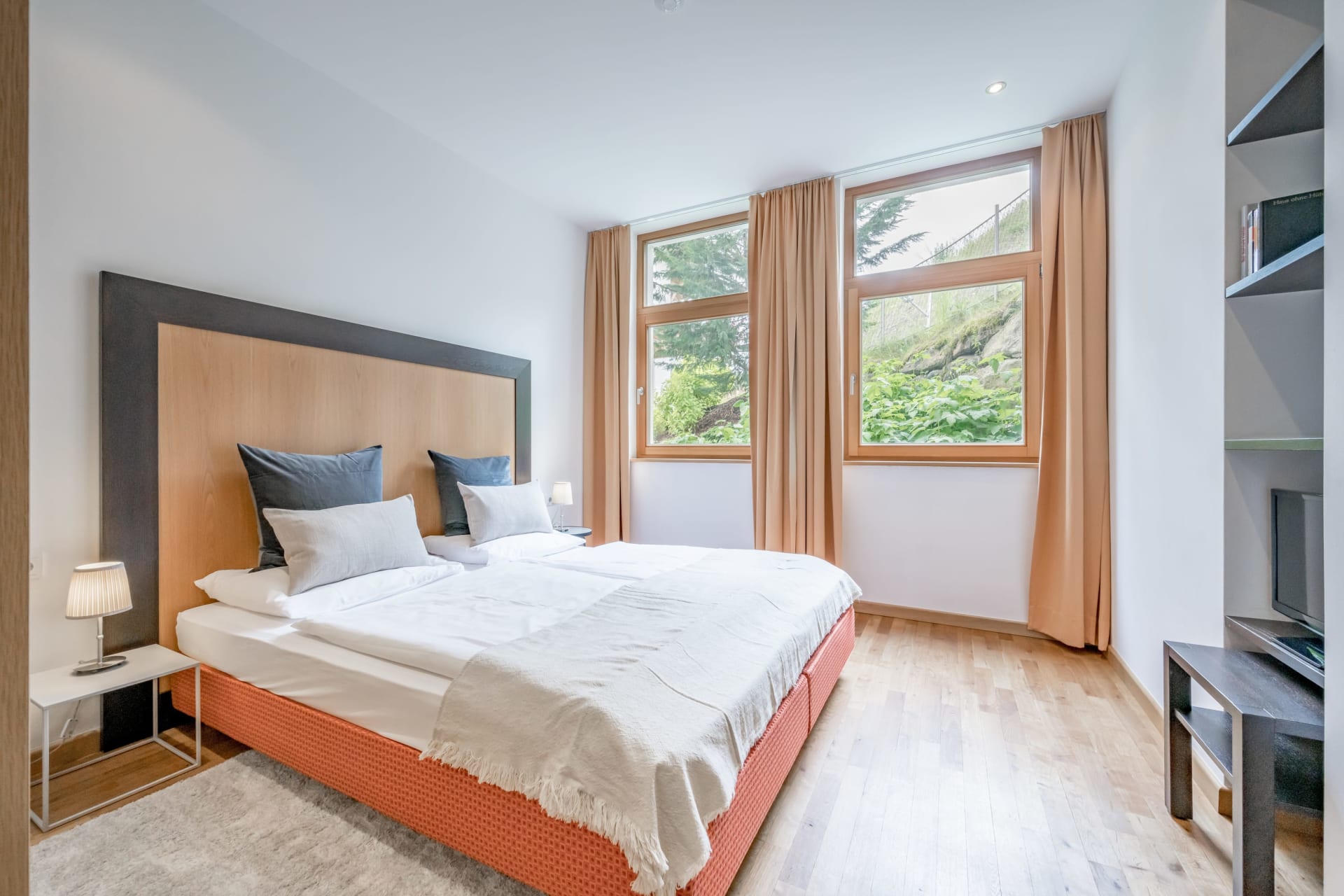 • 1 weiterer Schlafraum für 1 Person mit Platz für ein Zustellbett im Bedarfsfall