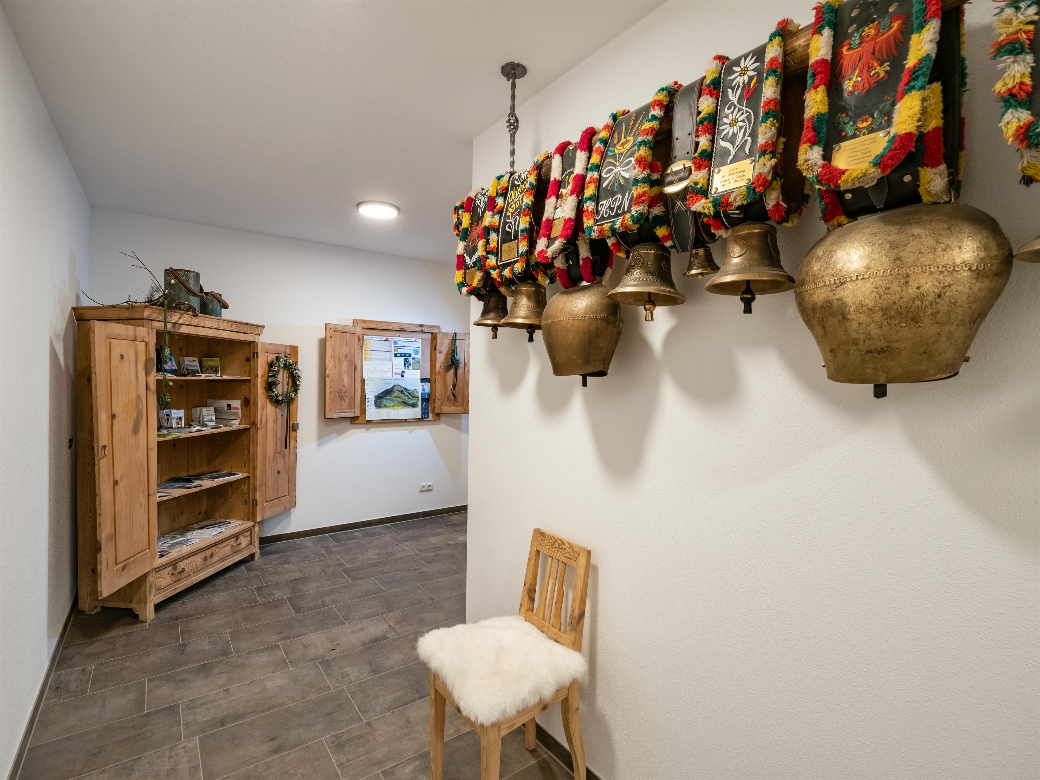 Am Hof angekommen, befinden sich vorgesehene Parkplätze neben dem Eingangsbereich zu unseren Apartments. Wo ein geräumiger verschließbarer Skiraum mit Skischuhtrockner, Garderobe Skihalterungen und Bankerl zu finden ist. Dieser auch im Sommer für Wanderschuhe, Fahrräder, E Bike zum Laden und versperren möglich ist. Im Eingangsbereich im Erdgeschoss erwarten Sie Infomaterialien aller Art in einem alten Kasten. Ein WC und der Eingang zu unserem Lift.