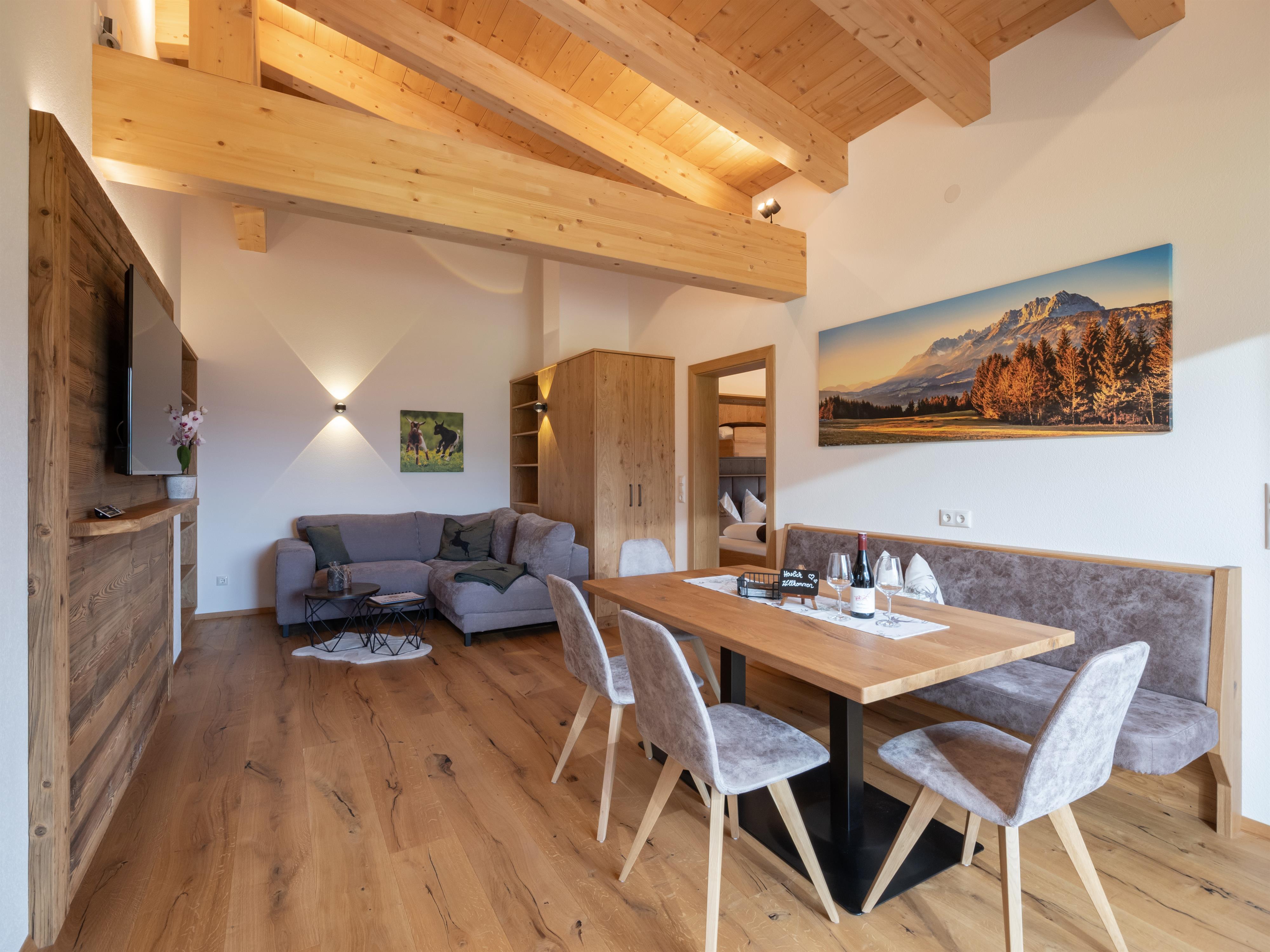 Unser Apartment Kaiserstadl befindet sich im 2. Obergeschoss unseres neu erbauten Wohnhauses. Das Apartment befindet sich wie der Name schon verrät auf der anderen Seite des Hauses mit atemberaubenden Blick auf den Wilden Kaiser.
