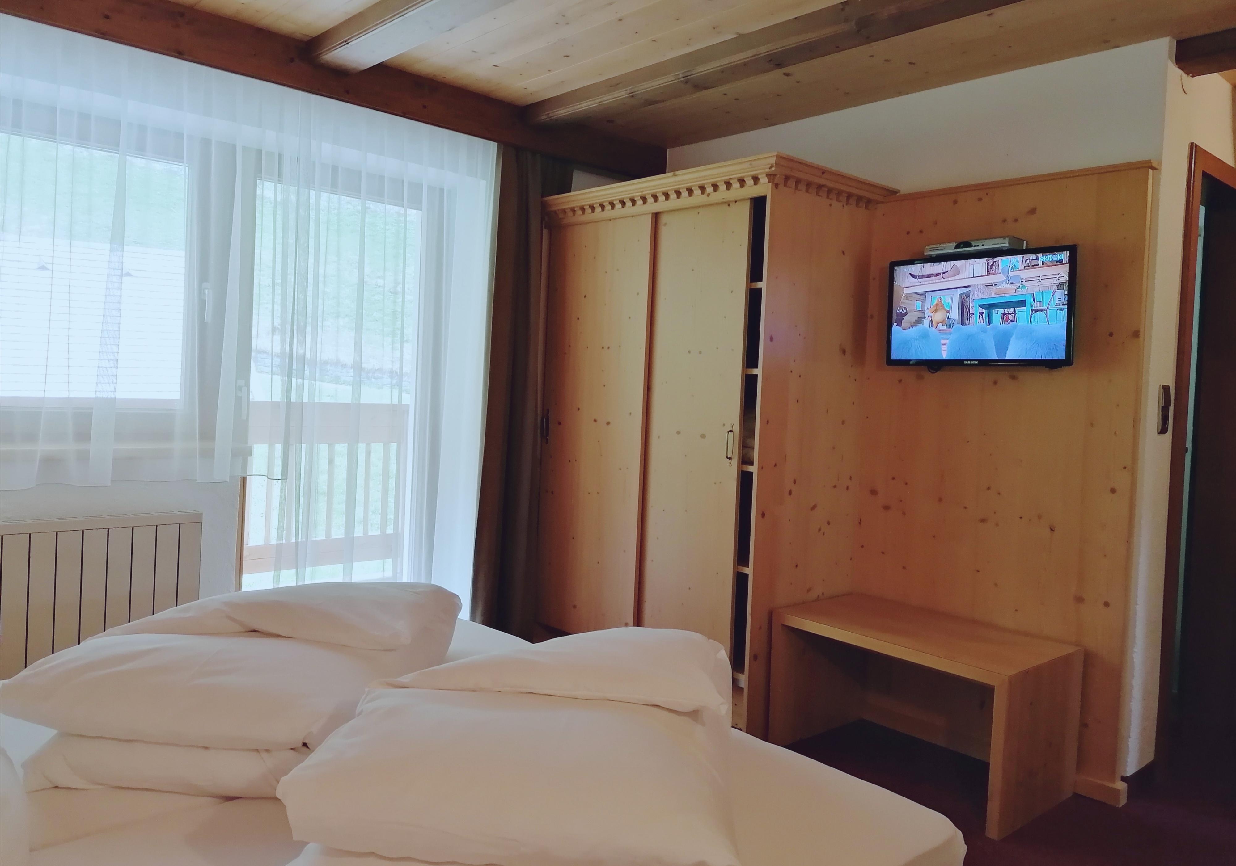 Das Zimmer bietet ein Doppelbett (2 Matratzen je 90x200 cm), eine Sitzbank, Schreibtisch, SAT-TV, Kleiderschrank, Safe und Balkon. Das geräumige Badezimmer im modernen Design besteht aus Dusche, WC, Waschtisch, Kosmetikspiegel und Fön.