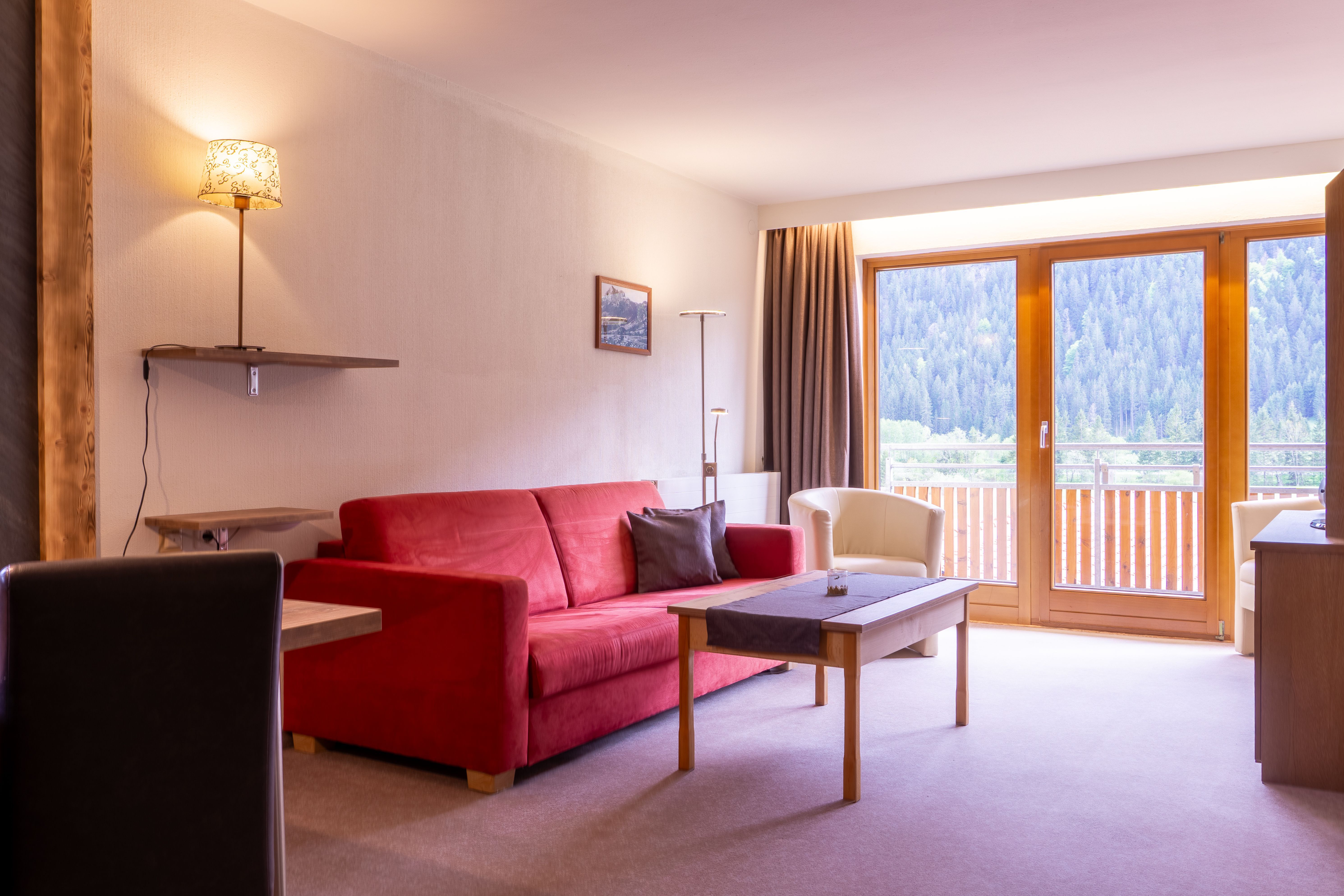 Es erwartet Sie eine gemütliche und großzügige Komfortferienwohnung mit 48 m². Bestehend aus einem Vorraum mit Garderobe, WC, getrenntes Badezimmer mit Wanne und Duschvorrichtung, Fön, NEUE Küche mit Durchreiche zum Essplatz, (Herd mit Backrohr und 4 Platten, Spülmaschine,Toaster, Wasserkocher, Kaffeemaschine), Wohnzimmer mit Doppel-Schlafcouch, Flat TV, Wlan gratis, Radio, ein separates Doppelzimmer mit Boxspringbett, Safe, möblierte Südloggia, überdachter Autoabstellplatz, Brötchenservice, komplette Wäsche (Bett-, Tisch-, Bad- und Küchenwäsche). Zusätzlich zur Ferienwohnung können Sie noch ein Doppelzimmer oder Einzelzimmer mit DU/WC buchen.
