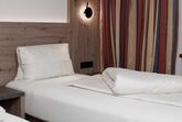 Gemütliches Zweibettzimmer mit Balkon, Dusche/WC und Sat-TV.