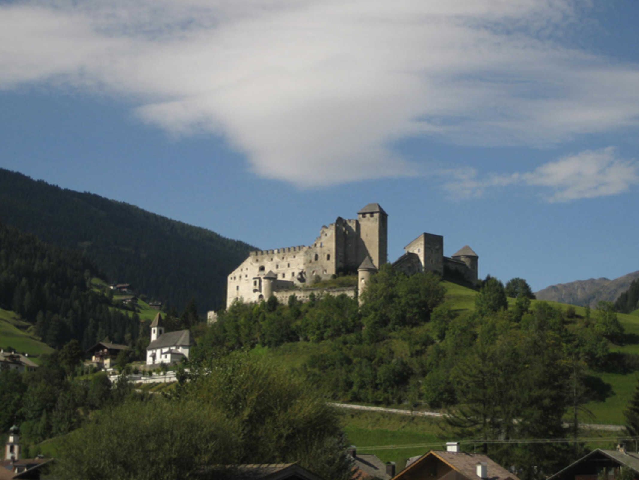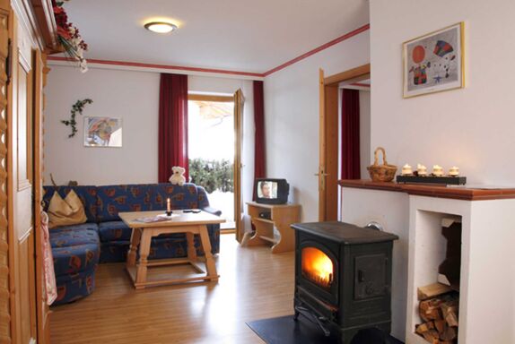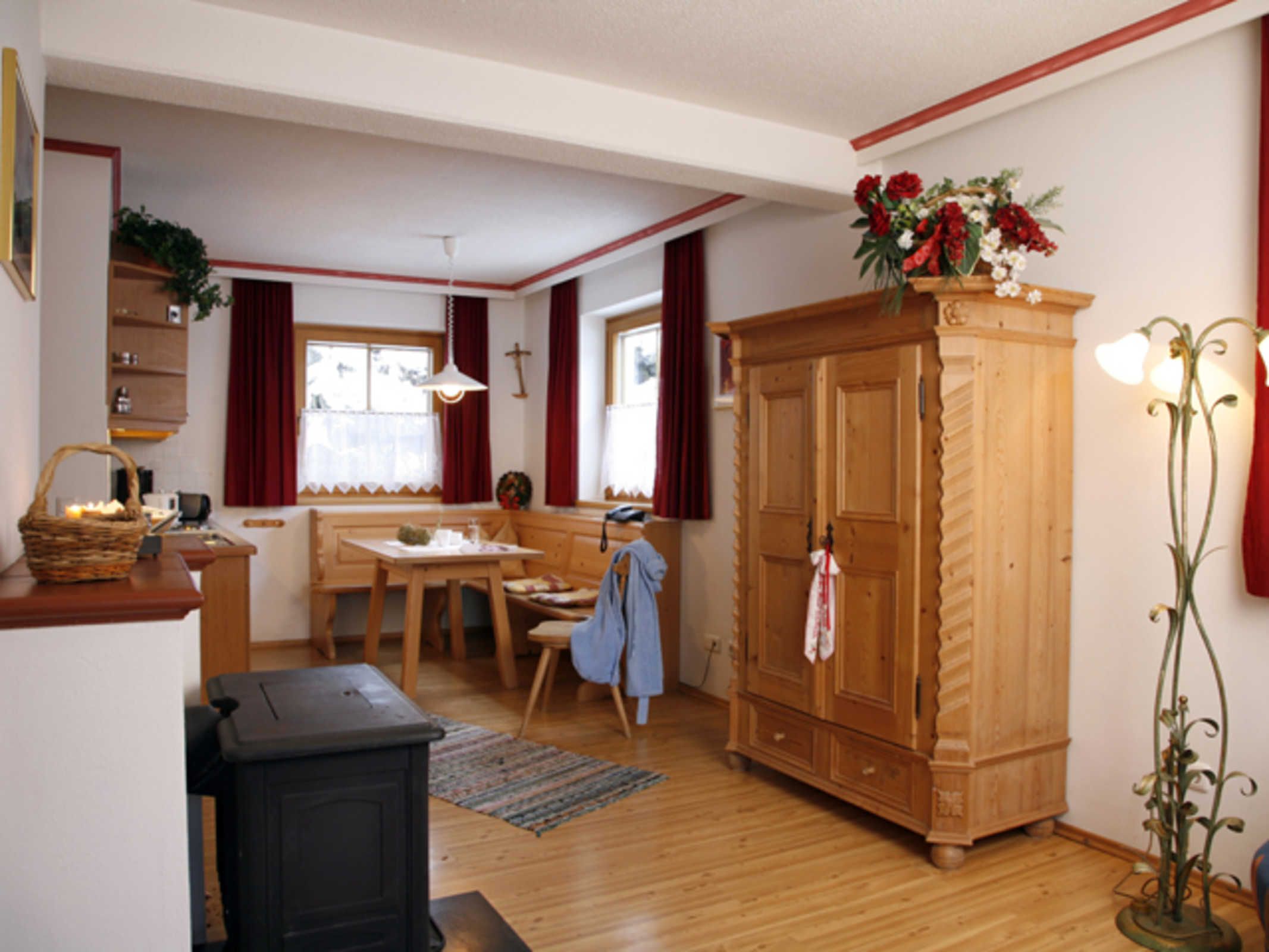 Alle Zimmer haben einen wunderschönen Blick auf die Burg Heinfels. Im Wohnbereich können Sie es sich bei dem Kaminofen gemütlich machen und den Tag Revue passieren lassen.