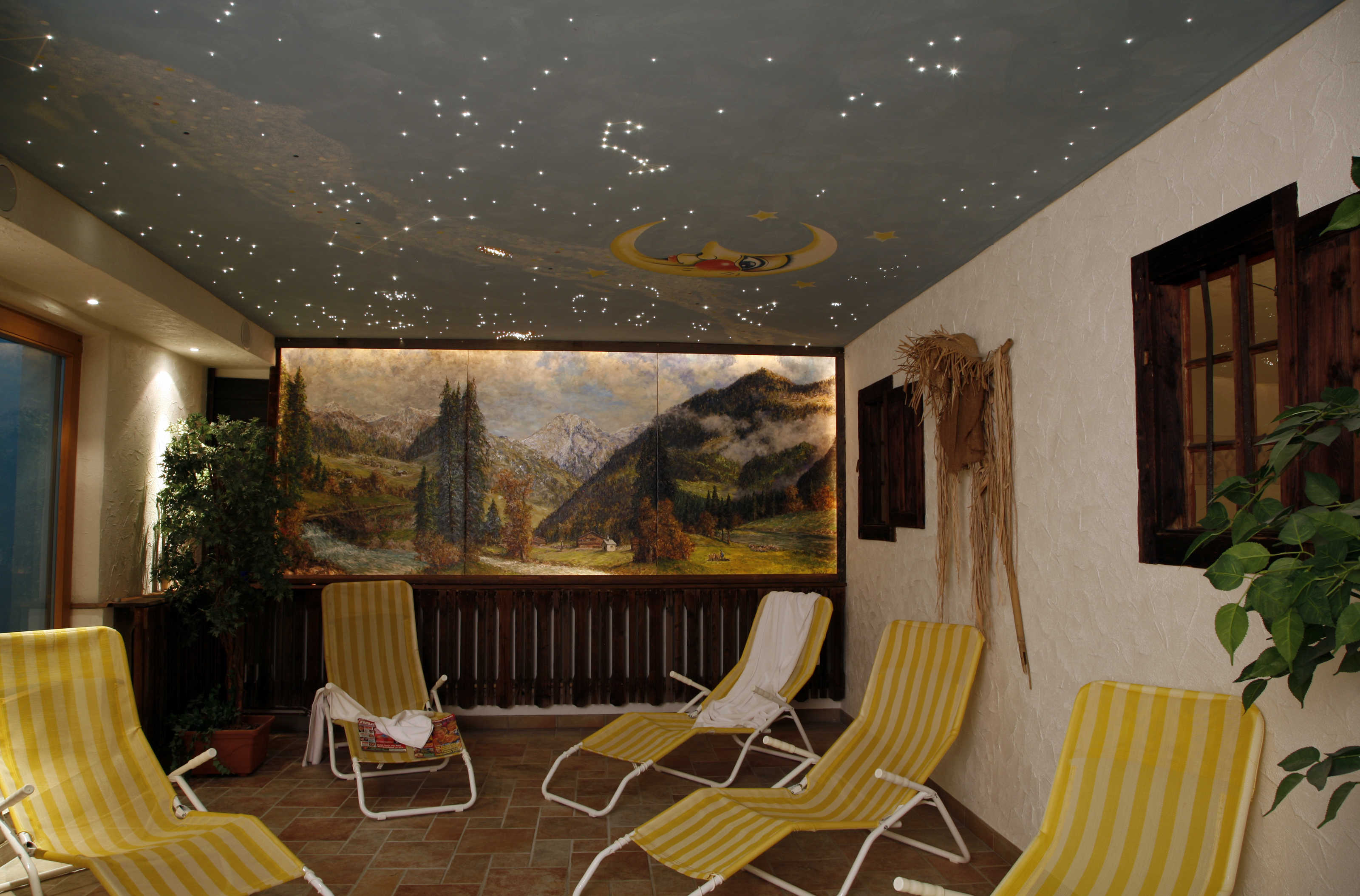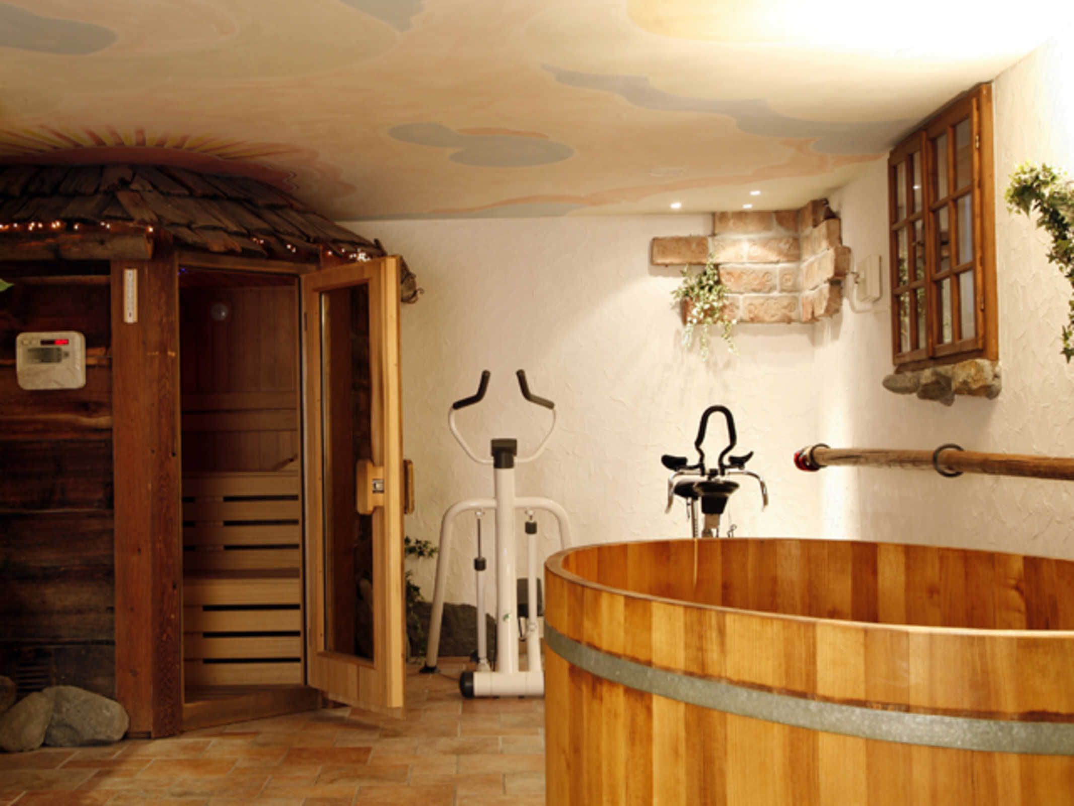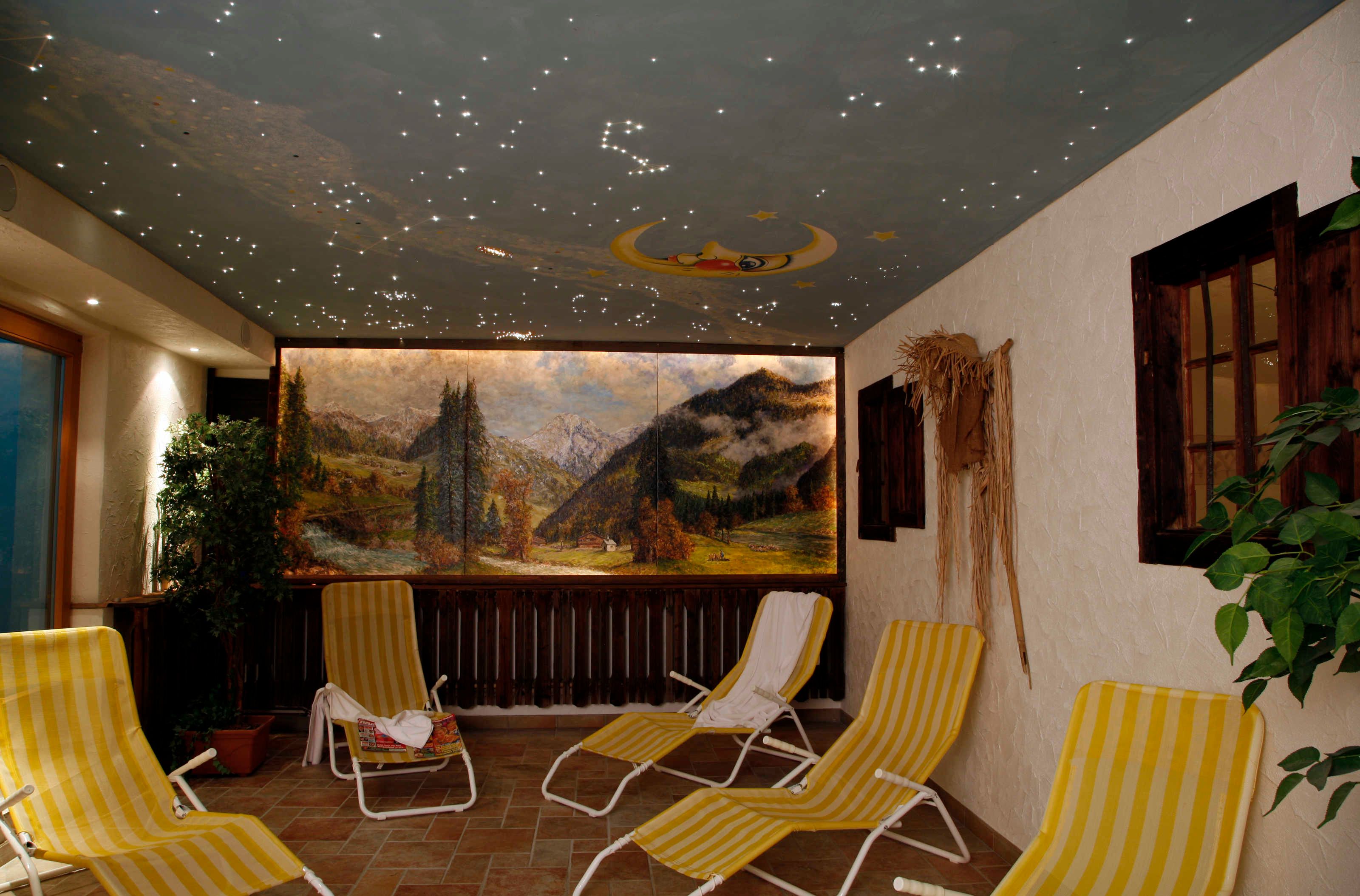 Erholung im Haus, mit unserer »Almhüttensauna« und einem anschließenden Tauchgang in unserem Tauchbecken lässt sich jeder Tag ausklingen. Der Ruheraum mit Sternenhimmel lädt anschließend zum Relaxen ein. Die Kinder können sich in unserem Dart- und Billiardraum vergnügen oder in der Spielecke schauen, wer beim Karten- oder Brettspiel gewinnt.