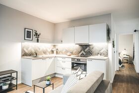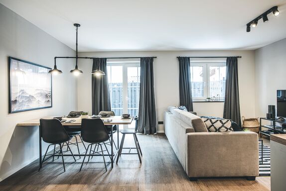 Unser Apartment Alban liegt im Erdgeschoß und bietet auf 50 Quadratmetern Platz für bis zu 4 Personen. Der kleine, private Garten ist perfekt für Sonnenhungrige, aufgeweckte Kinder. Alban verfügt über ein Schlafzimmer, einen Wohn- Essbereich mit Auziehcouch und einer voll ausgestatteten Küche und ein Badezimmer. Außerdem: Flat TV, kostenloses WLAN und Nespresso Kaffeemaschine