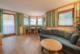 Die Ferienwohnungen sind gemütlich im Tiroler Stil mit Holzmöbeln eingerichtet. Viele Fenster sorgen für lichtdurchflutete Räume und bieten einen herrlichen Ausblick auf den imposanten Stubaier Gletscher.