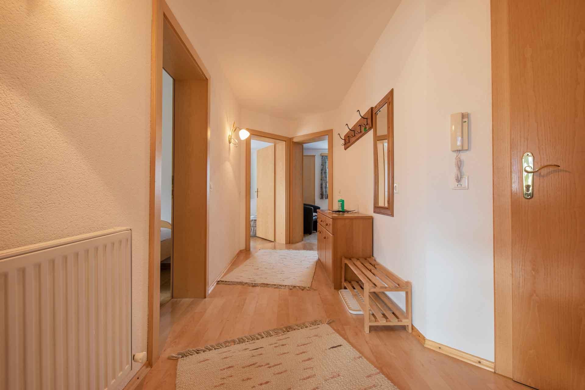Ferienwohnung B, für 4-5 Personen (ca. 80 m²) * grosse vollausgestattete Küche: Herd, Backrohr, Kühl- und Gefrierschrank, Mikrowelle, Geschirrspüler, Kaffeemaschine, Geschirr, Kochtöpfe, Besteck, ... * Wohnzimmer mit Esstisch, Couch, Sat-TV * 2 Doppelzimmer (Zustellbett möglich) * 1 Einbettzimmer * neurenoviertes Bad mit Dusche ,WC separat * Balkon Endreinigung € 85,-WLAN