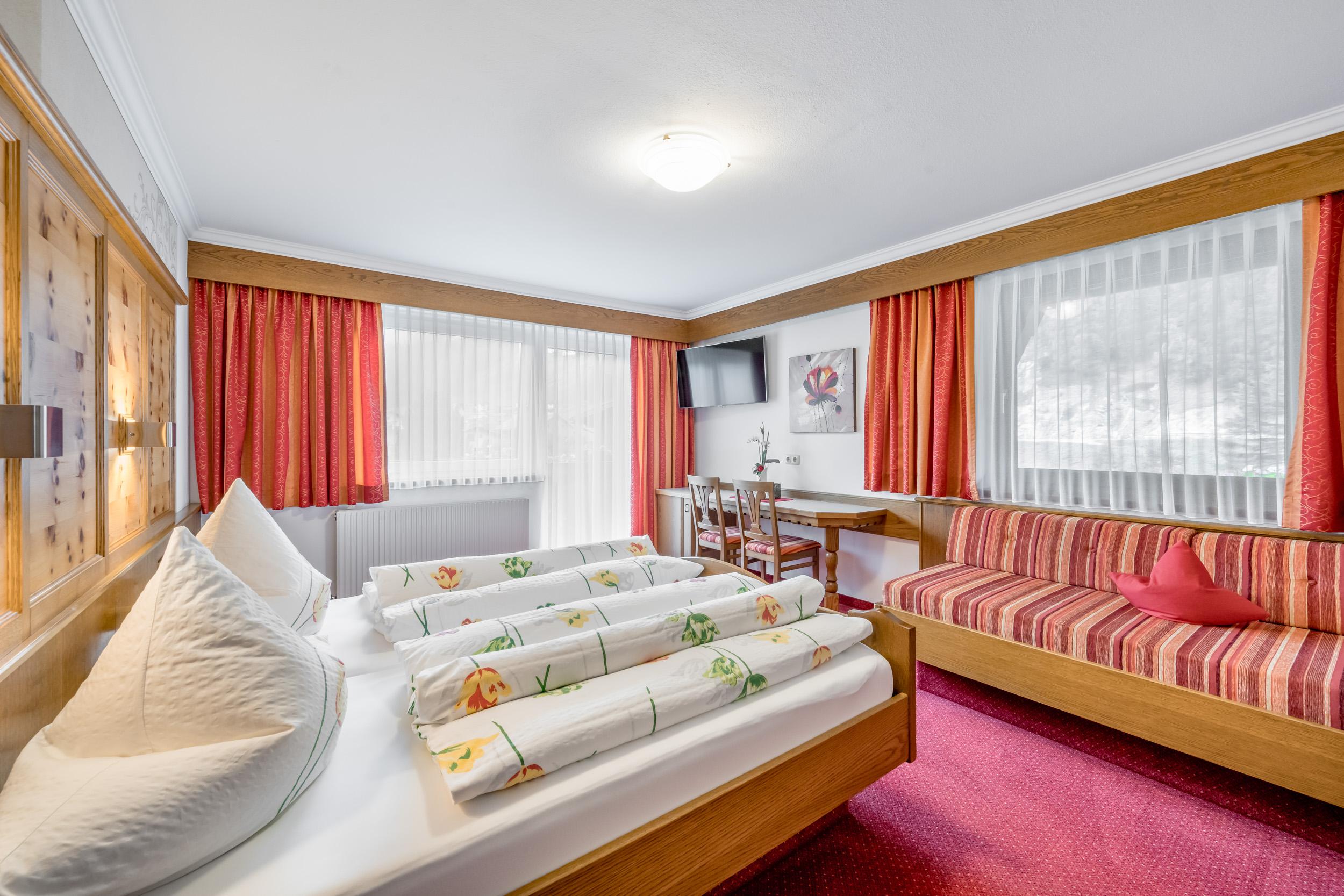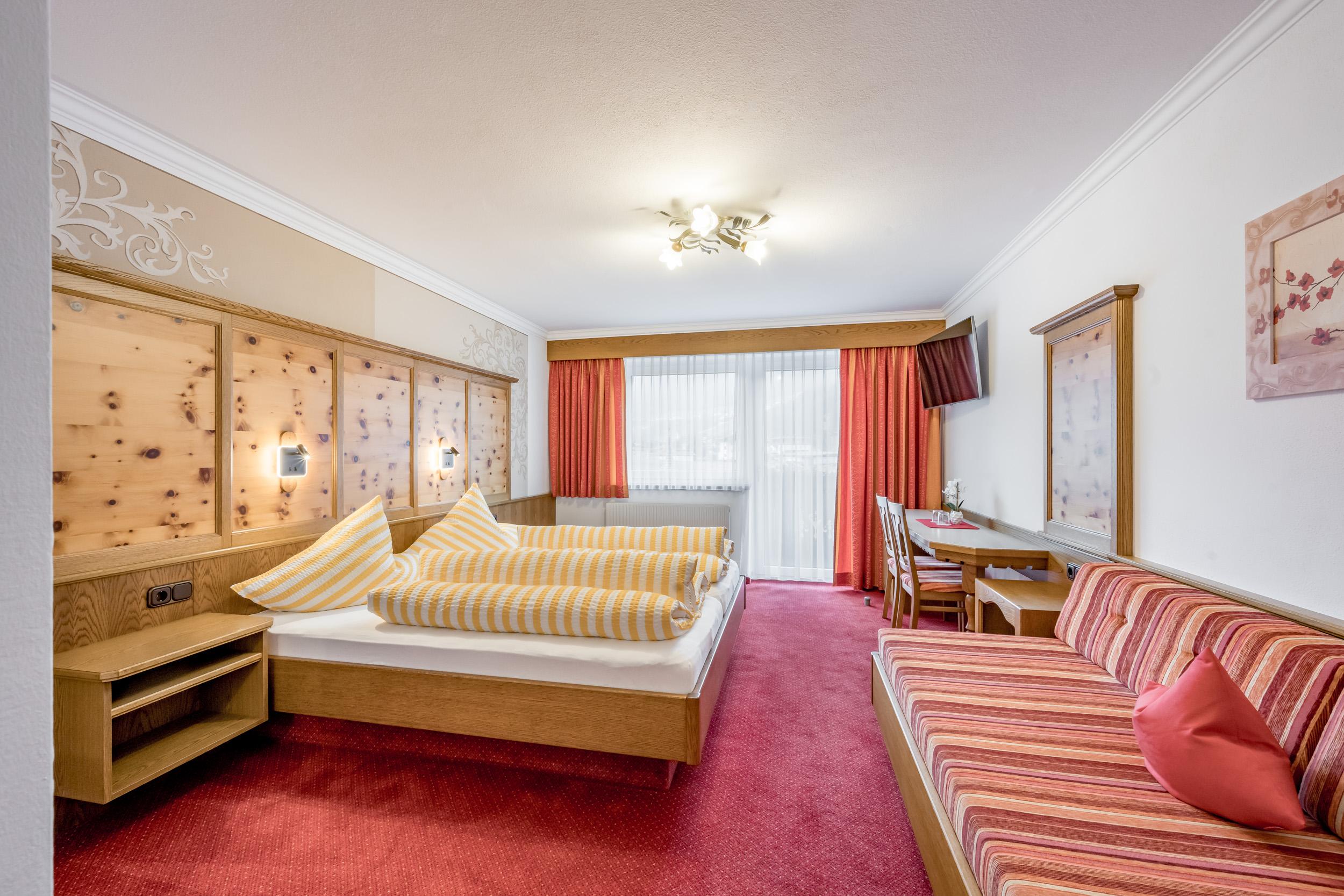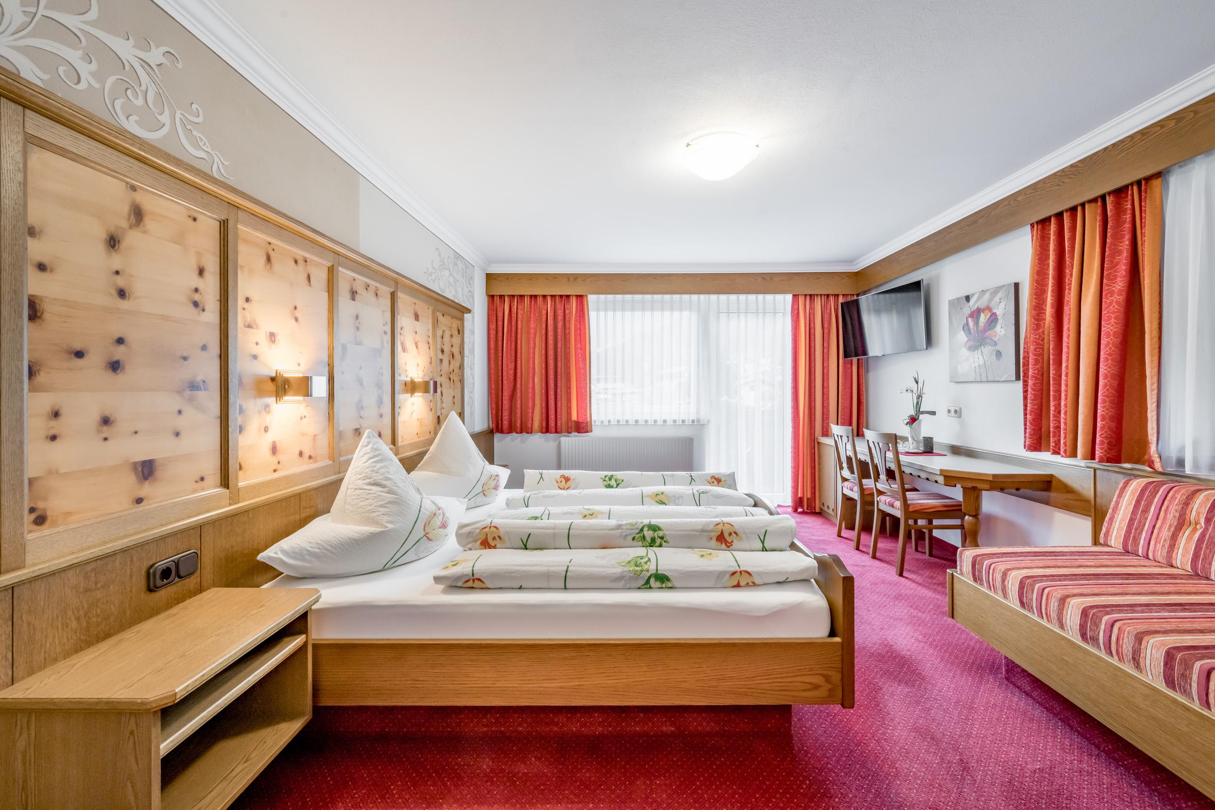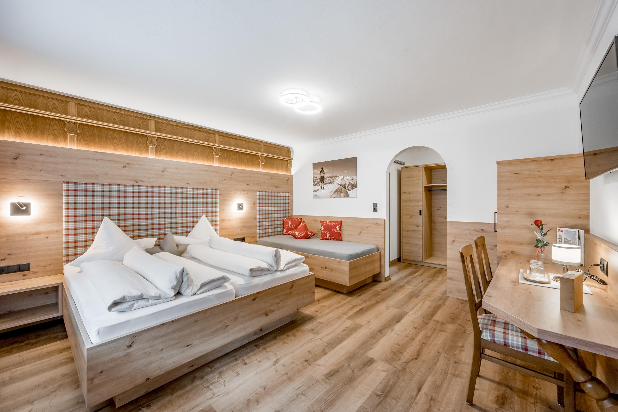 Comfort Doppelzimmer ohne Frühstück. 1 Badezimmer mit Dusche/WC, Haarfön, Handtuchtrockner, Zimmersafe, Minikühlschrank und Balkon. Größe ca. 20 m².