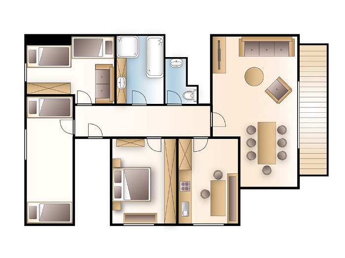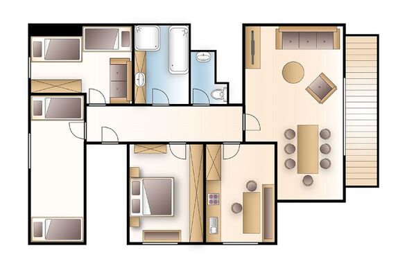 Unsere freundliche 4-Zimmer DG-Ferienwohnung verfügt über drei großzügige Schlafzimmer. Der Wohn- und Essbereich grenzt an eine komplett und hochwertig eingerichtete Küche mit zusätzlicher Essecke an. Das Wohnzimmer verfügt über einen großen Südbalkon und SAT-TV. Im Badezimmer sind eine Badewanne und eine separate Dusche vorhanden. Das WC ist ebenfalls separat. Bettwäsche und Handtücher werden Ihnen zur Verfügung gestellt. W-LAN ist vorhanden