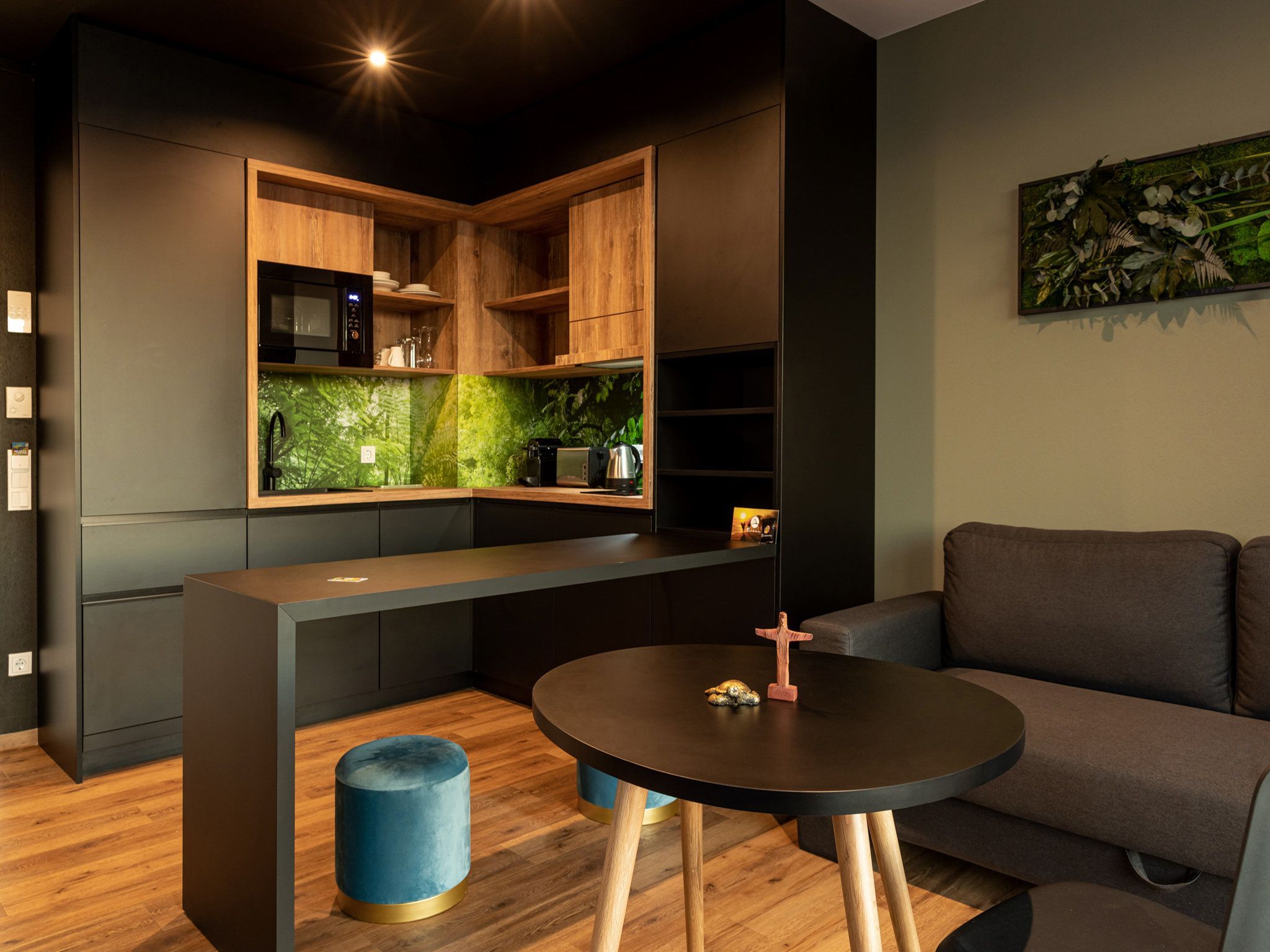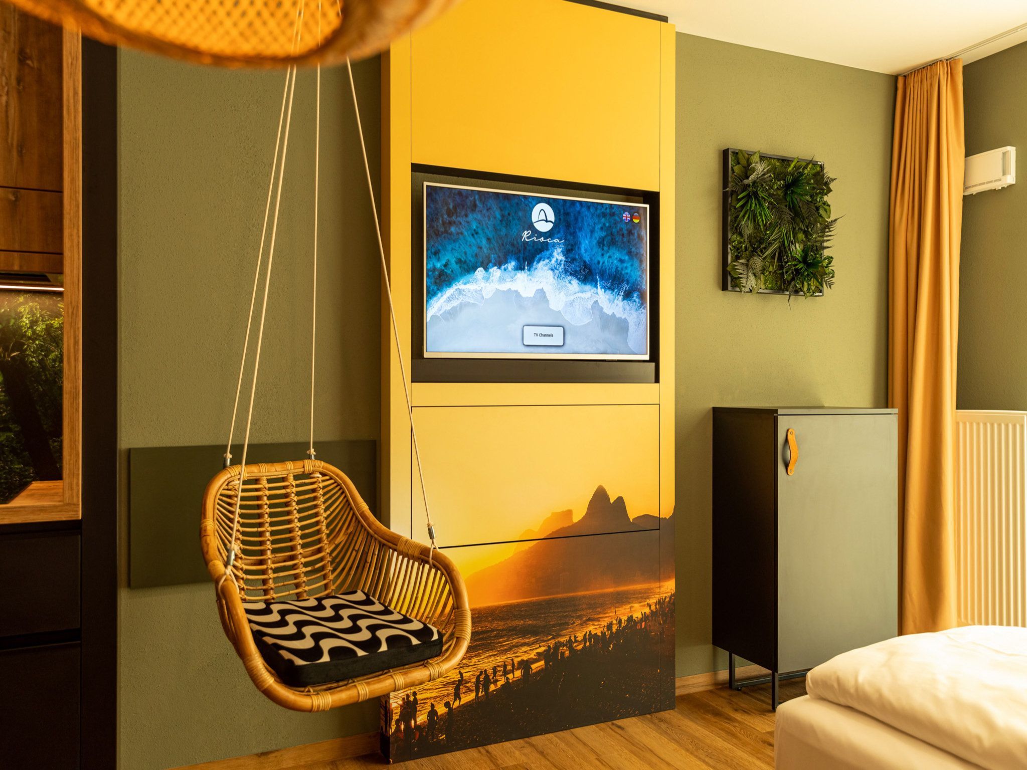 Wie Zuhause. Nur Komfortabler. In unseren modern ausgestatteten Apartments fällt es leicht, sich direkt wie Zuhause zu fühlen, denn hier hast du alles was du brauchst: • Gemütliches Bett • Kleine Wellnessoase mit Regendusche und Bluetooth Spiegel • Eigener Arbeitsbereich mit Highspeed Internet • Smart TV und Soundbox • Vollausgestattete Küche Genieße dein Frühstück mit hochwertigen Produkten aus der Region, frischen Säften und brasilianischen Leckereien. Eröffne dein Office im Coworking Space. Mach dir ein leckeres Abendessen in deiner eigenen Apartmentküche und rufe uns später mit Caipi in der Hand an der Bar Saúde! zu. Es soll dir an nichts fehlen. Wasche deine Wäsche in unserem eigenen Waschsalon. Wir reinigen sogar dein Zimmer.