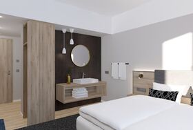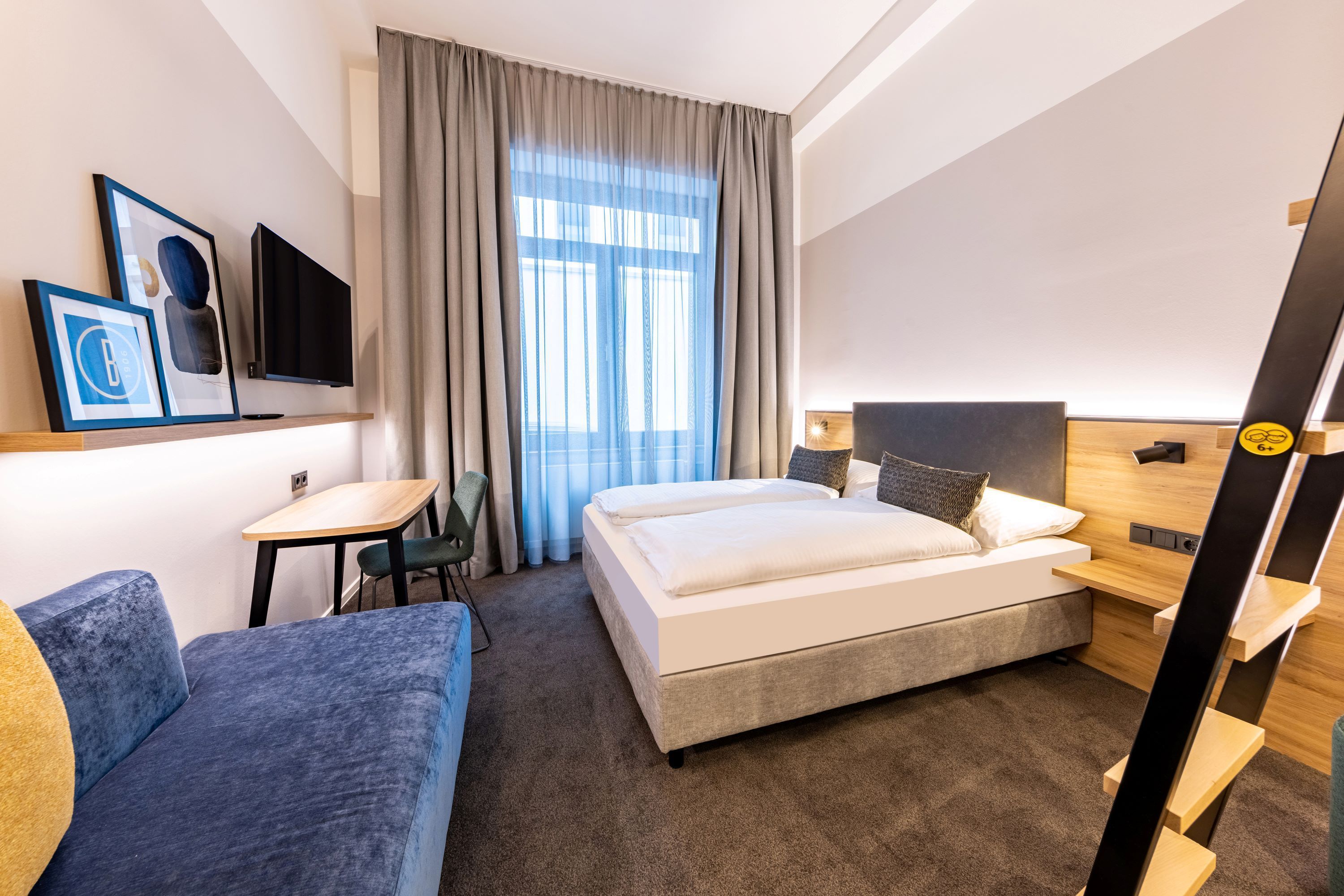 Buchen, einchecken und bezahlen, alles online und kontaktlos. Bitte übermittle uns nach der Buchung deine E-Mail Adresse-HRS übermittelt uns diese leider nicht. Wir schicken dir dann alle wichtigen Informationen zu deinem Self Check-In. Richtig schnelles Internet mit mindestens 20 mbit/s Down- und 10 mbit/s Uploadgeschwindigkeit. Moderne Studios und Zimmer, teilweise mit Klimaanlage und Kitchenette. Bestes Frühstück in der Stadt. Die öffentlichen Bereiche und die meisten Zimmer sind stufenlos erreichbar. Hoteleigener Parkplatz am Haus (9€ pro Tag-bitte vor Anreise reservieren) oder öffentliche Tiefgarage gegenüber.
