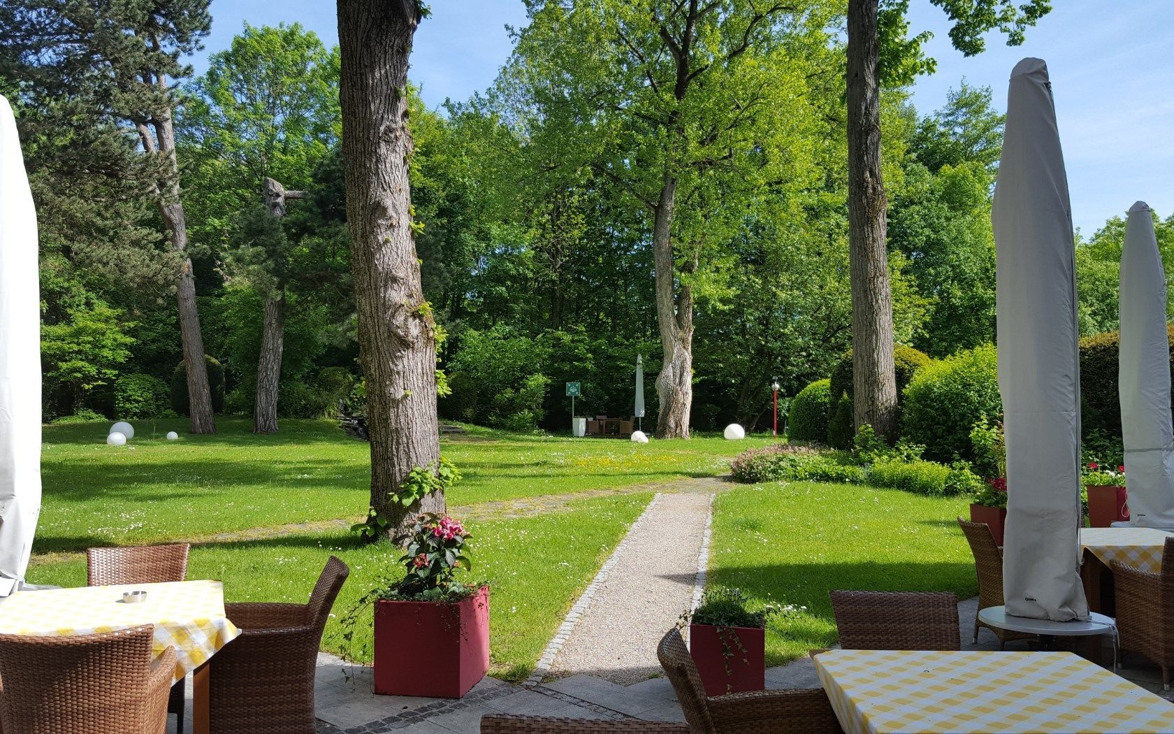 Sonnen Sie sich in der warmen Jahreszeit in einem gemütlichen Liegestuhl und lassen Sie sich von der einmaligen Atmosphäre zum Träumen verführen. Um ein Zimmer zum Park nach Verfügbarkeit garantiert zu bekommen erhebt das Hotel 20 € Gebühren pro Zimmer und Nacht.Bitte die Reservierung kontaktieren. Wir freuen uns auf Sie! Ihr Rothof-Team