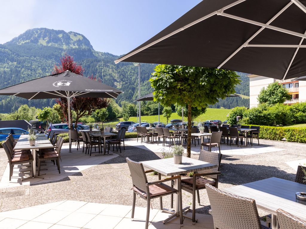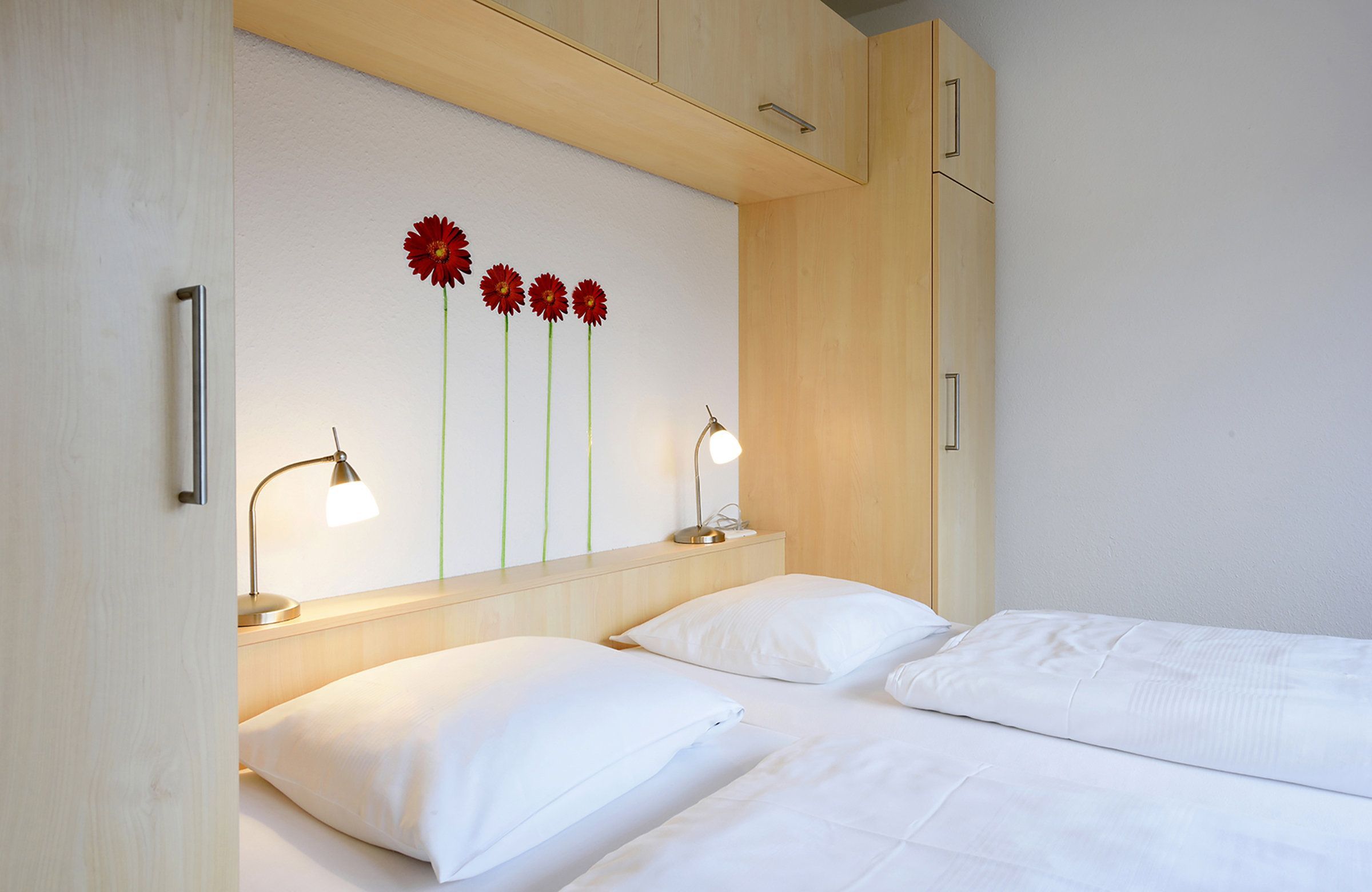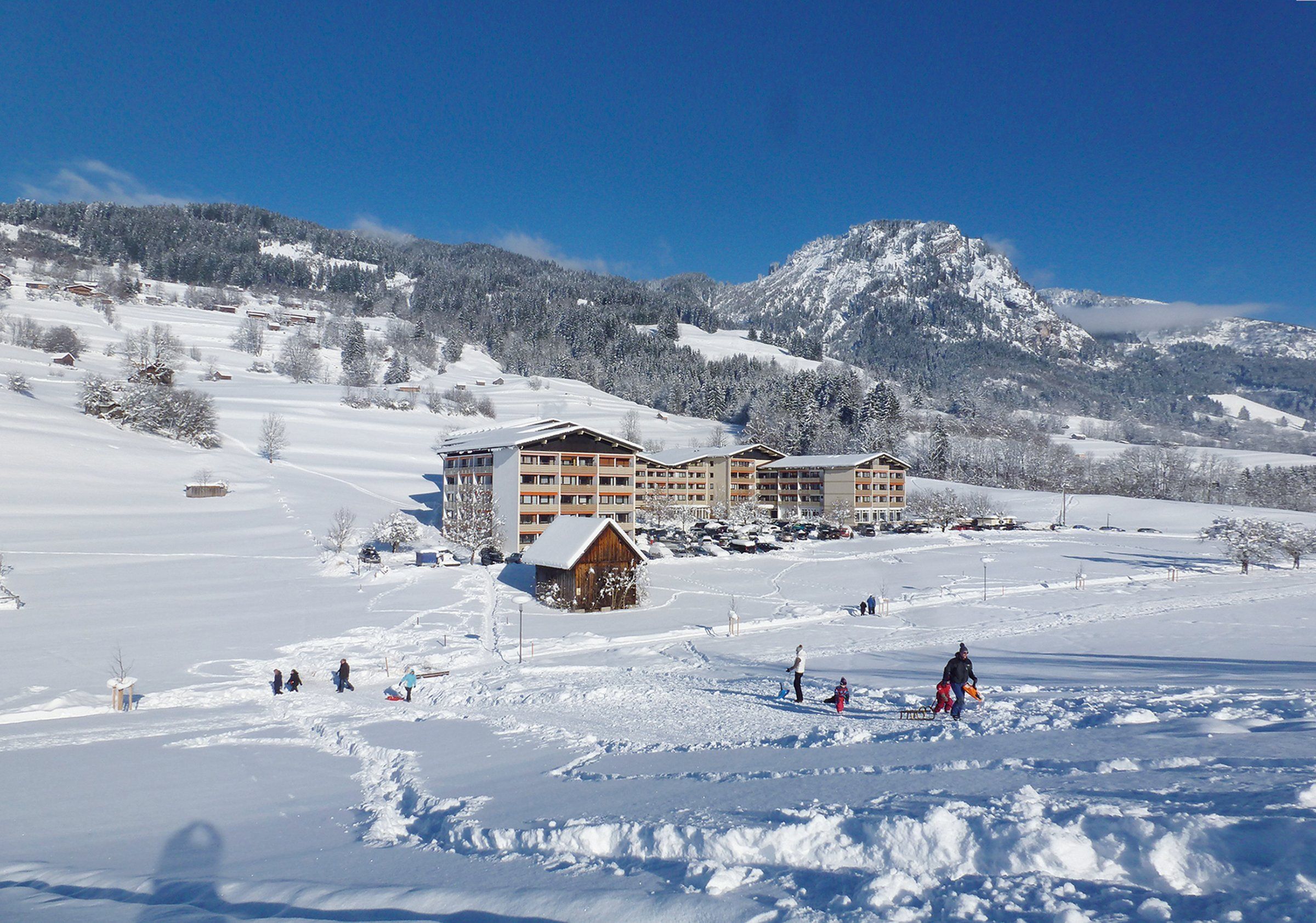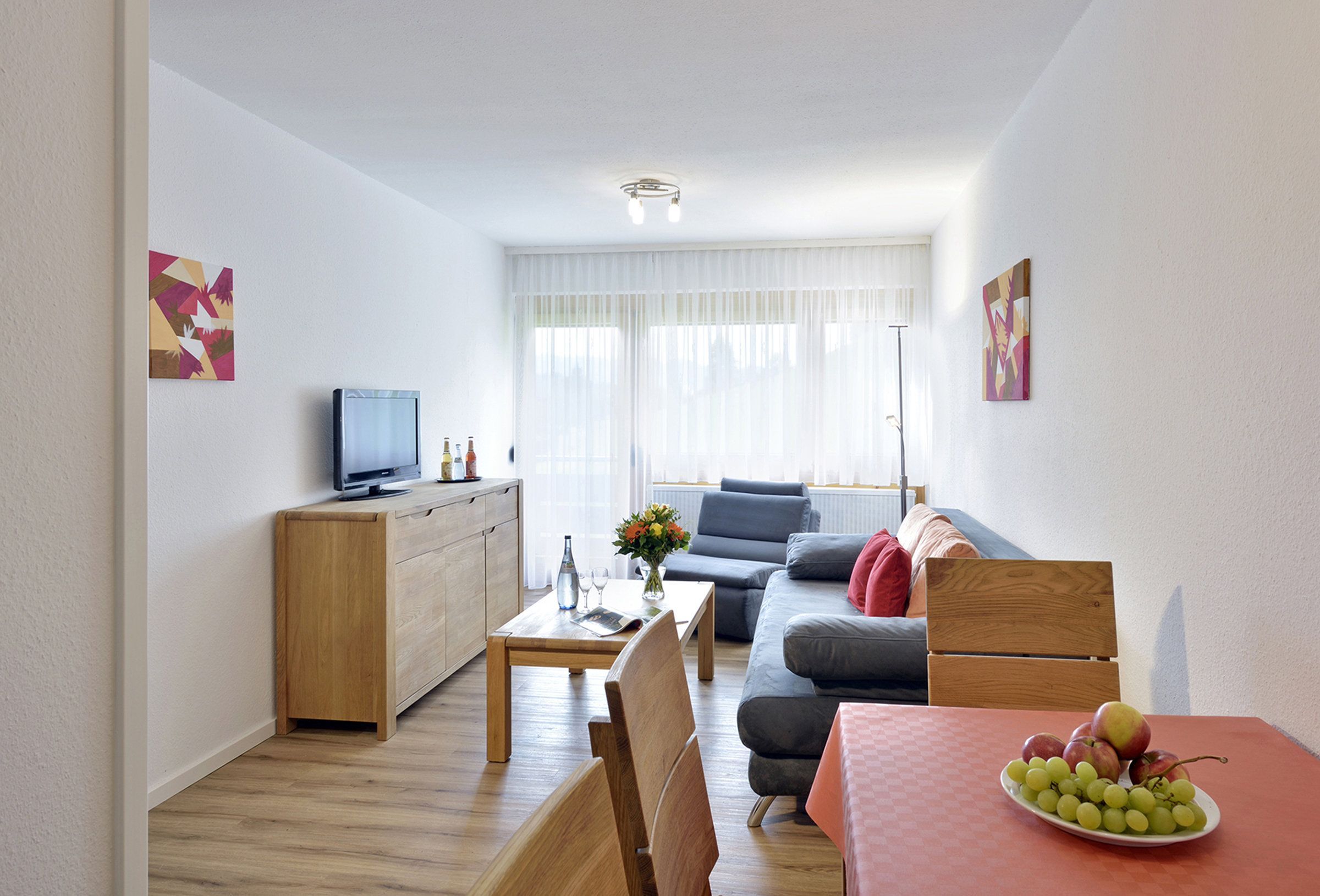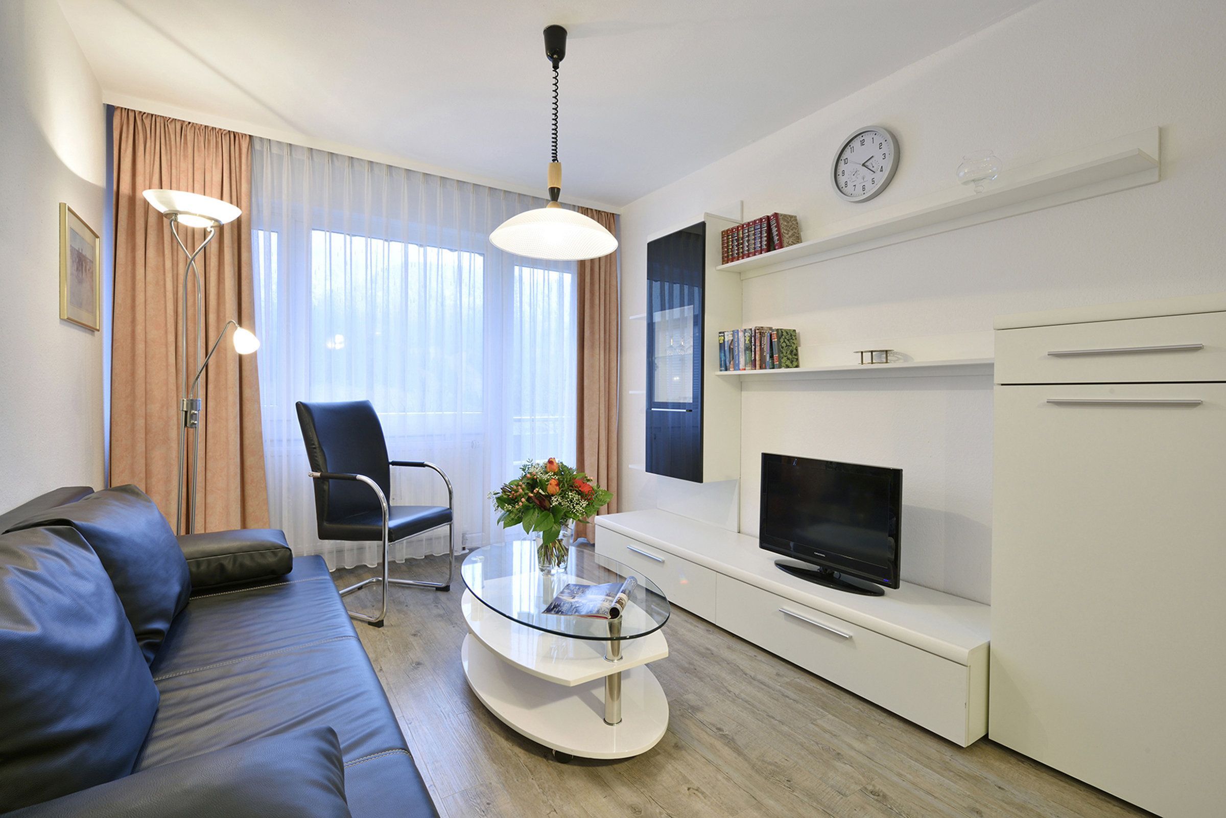 Hotelappartements statt Einzel und Doppelzimmer (45qm, Wohnzimmer mit Schlafcouch, Schlafzimmer, Küche, Bad/WC oder Dusche/WC, Balkon, Sat-TV, Telefon. Kategorien: Komfort (HRS-Standard), Premium (HRS-Komfort). Jeder Gast (außer Geschäftsreisende) erhält die Bad Hindelang Plus Card mit kostenlosen Angeboten: Bergbahnen, Busse, Erlebnisbäder, Skipass im Winter Halbpension (abends) vor Ort buchbar