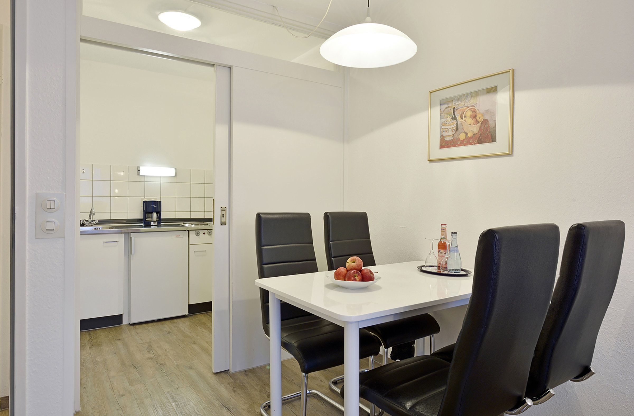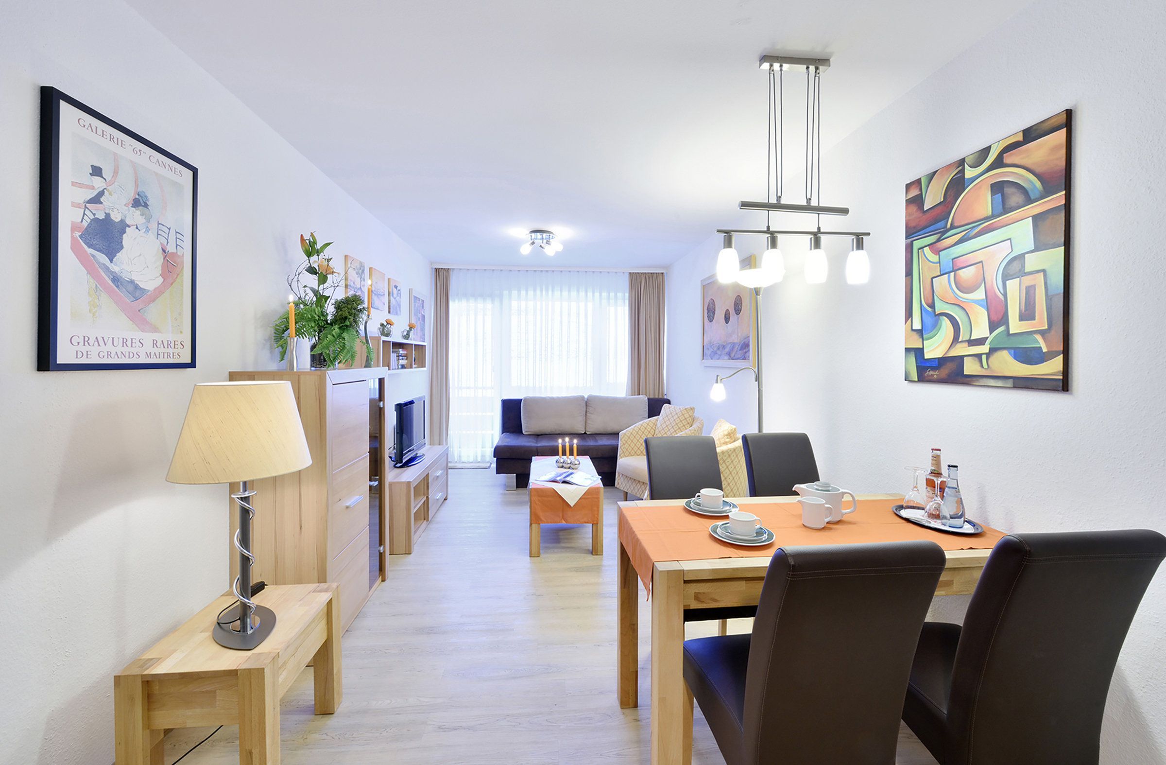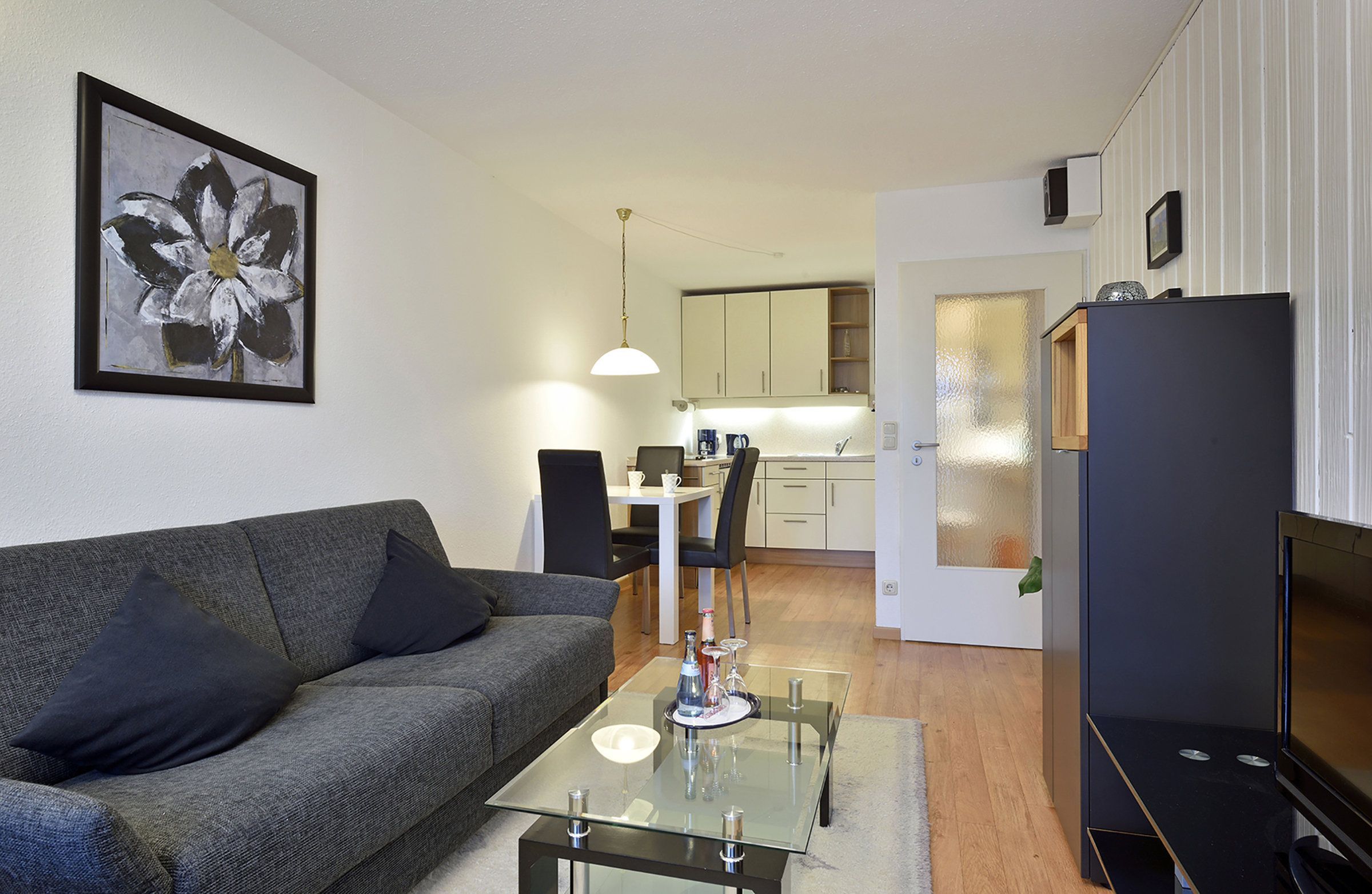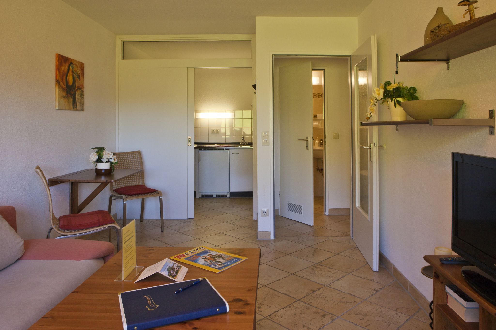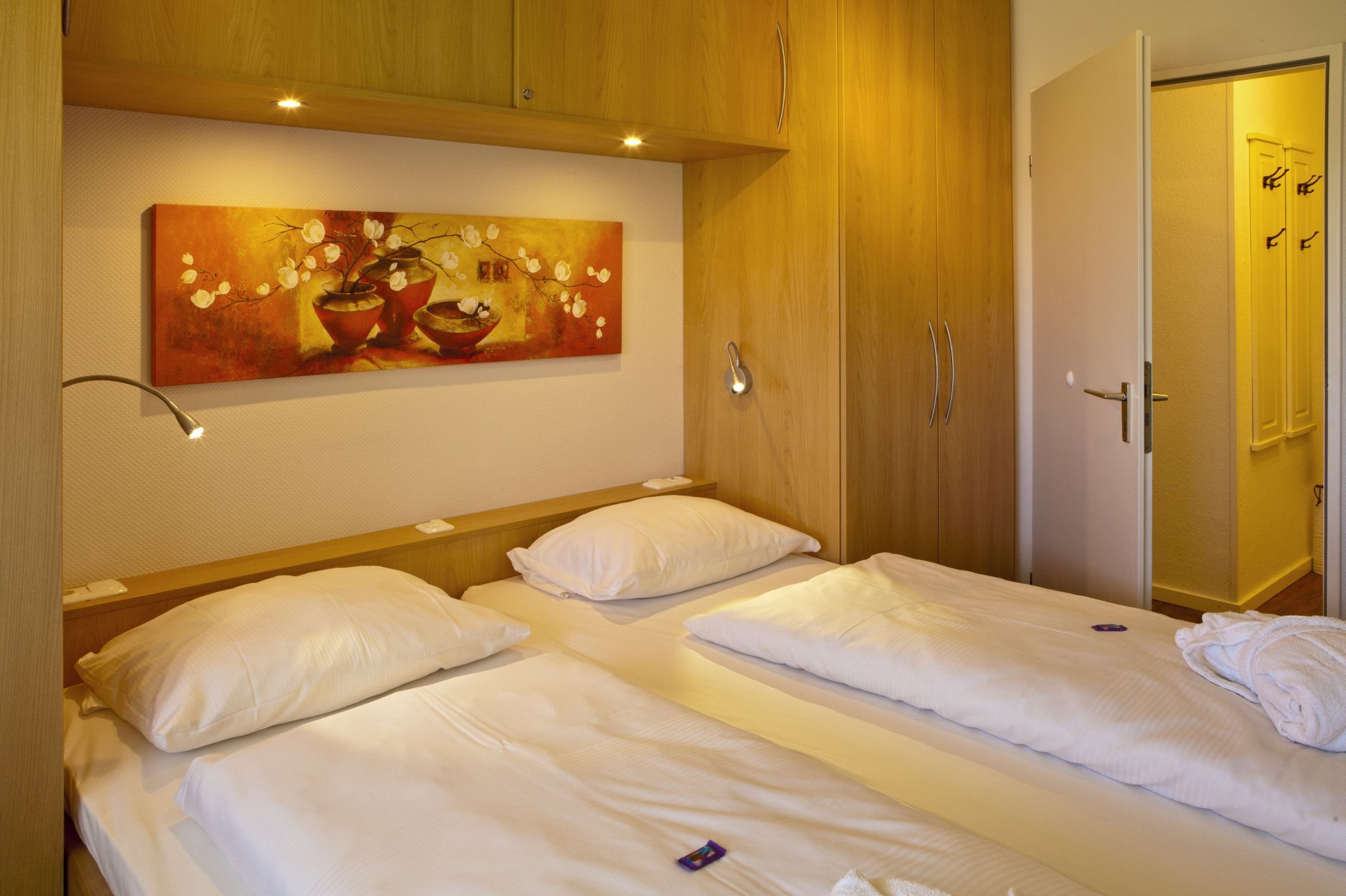 Hotelappartements statt Einzel und Doppelzimmer (45qm, Wohnzimmer mit Schlafcouch, Schlafzimmer, Küche, Bad/WC oder Dusche/WC, Balkon, Sat-TV, Telefon. Kategorien: Komfort (HRS-Standard), Premium (HRS-Komfort). Jeder Gast (außer Geschäftsreisende) erhält die Bad Hindelang Plus Card mit kostenlosen Angeboten: Bergbahnen, Busse, Erlebnisbäder, Skipass im Winter Halbpension (abends) vor Ort buchbar