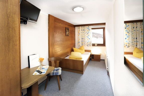 Unser Einzelzimmer mit Badezimmer mit Dusche/WC und Flat-TV wird sehr gerne in Verbindung mit den Doppelzimmern gebucht, oder als Ergänzung zum Appartement.