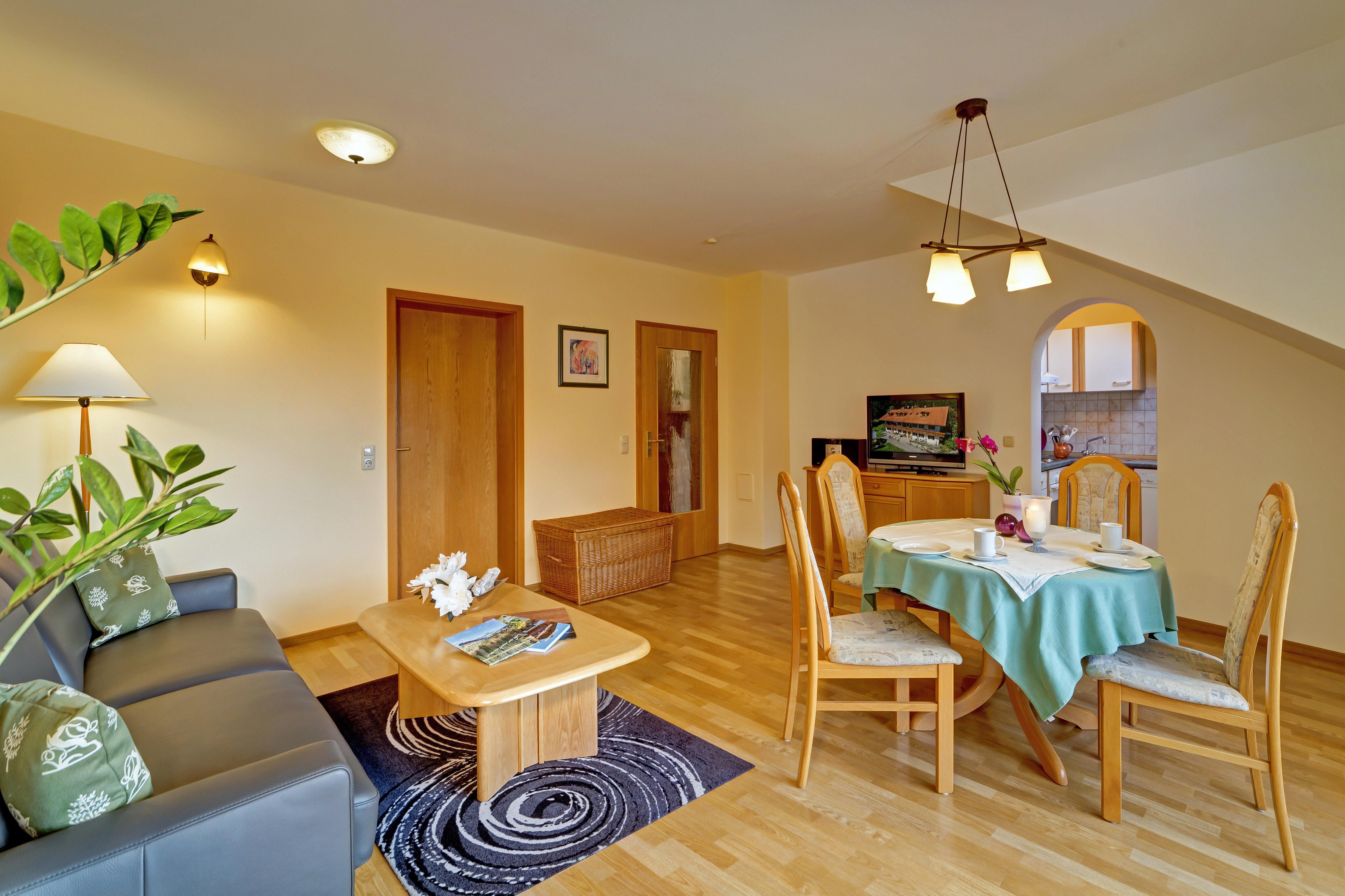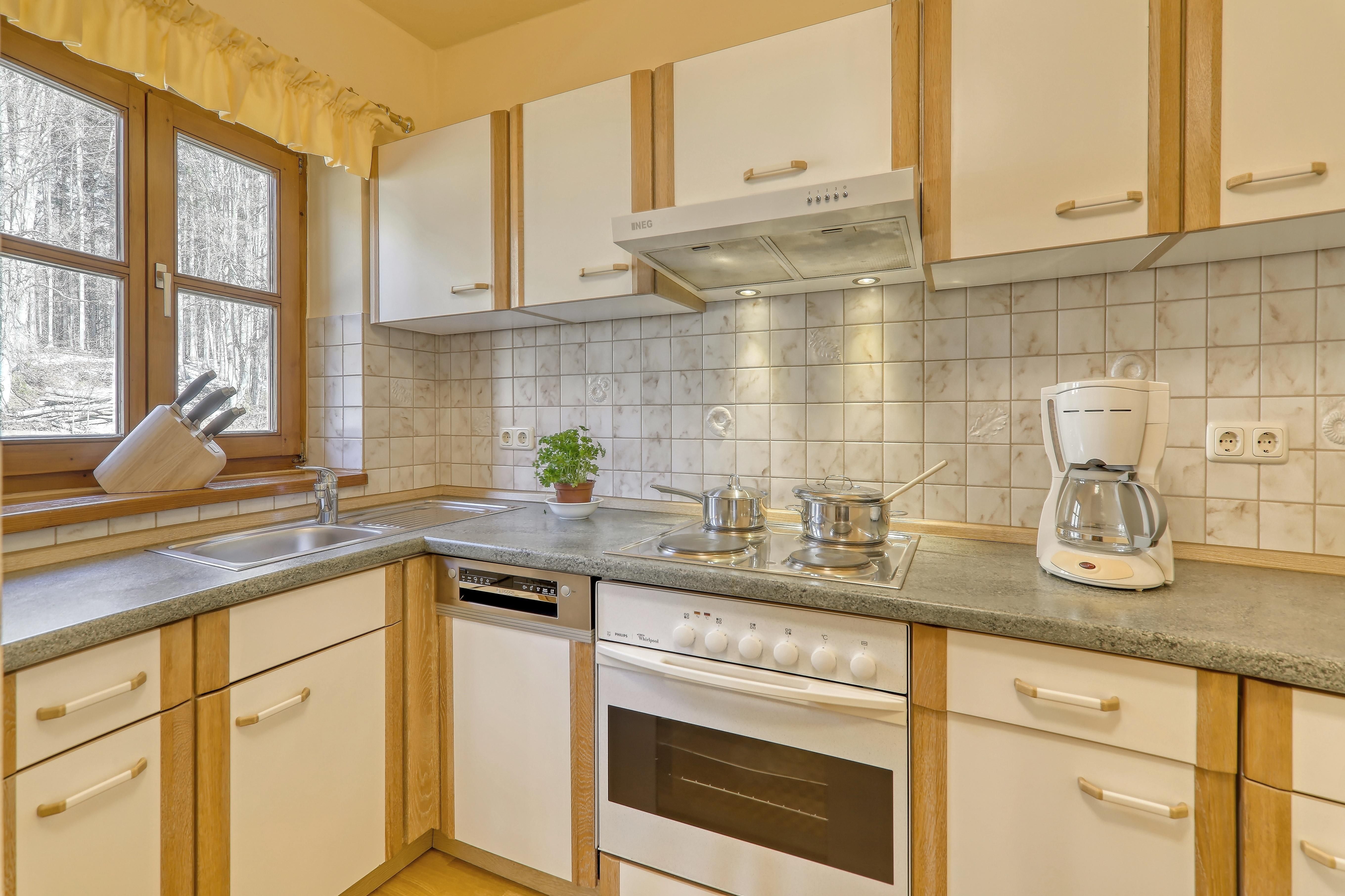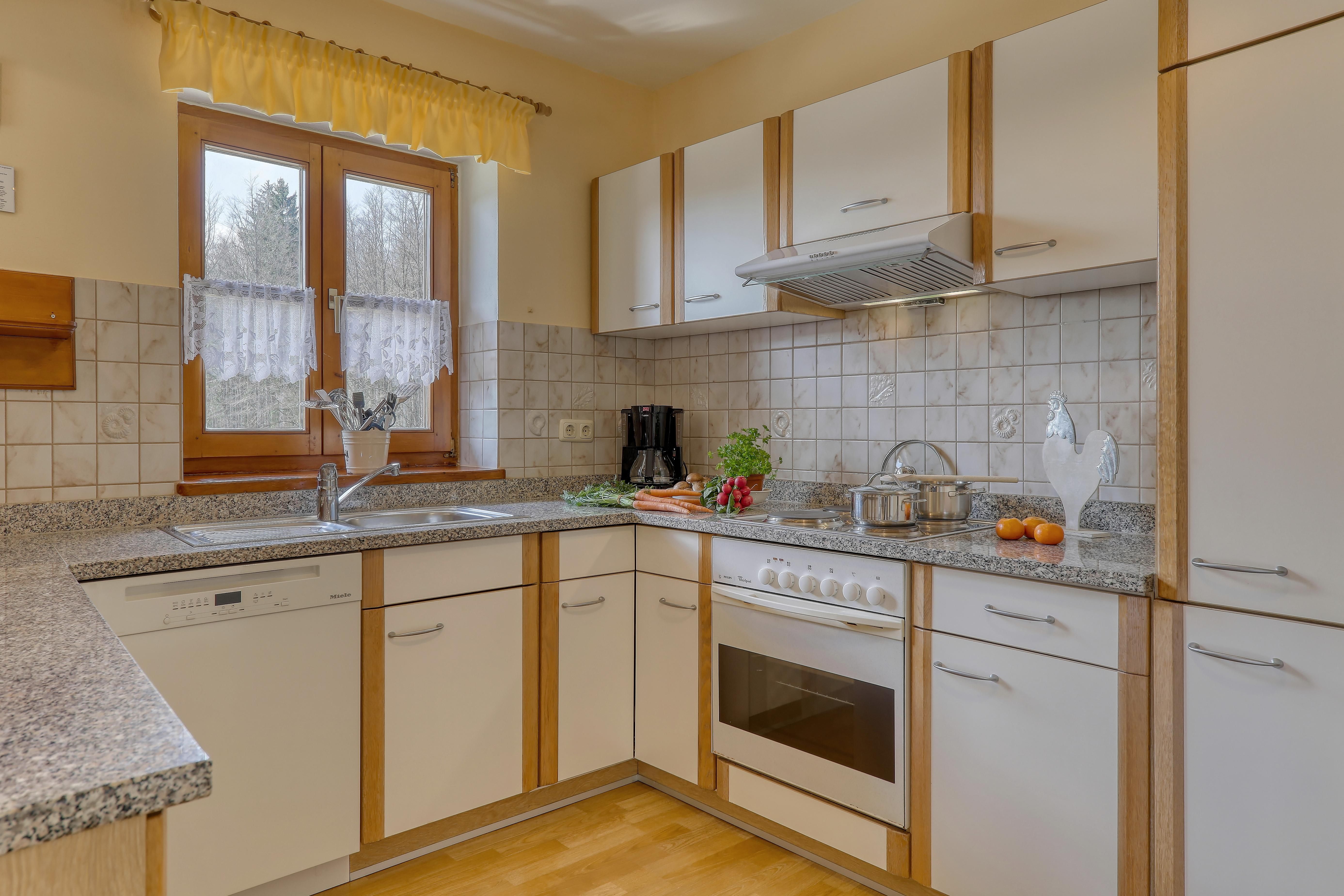 Ferienwohnung für Selbstversorger und Indivualisten. Vollausgestattete Küche mit Geschirrspüler, Herd, Backofen, Kühlschrank und Geschirr. Tageslichtbad mit Doppelwaschbecken, Badewanne und Dusche. Schalfzimmer mit Doppelbett. Wohnzimmer mit Essecke und TV und herrlichem Ausblick auf den Wald. Sauna im Haus.Parken am Haus