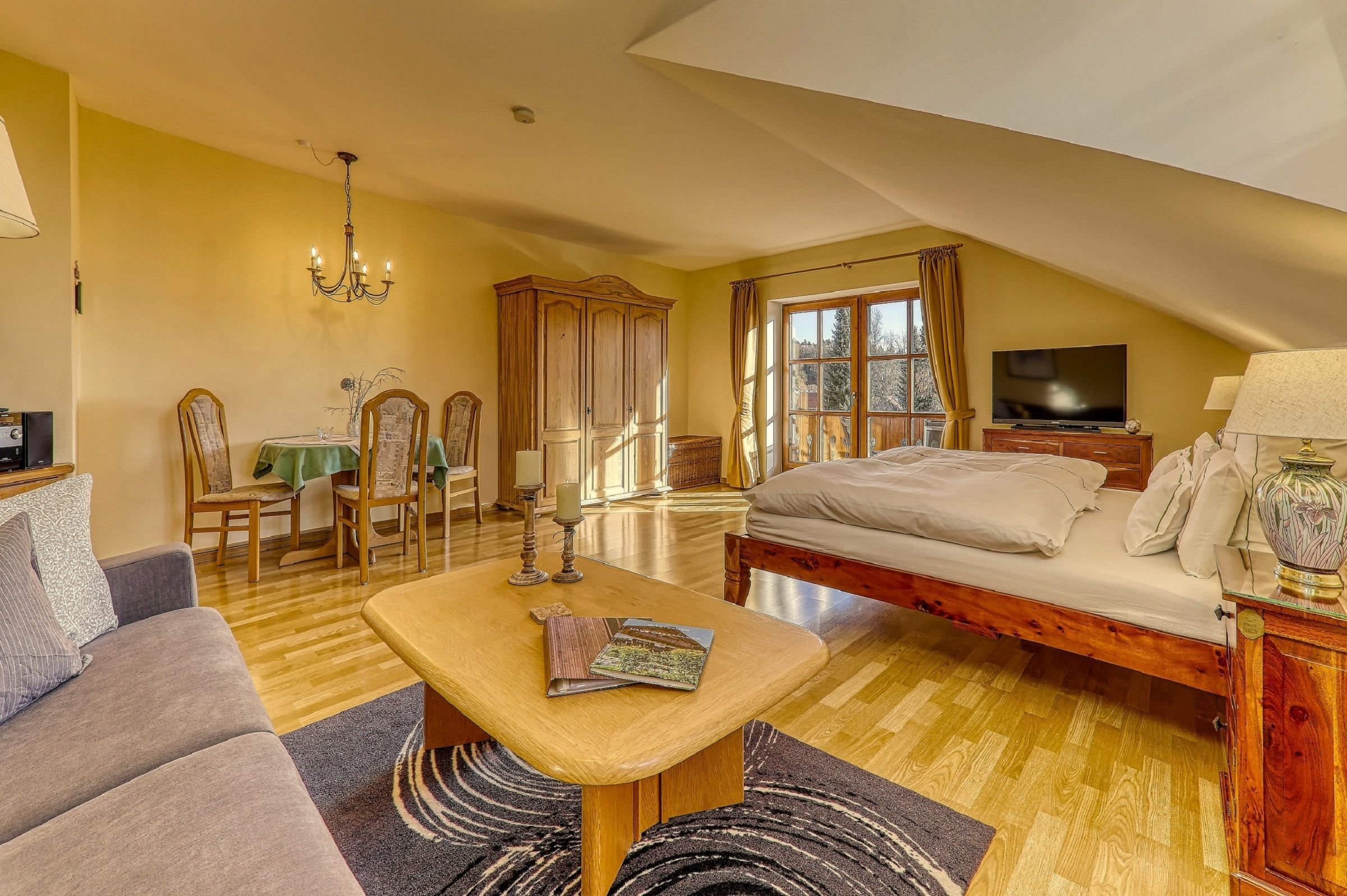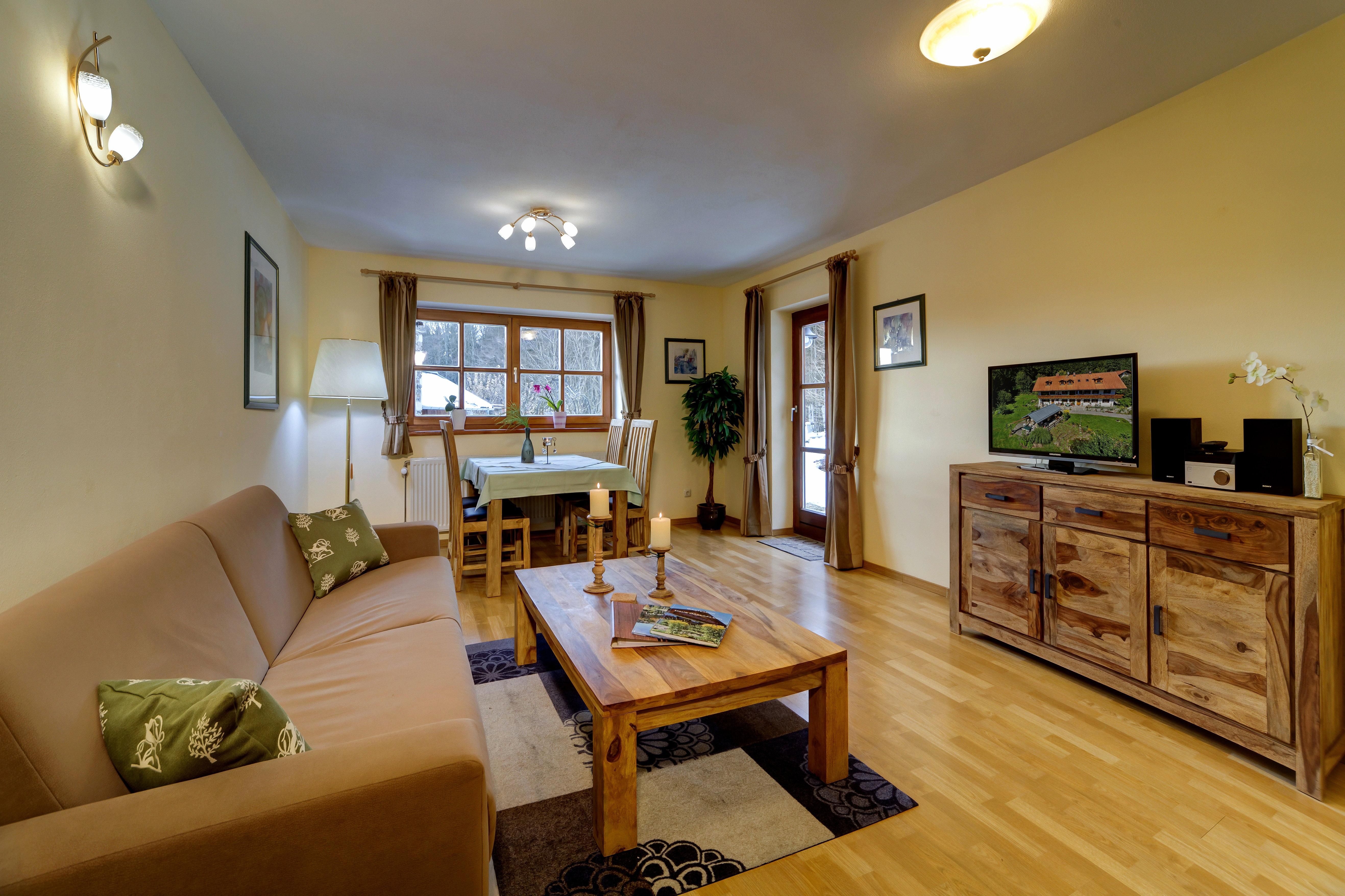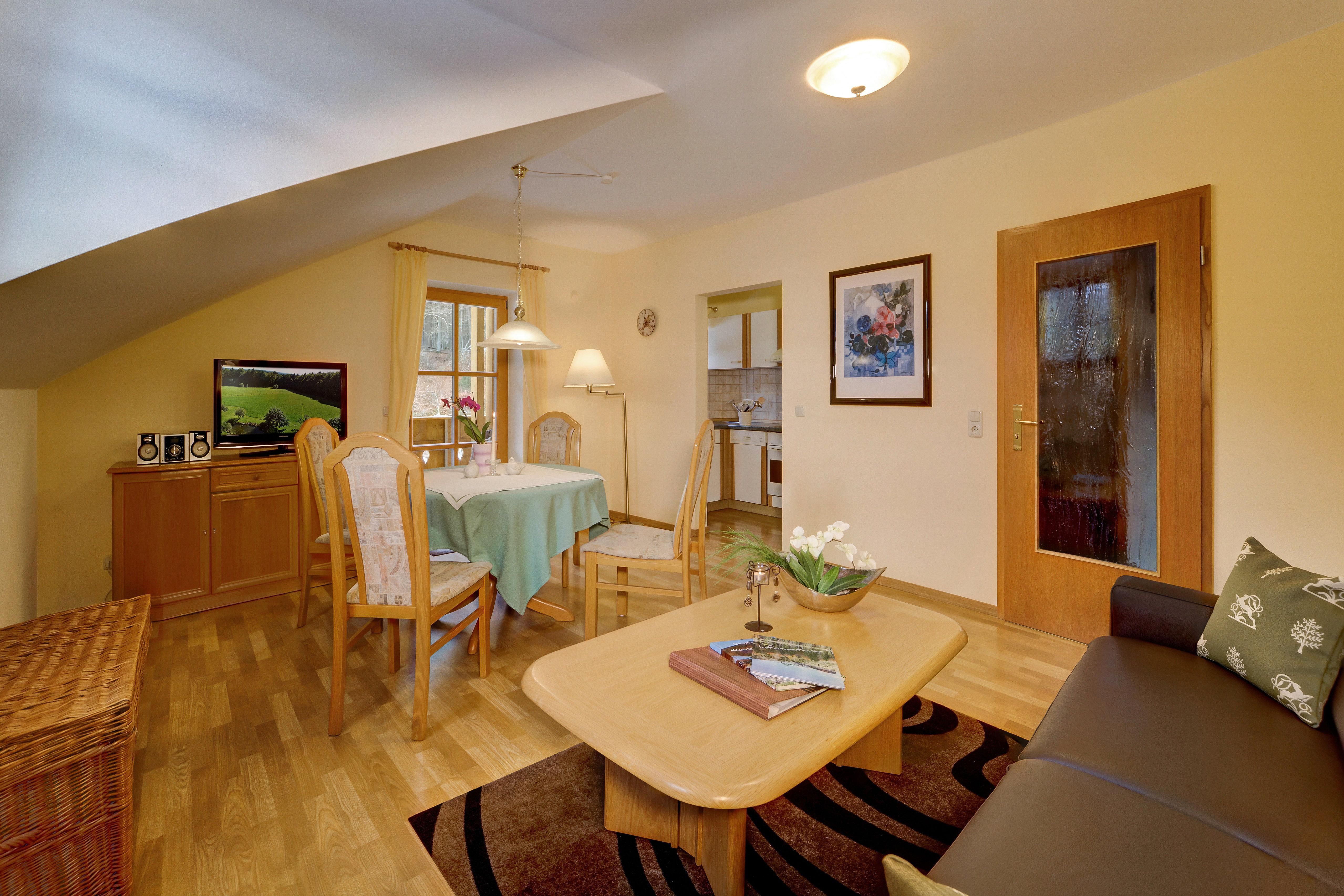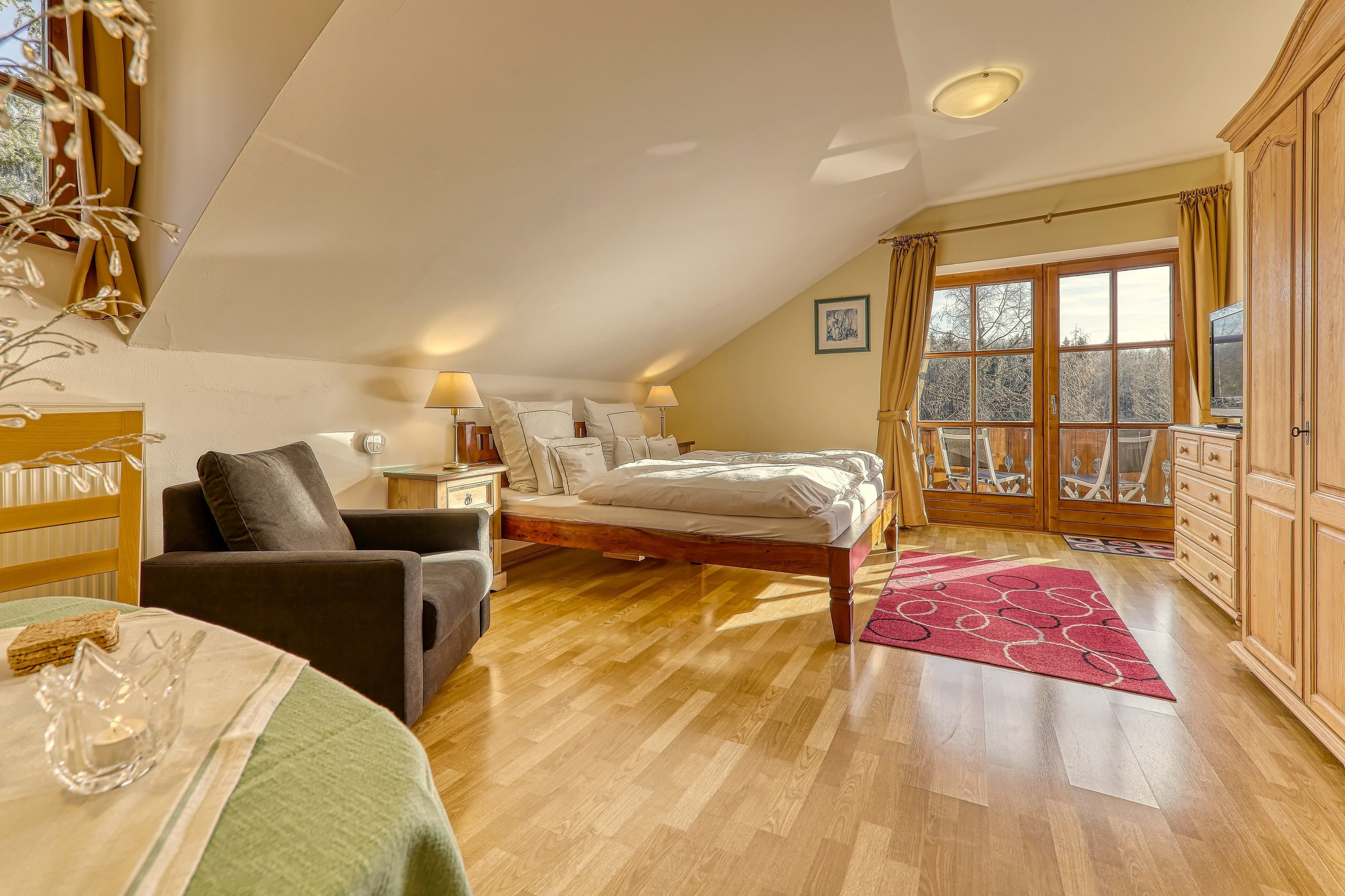 Haus Jägerfleck besticht durch seine typische bayrische Architektur und dem freundlich gestalteten Innenraum. Die umliegenden grünen Wiesen machen Lust darauf die weitläufige Natur zu erkunden.