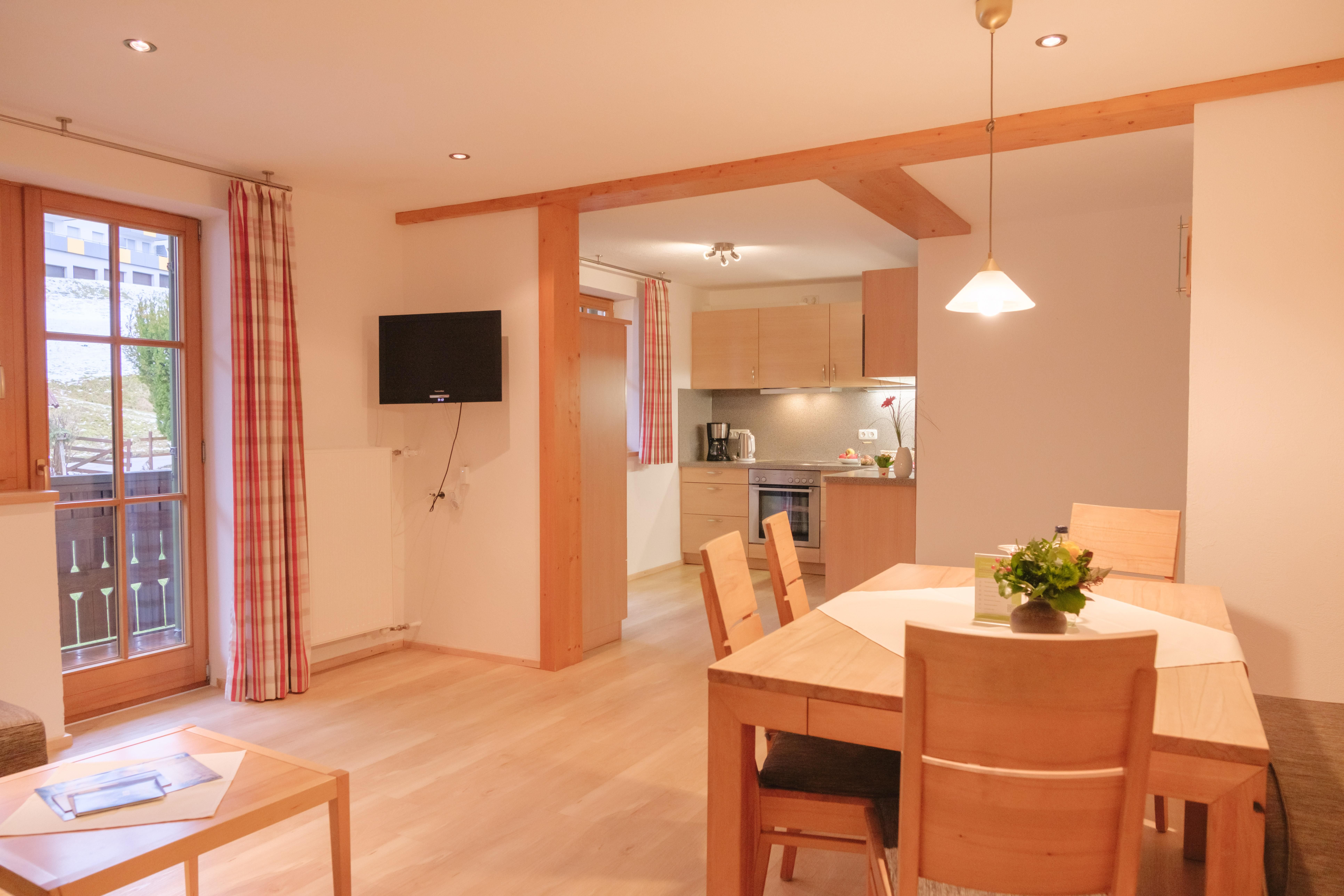 Die Ferienwohnung Grüntenblick besteht aus einem Schlafzimmer, Küche mit Spülmaschine und Backofen, Wohnzimmer mit TV, Du/Wc und einen Balkon Richtung Osten. Vom Balkon genießen Sie den freien Blick auf den Wächter des Allgäus, den Grünten.