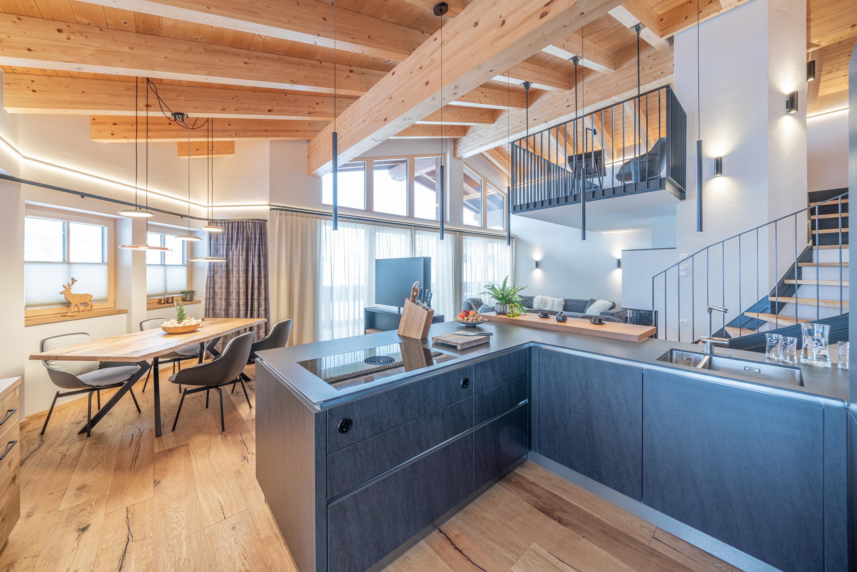 PRIVATE, kleiner WELLNESS-Oase mit Zirben Sauna, Dusche und WC und ca. 115 m² - das bietet unser neues Appartment Appartement Talleitblick: 1 Doppelzimmer; 1 Badezimmer mit freistehender Badewanne und Dusche/WC; 1 Wirtschaftsraum mit Waschmaschine und Trockner; gemütliche Wohnküche (Cerankochfeld, Backrohr, Kühlschrank, Toaster, Wasserkocher, Spülmaschine, Mikro uvm.) mit Essbereich, offenem Kamin und Sofa; Galerie mit ausziebarem Sofa (Schlafplatz für 2 weitere Personen), Schreibtisch und Relax-Sessel. Südbalkon mit Loungemöbel und herrlichem Außblick.