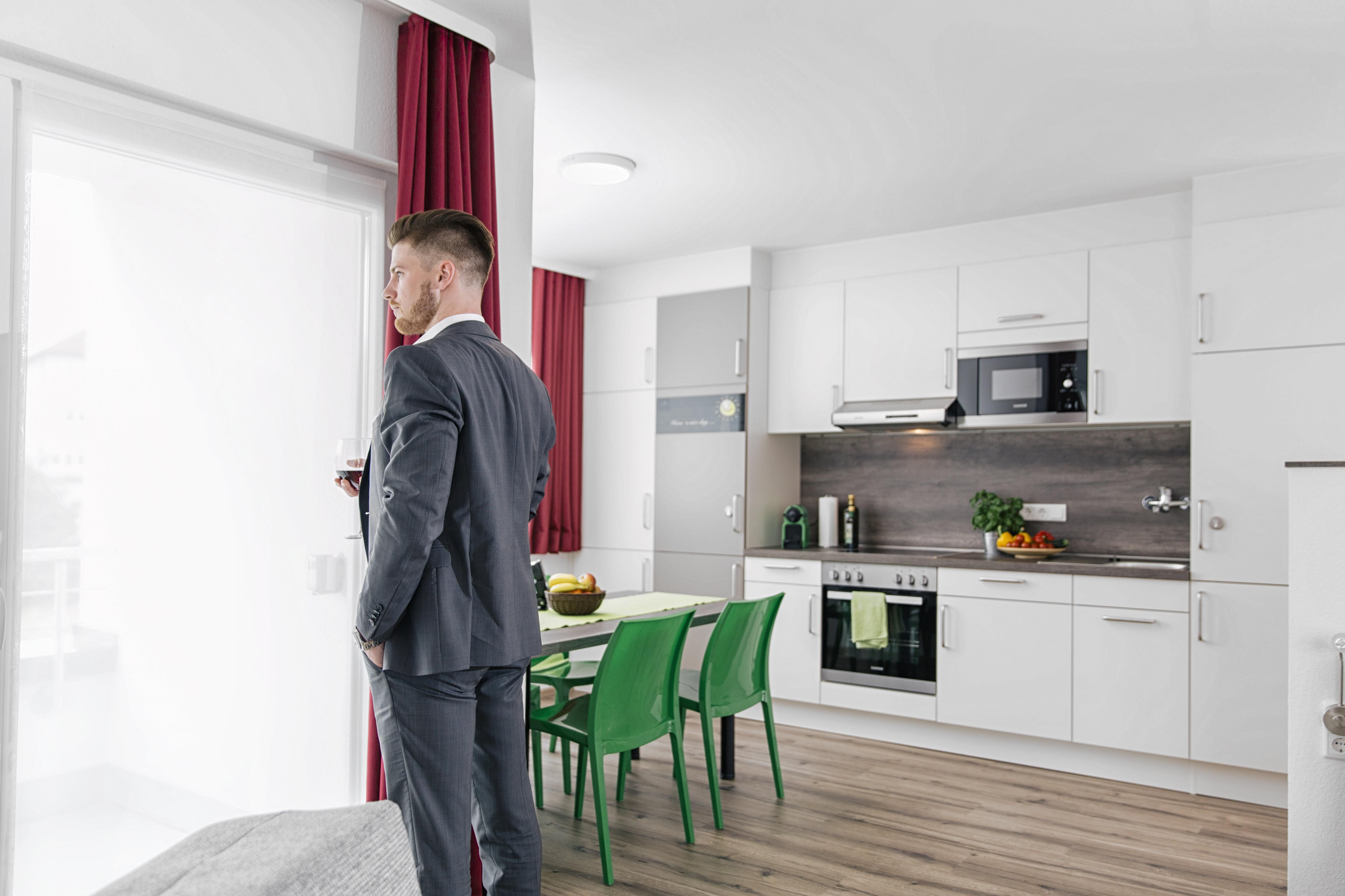 Ihr Frühstück nehmen Sie in den Räumlichkeiten ihres Apartments ein. Das Business Homes-Apartment Hotel bietet gratis W-Lan, sowie einen Balkon oder Terrasse. Barrierefreier Zugang im Erdgeschoss. WICHTIG: bitte beachten Sie, dass Anreisen nur bis 21 Uhr möglich sind. Spätere Anreisen sind leider nicht gestattet.
