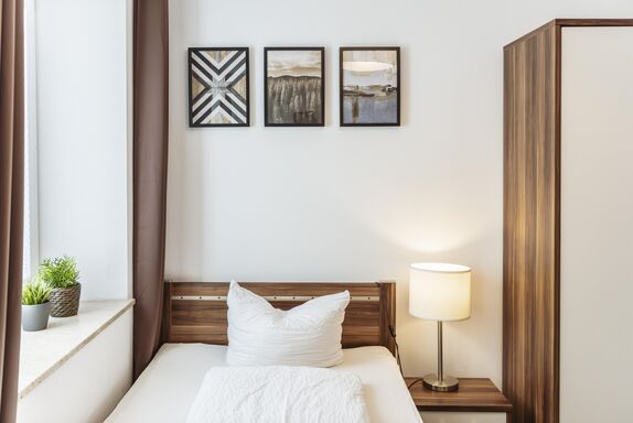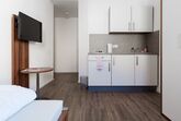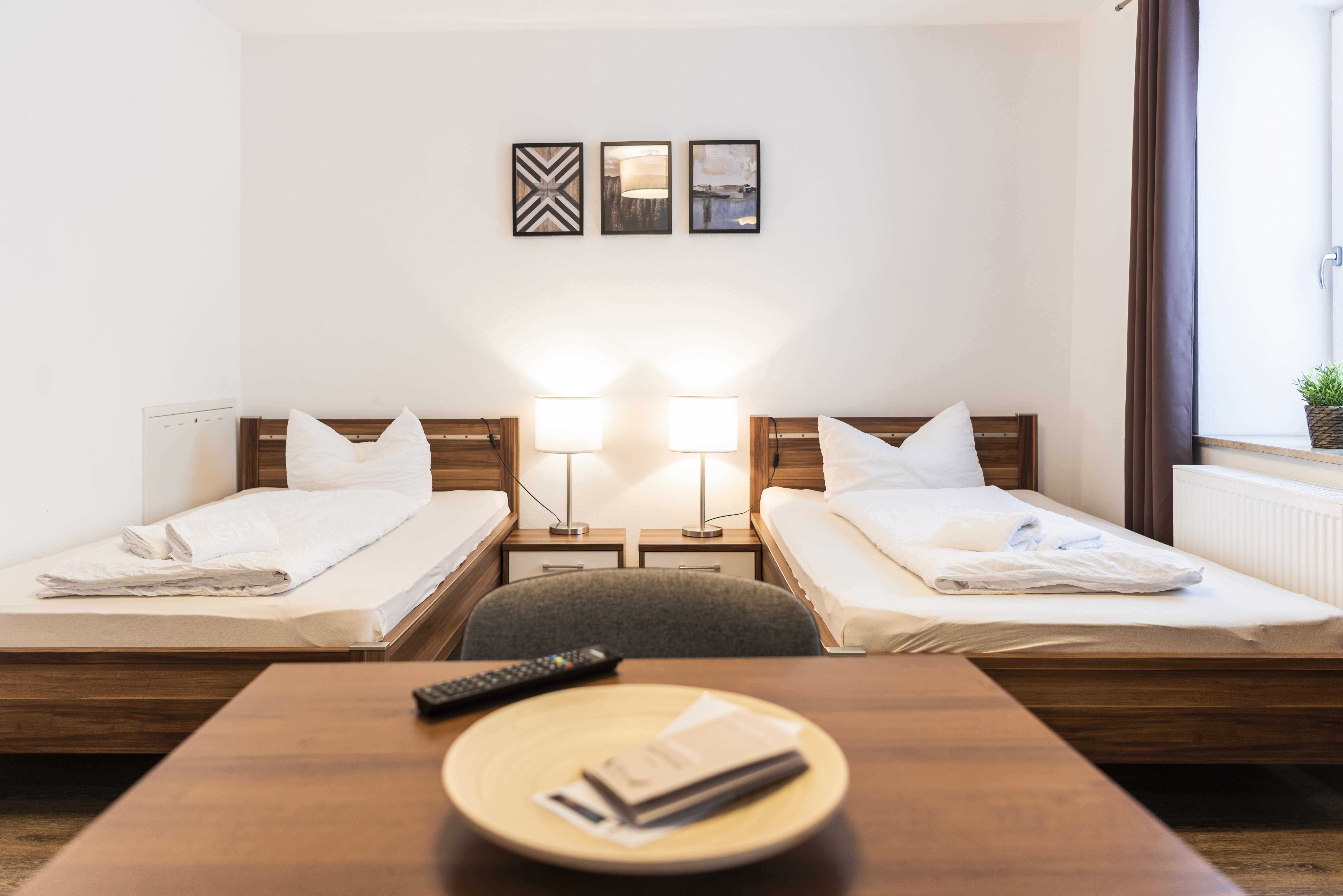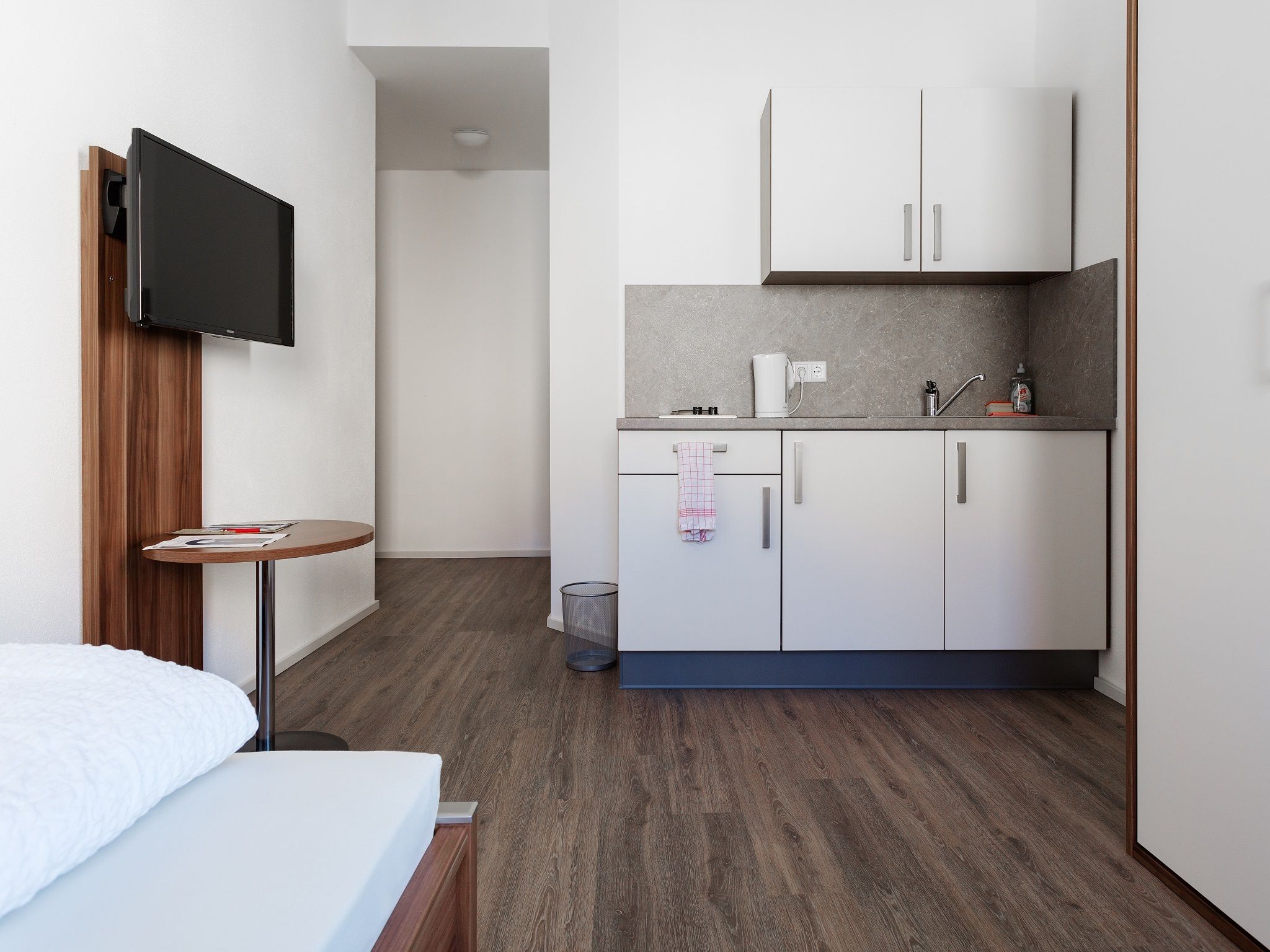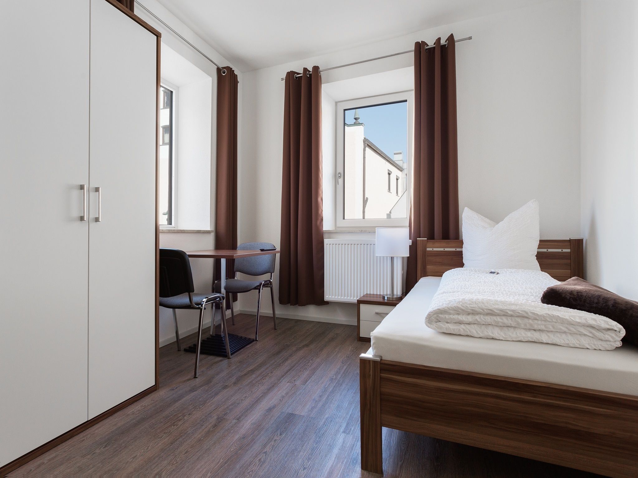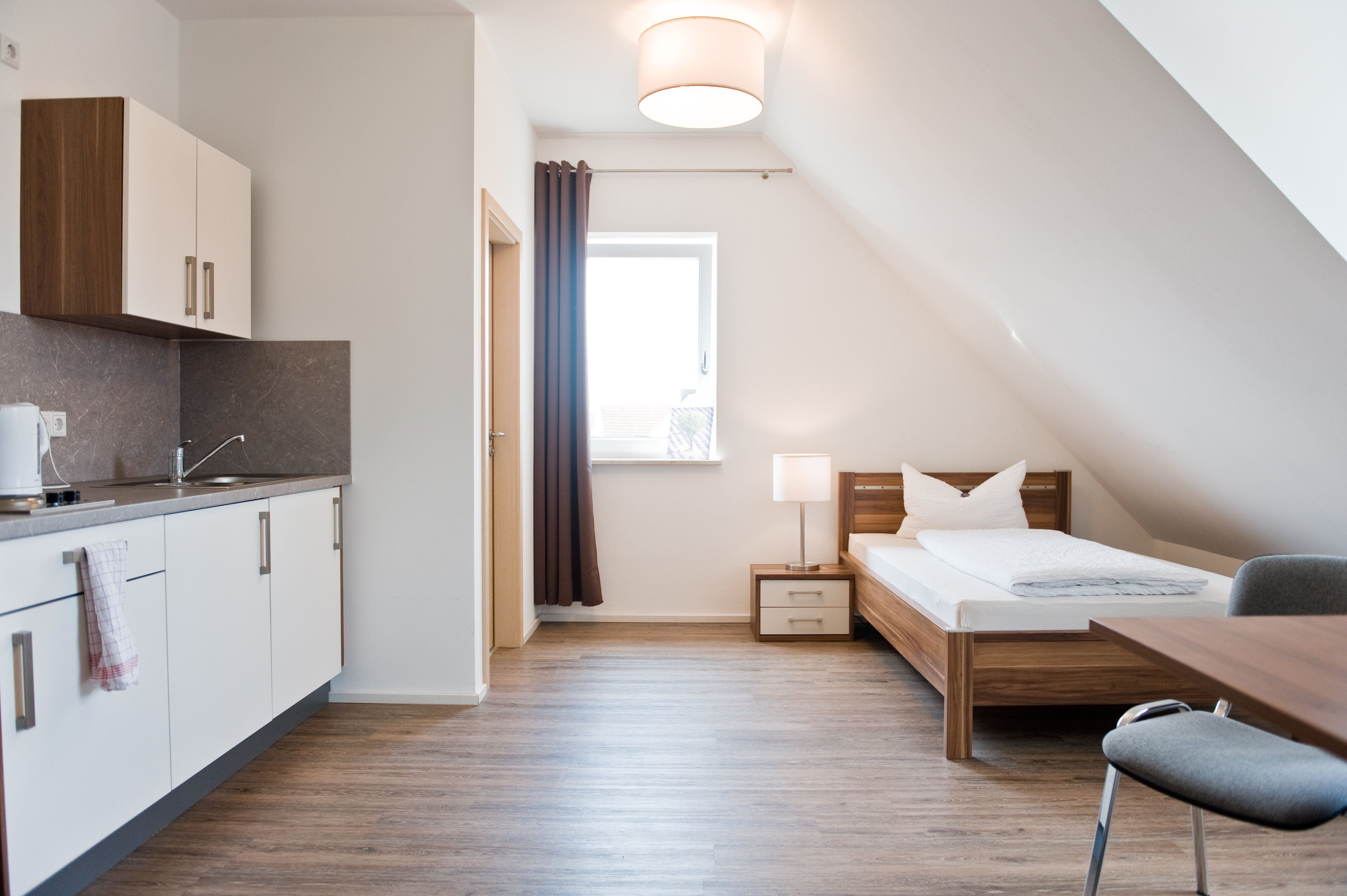 Komfortable Serviced Apartments im Zentrum von Neustadt an der Donau. Moderne Ausstattung mit extrabreitem Bett und Küchenzeile. Geräumiges Bad in jedem Apartment. W-Lan
