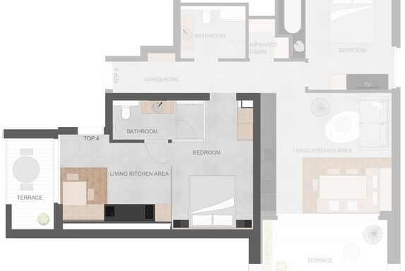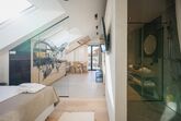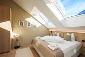 Ganz nach der Devise „Klein aber Fein“ bietet das Apartment auf 28,27 m² alles was das Herz begehrt. Für zusätzlichen Wohlfühlcharakter sorgen hier charmante Dachschrägen sowie die Dachterrasse mit Westblick. Im Wohn- und Essbereich befindet sich neben der vollausgestatteten Küche eine gemütliche Sitz-Liege-Ecke sowie eine angrenzende Dachterrasse die zum Verweilen einlädt. Das offen gestaltete Schlafzimmer mit King-Size Boxspringbett und charmanten Dachschrägen und das Badezimmer sorgt für den gewissen Wohlfühlfaktor. Badezimmer mit Dusche/WC.
