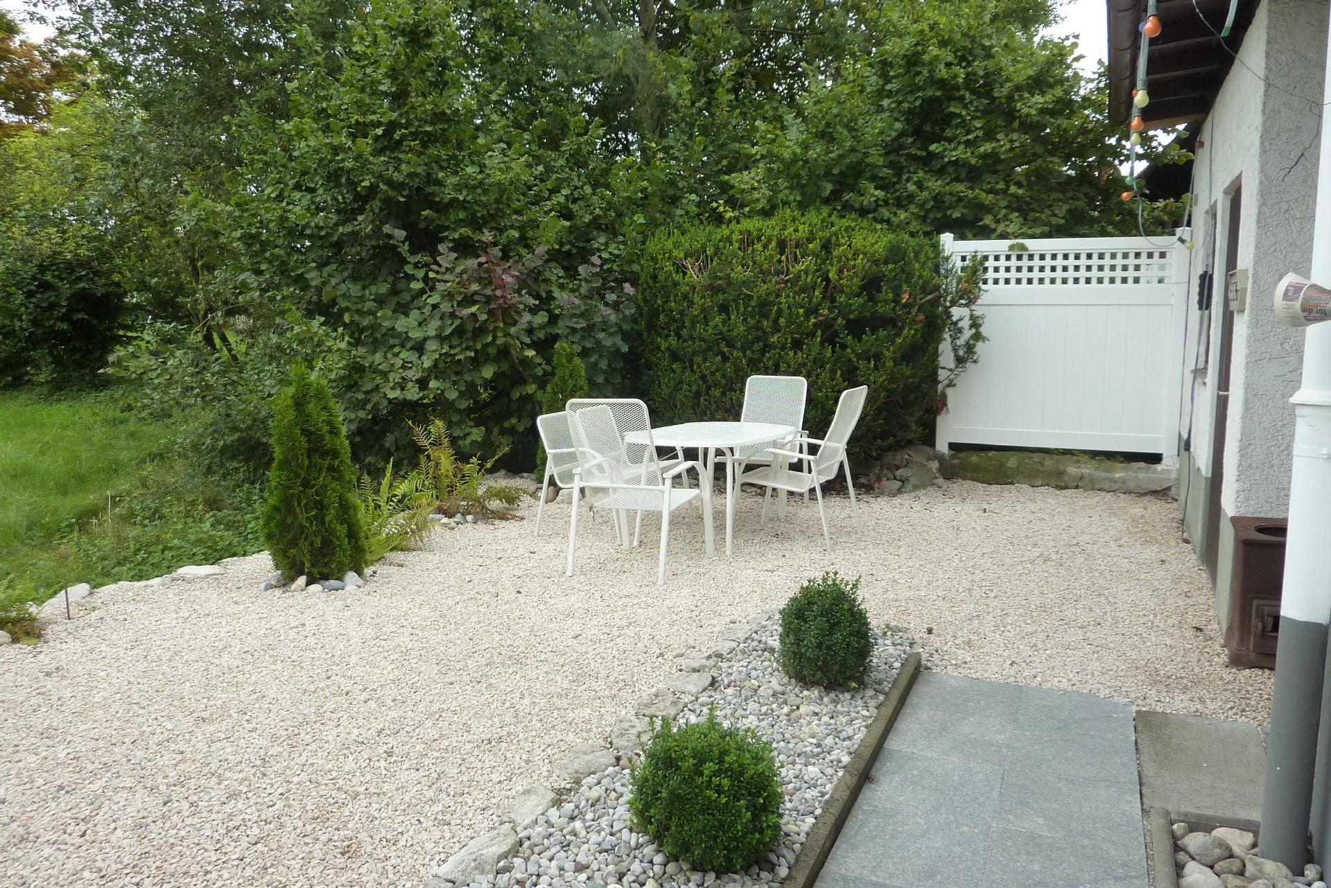 Das Haus liegt am idyllischen Dorfrand von Übersee, in einer kaum befahrenen Sackgasse. Die Doppelhaushälfte bietet Ihnen auf der Nordseite einen schattigen Grillplatz mit Blick auf eine Weide – hier können Sie beim Abendessen den Kühen zusehen. Auf der Südseite genießen Sie von der kleinen Liegewiese aus den herrlichen Blick auf den Hochgern (1.800 m), den Hausberg von Übersee.